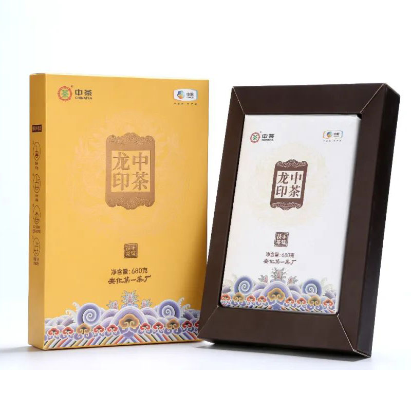 中粮-中茶安化黑茶金花茯砖中茶牌安化黑茶 中茶龙印手筑茯茶680g/原产地直发