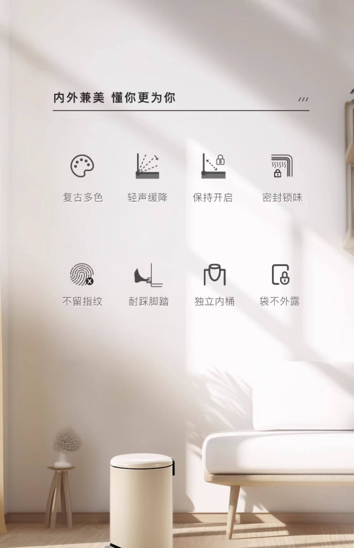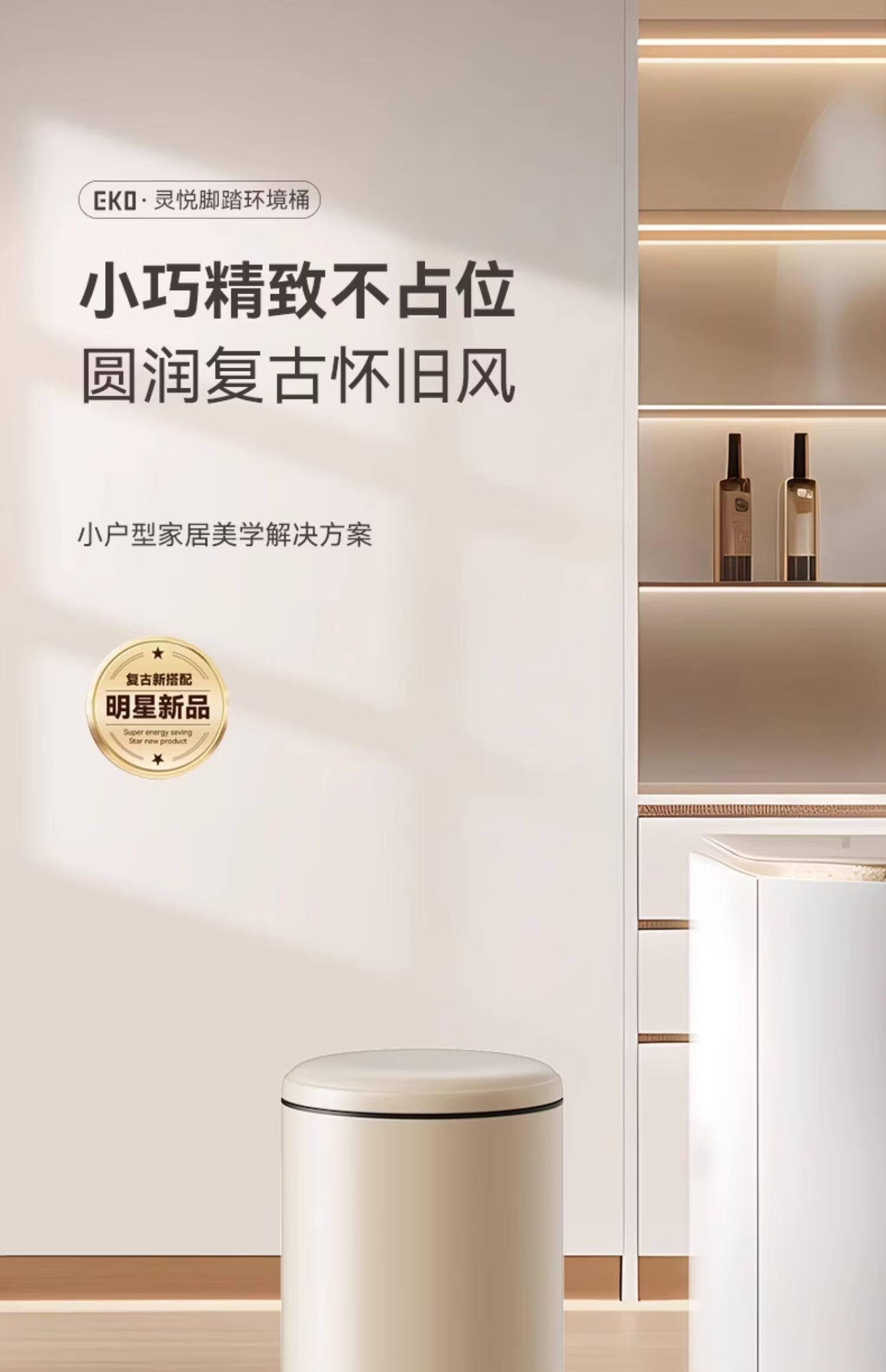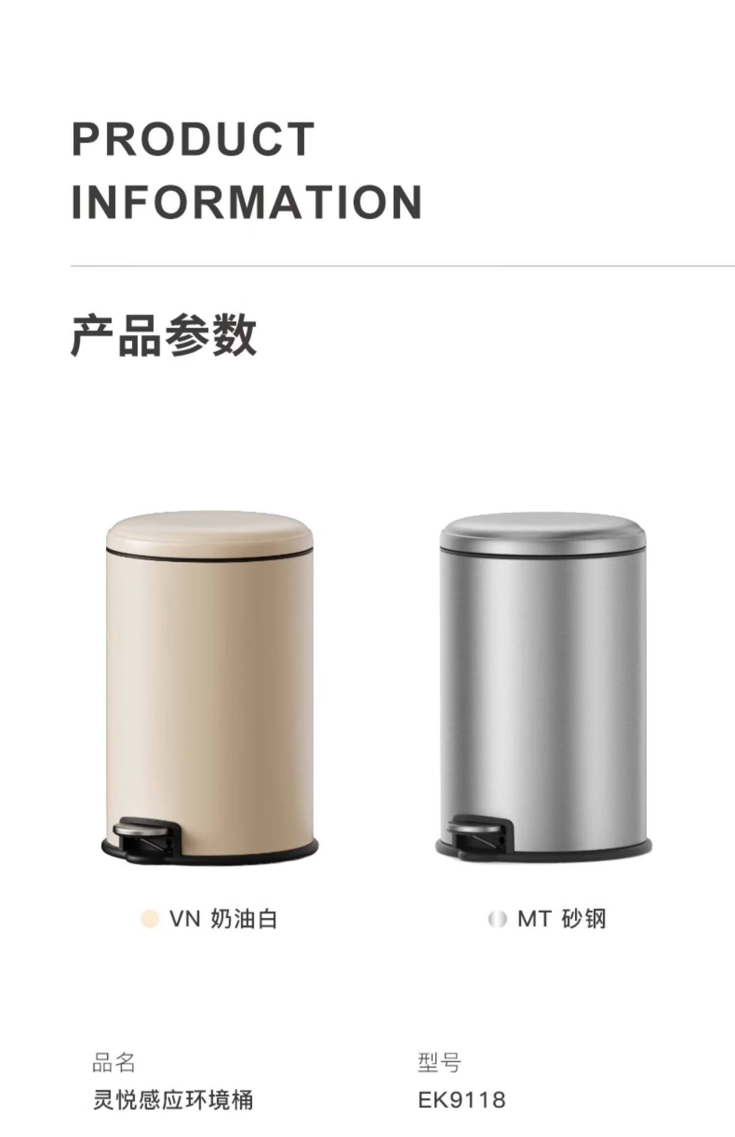 EKO 带盖不锈钢简约脚踏式垃圾桶 8L/个 雅钢色