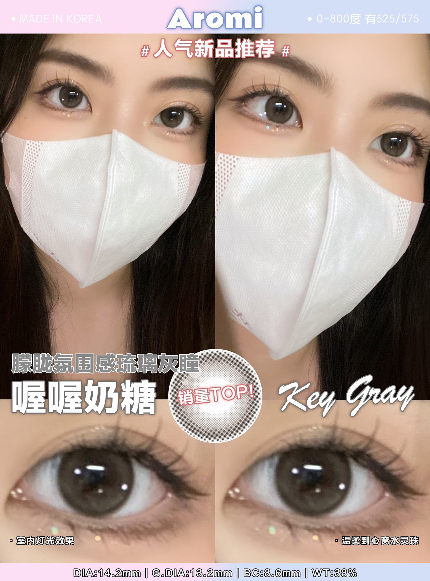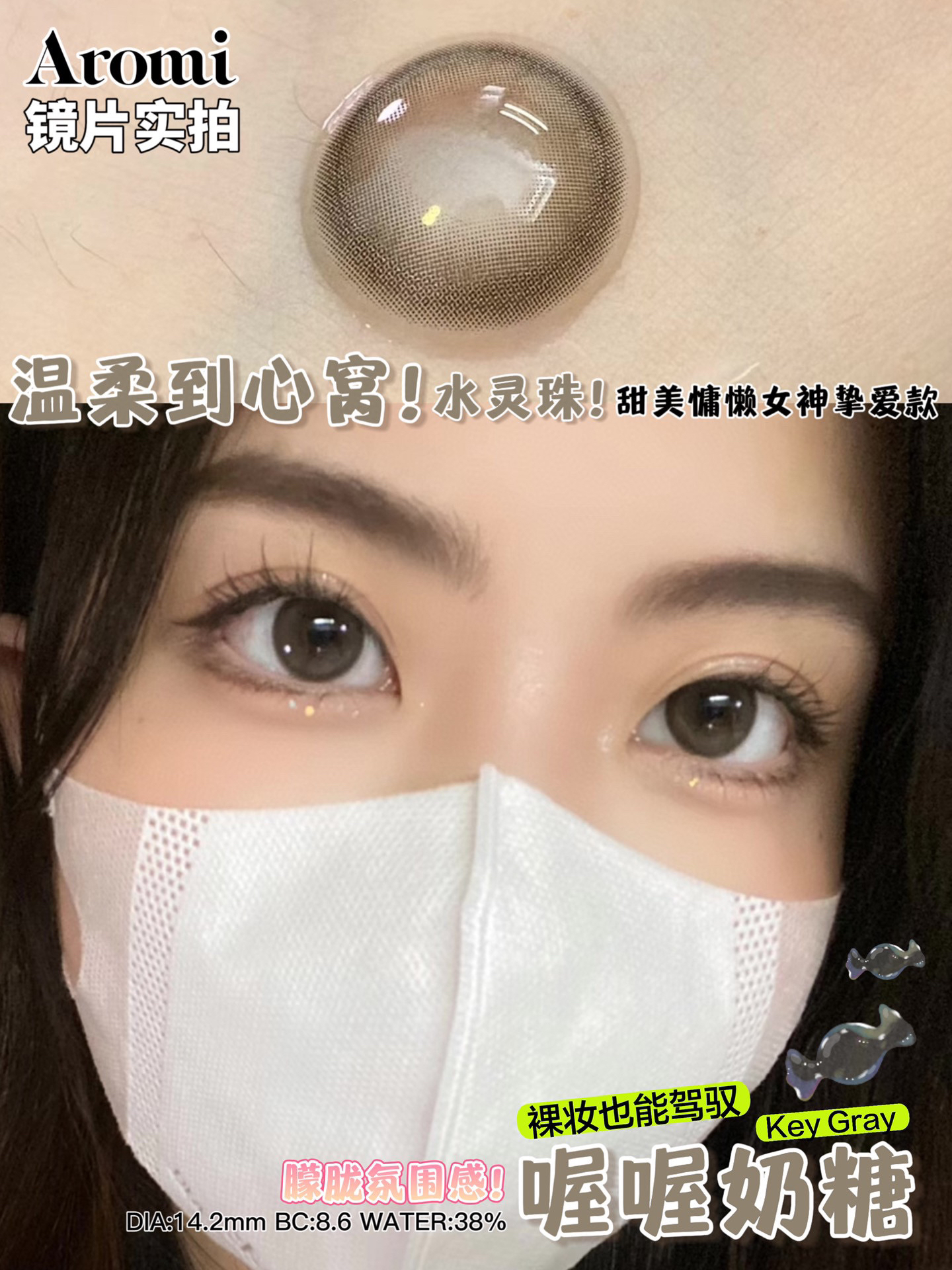 年抛 喔喔奶糖 Aromi / 中直径14.2 着色13.2 (同品牌多副美瞳更划算 选款色板在详情页内)