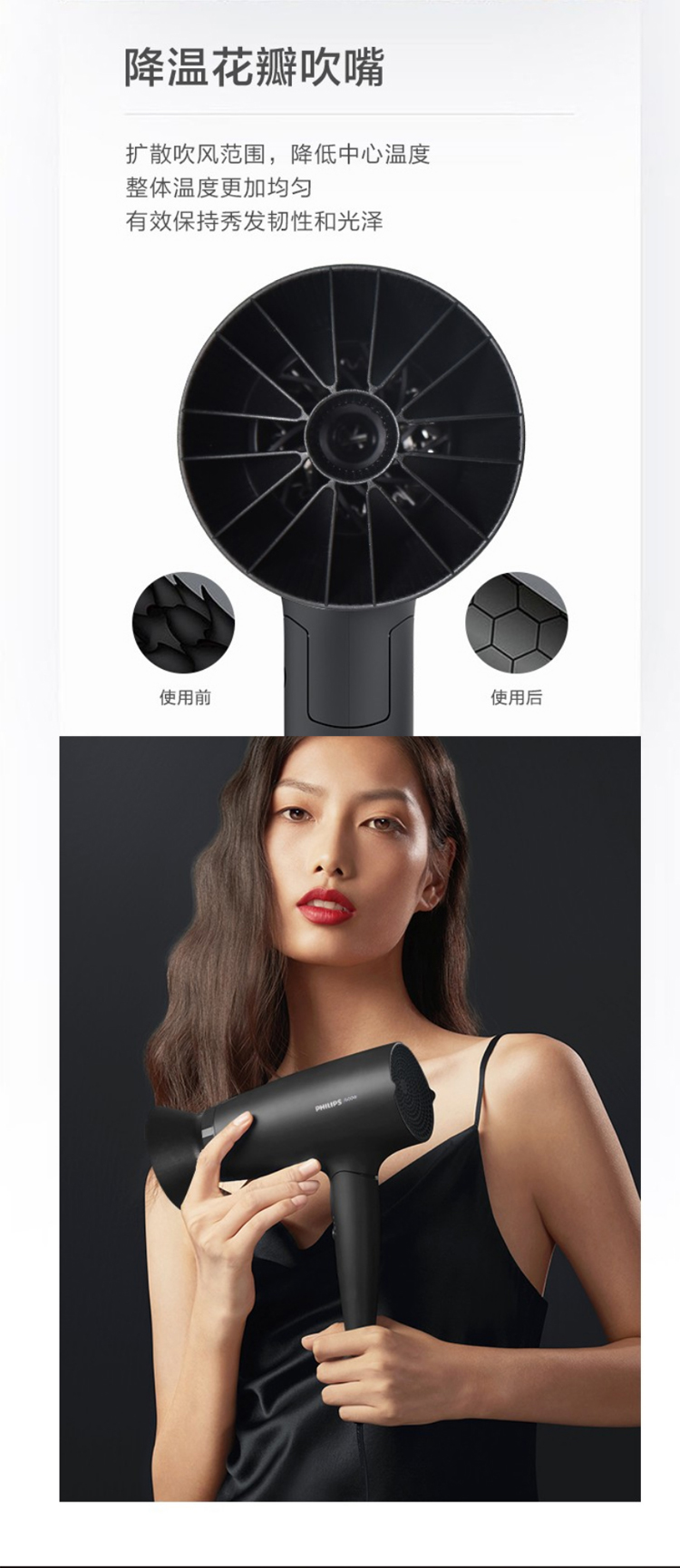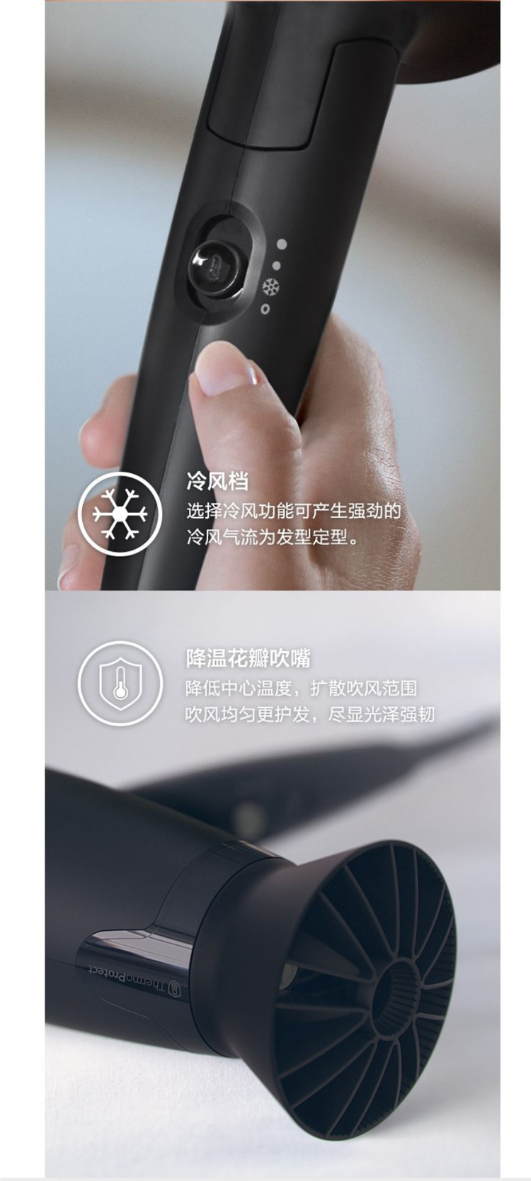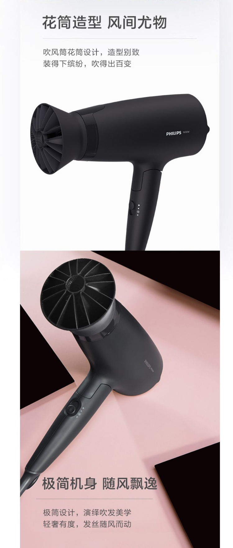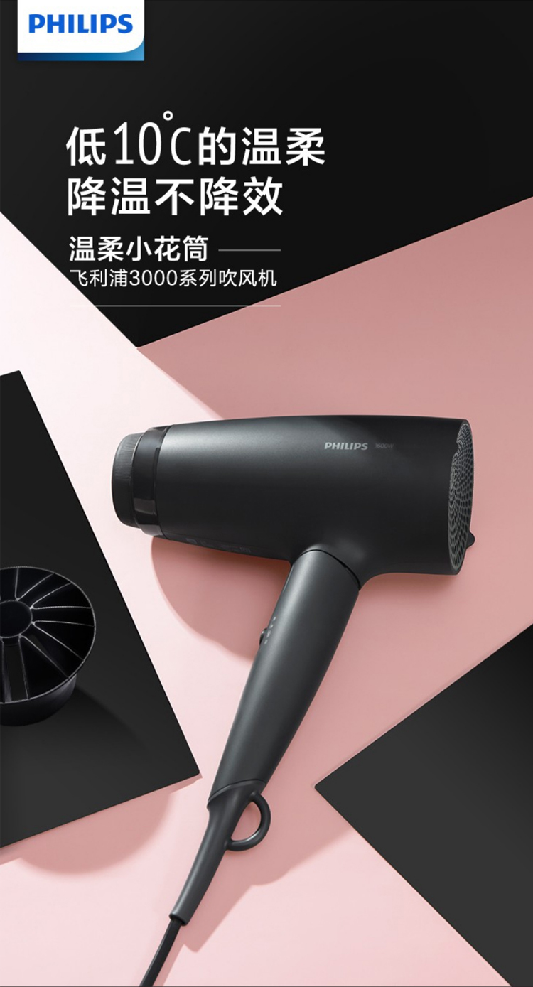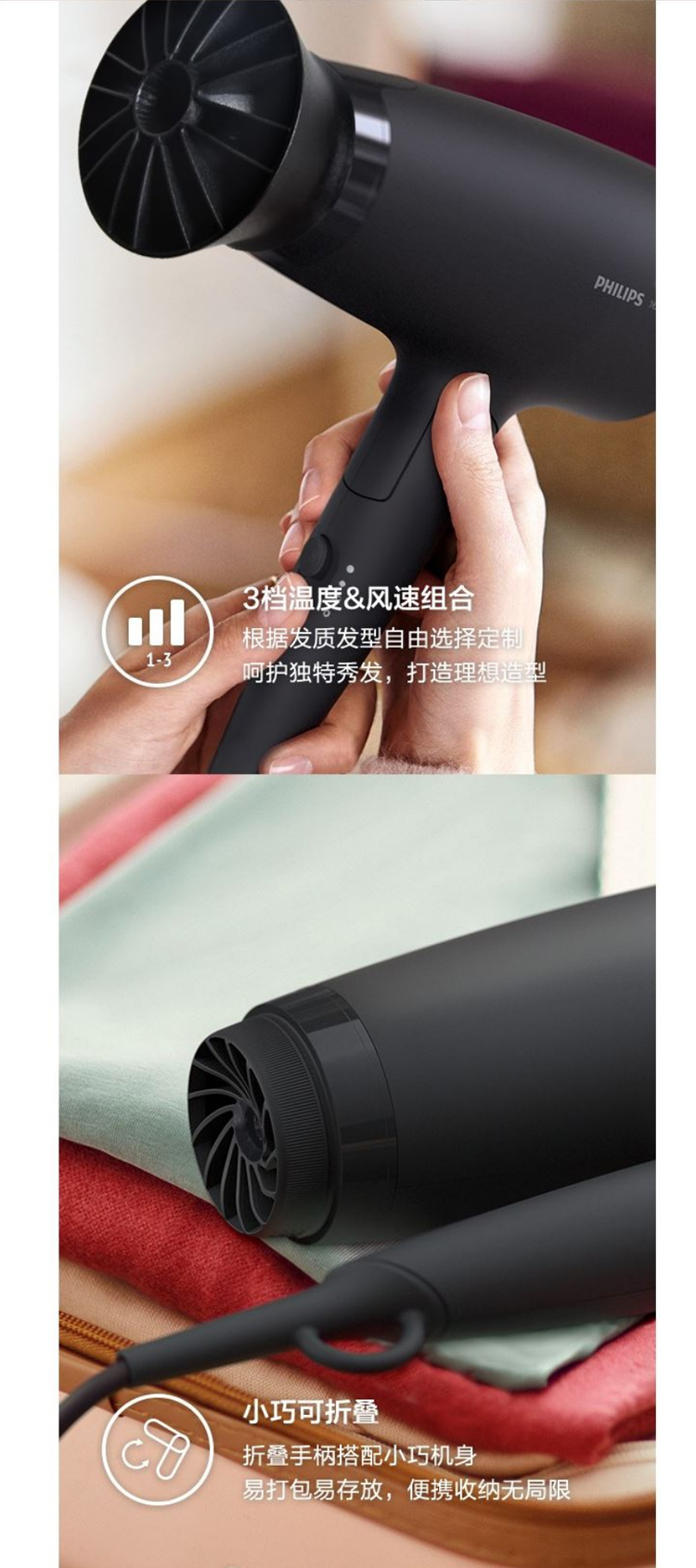 飞利浦(PHILIPS)吹风机大功率速干电吹风吹风筒家用生日礼物送女友/老婆七夕节情人礼物 【便携可折叠丨恒温护发】BHD308/05