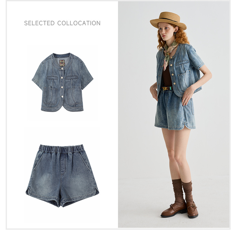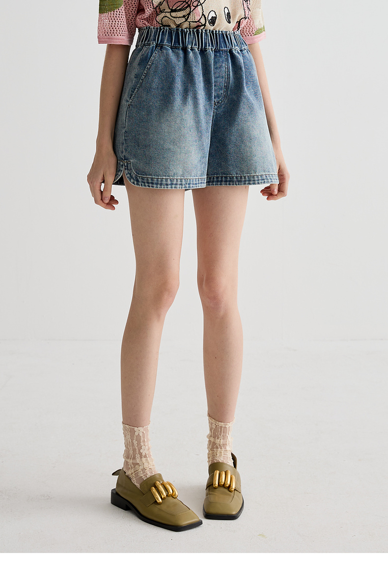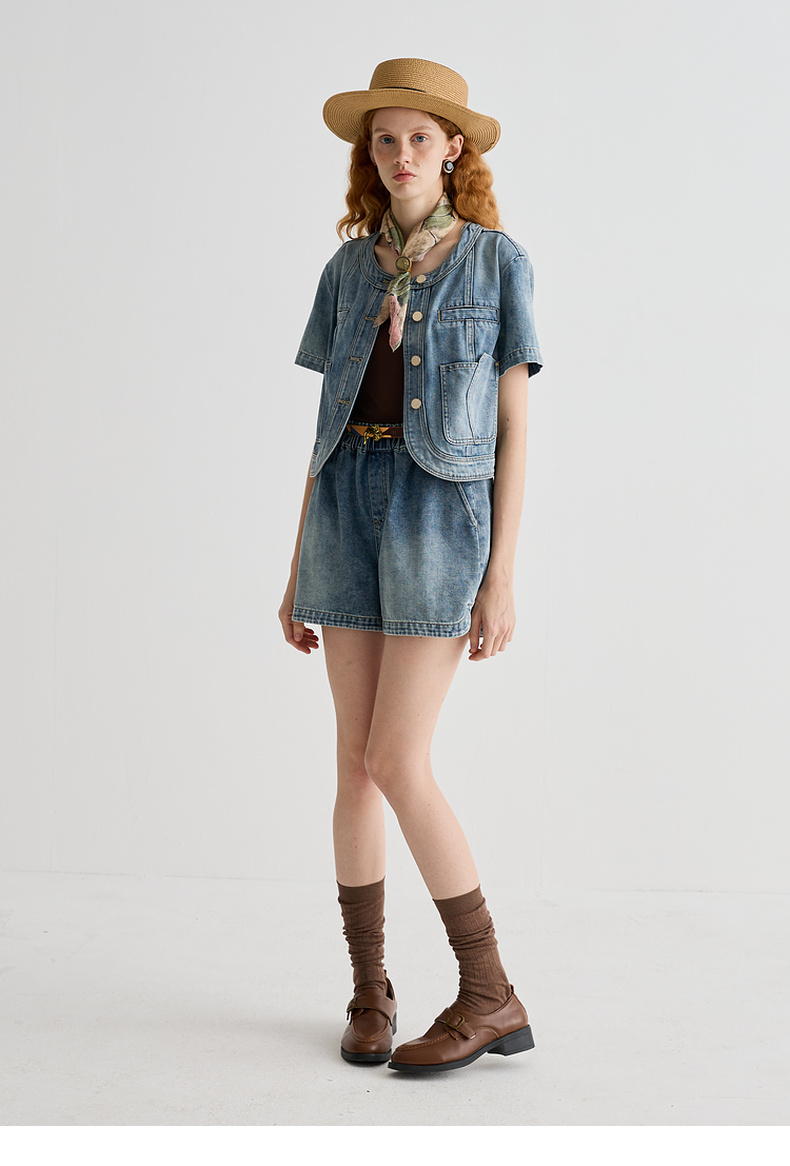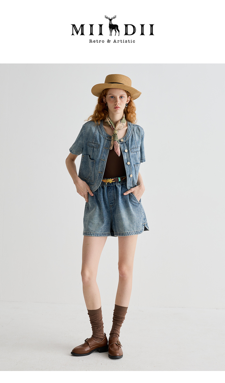 谜底牛仔短裤女2025夏季新品百搭日常宽松A型直筒裤子252MK0625