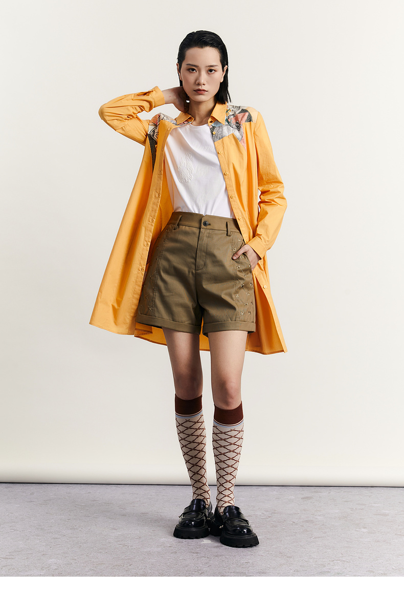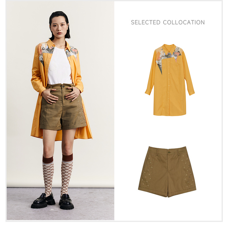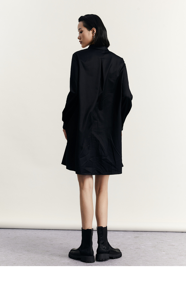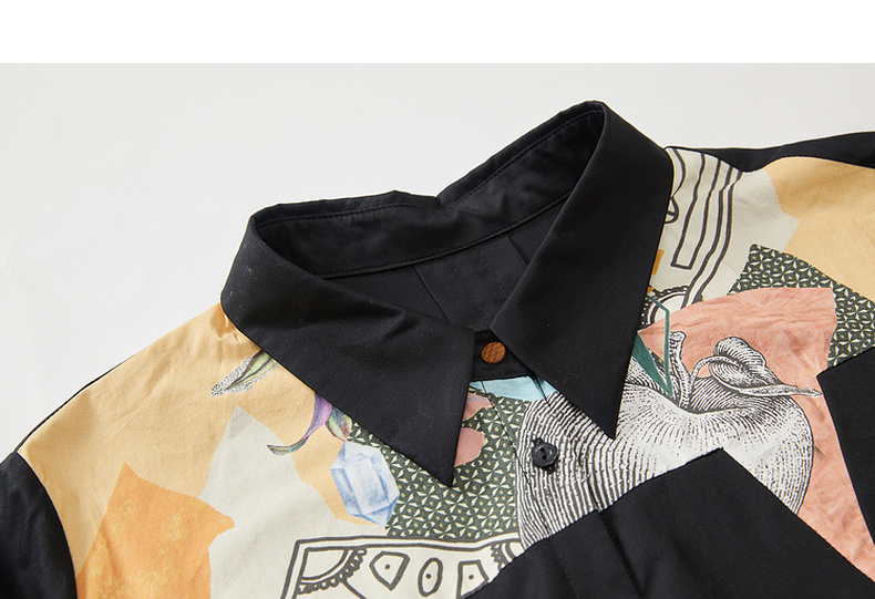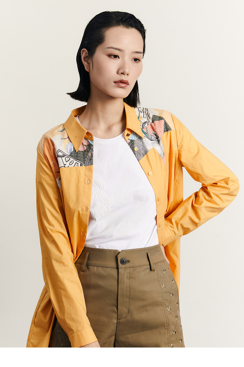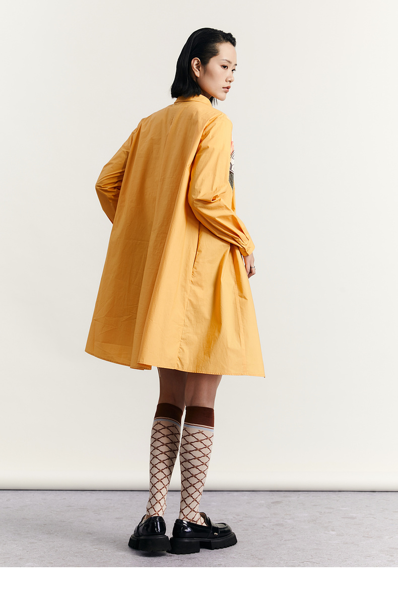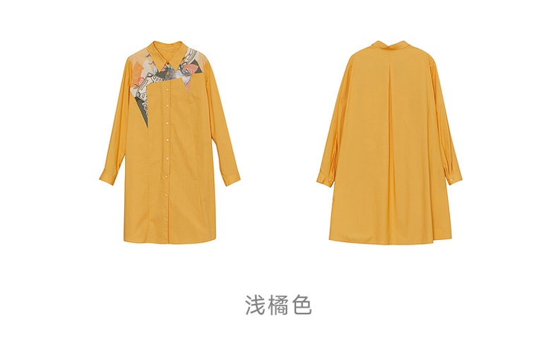 谜底衬衫式连衣裙2023秋款时尚简约印花拼接宽松中长裙233ML1104