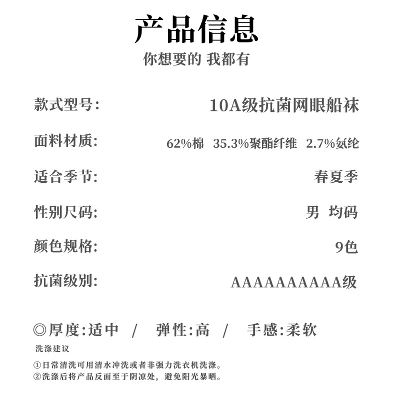 袜子男士夏季薄款网眼船袜10a抗菌防臭短袜防滑不掉跟浅口隐形袜
