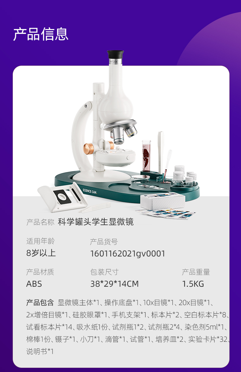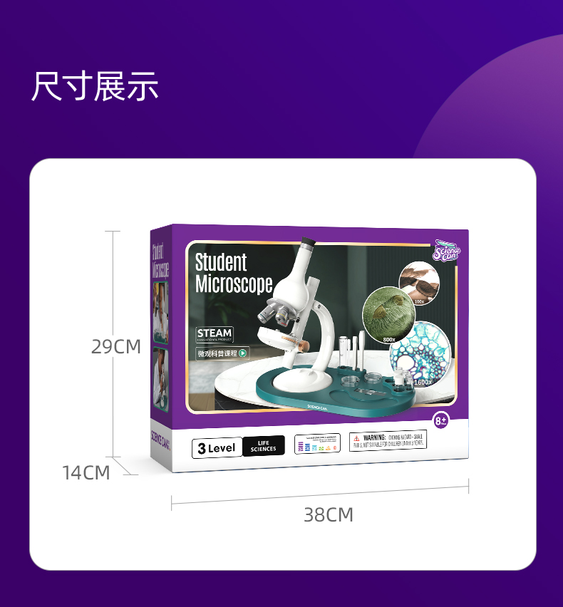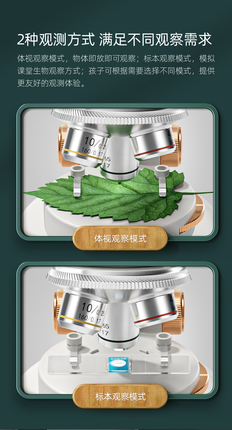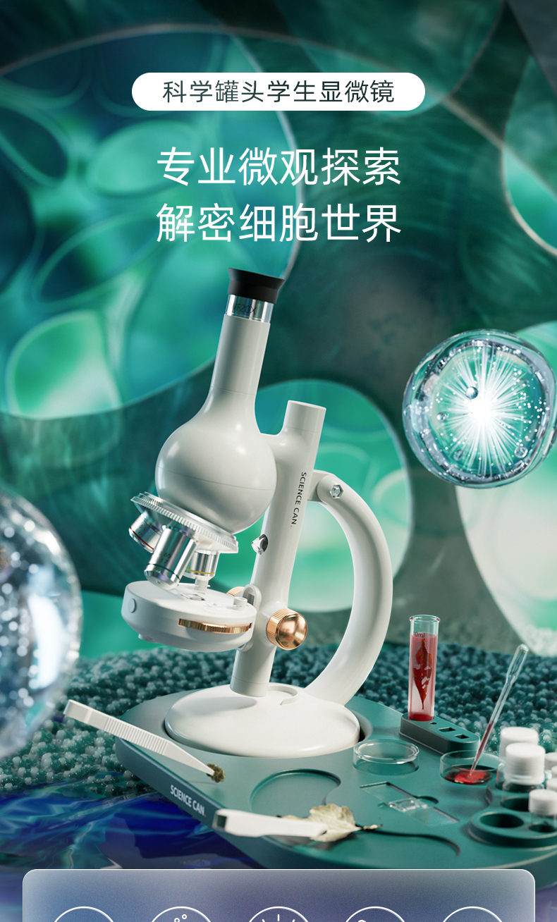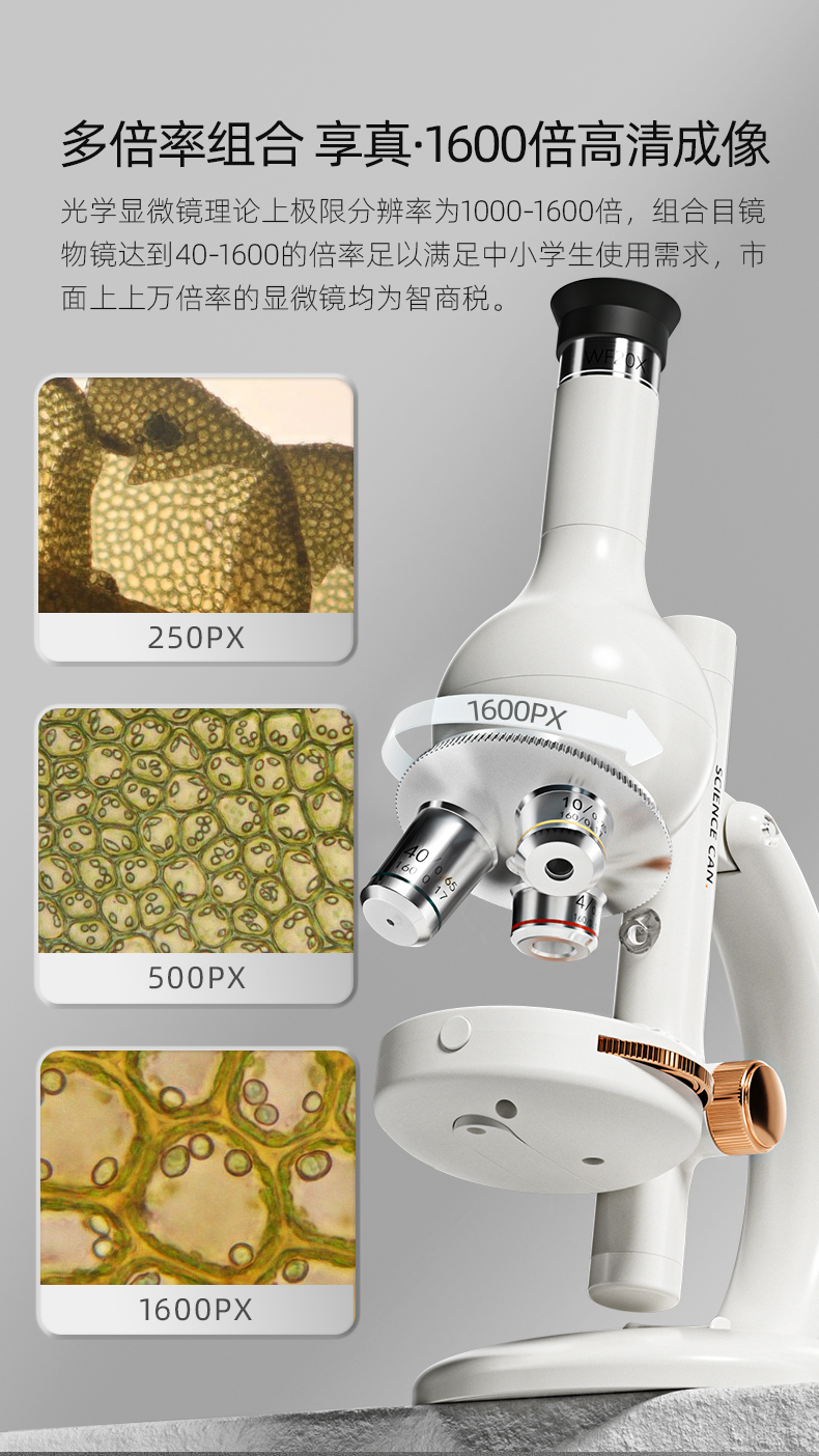 科学罐头光学显微镜1600倍儿童高清台式可看细菌初中学生专用电子