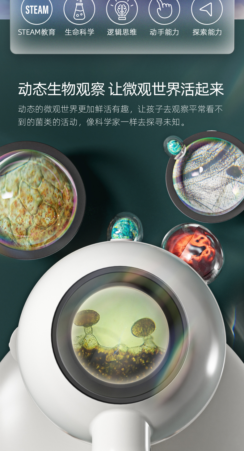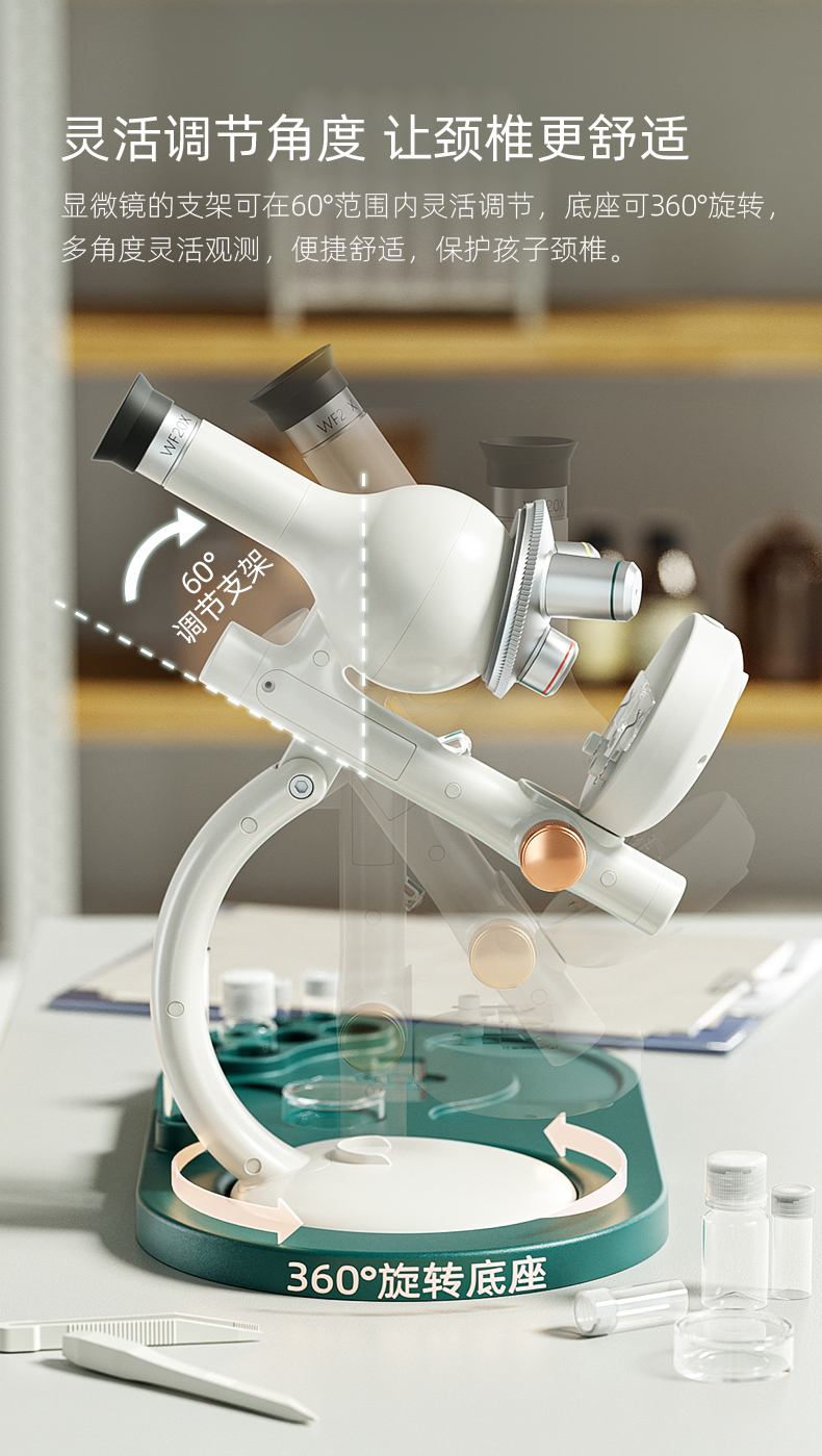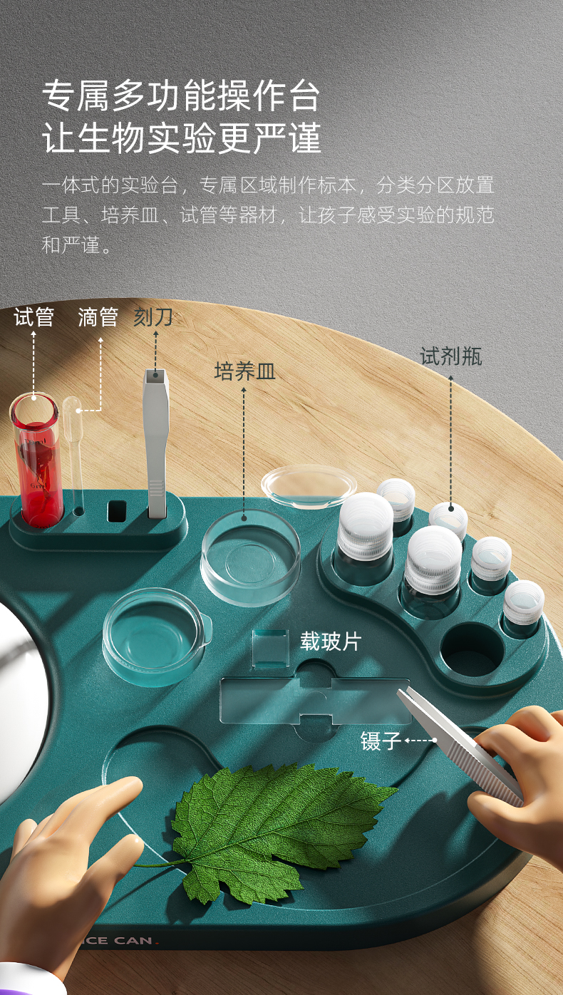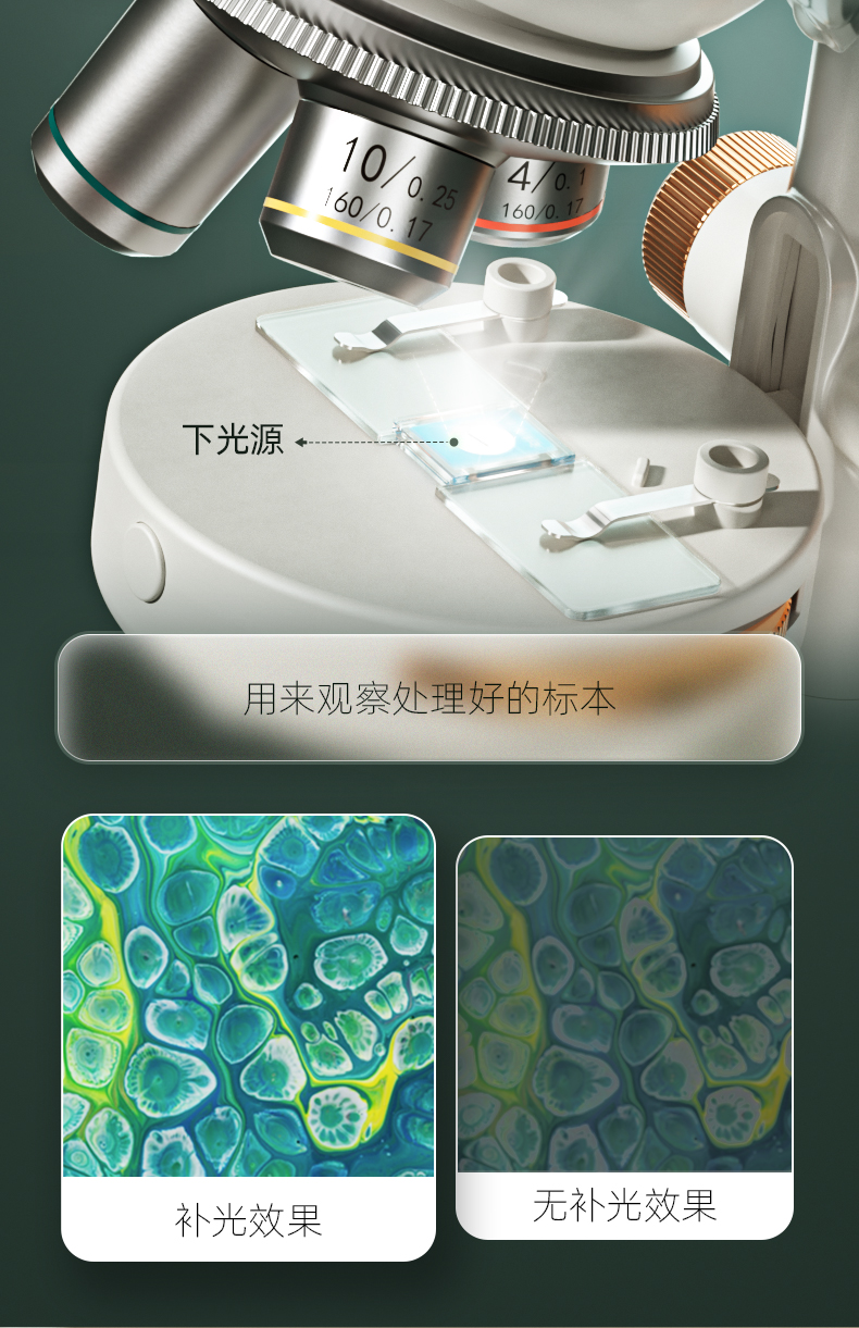 科学罐头光学显微镜1600倍儿童高清台式可看细菌初中学生专用电子