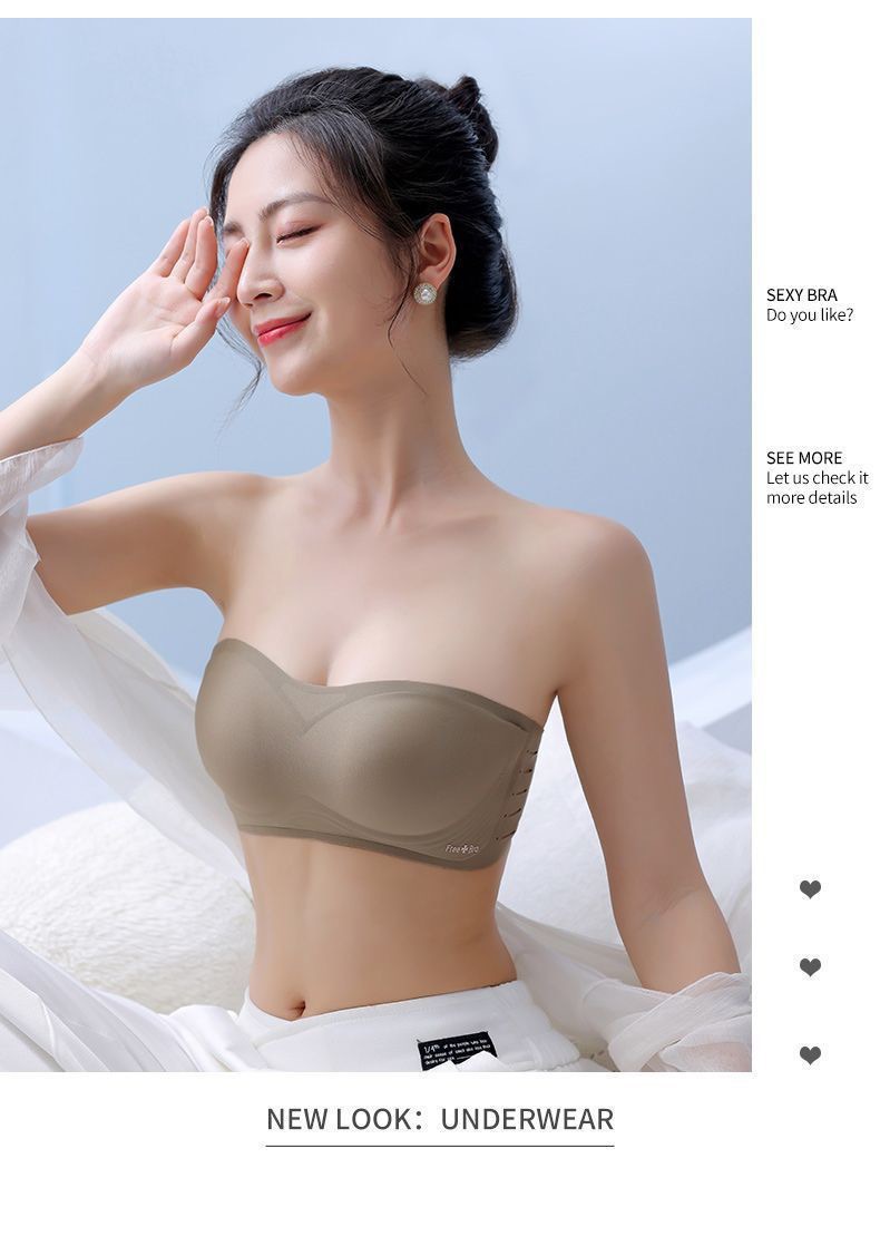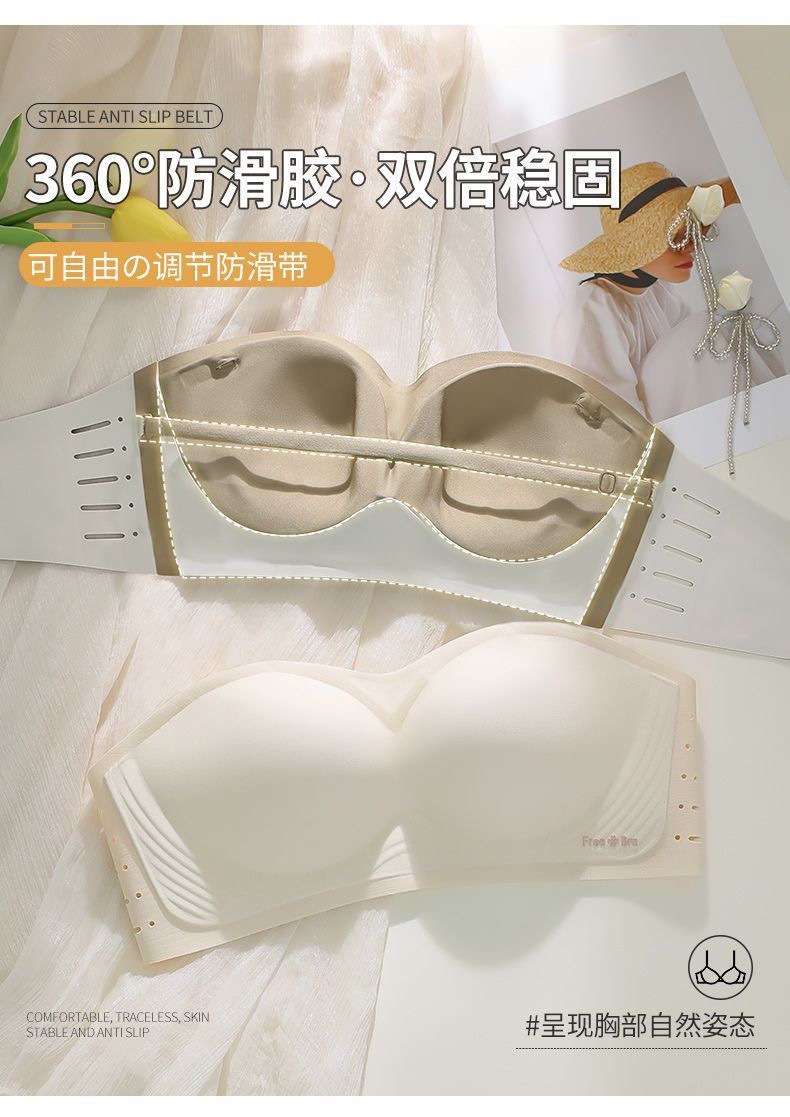 夏季无肩带防滑内衣 新款吸汗内衣女防滑舒适小胸聚拢防走光抹胸美背无痕