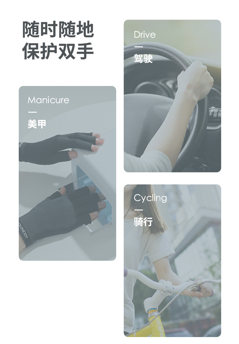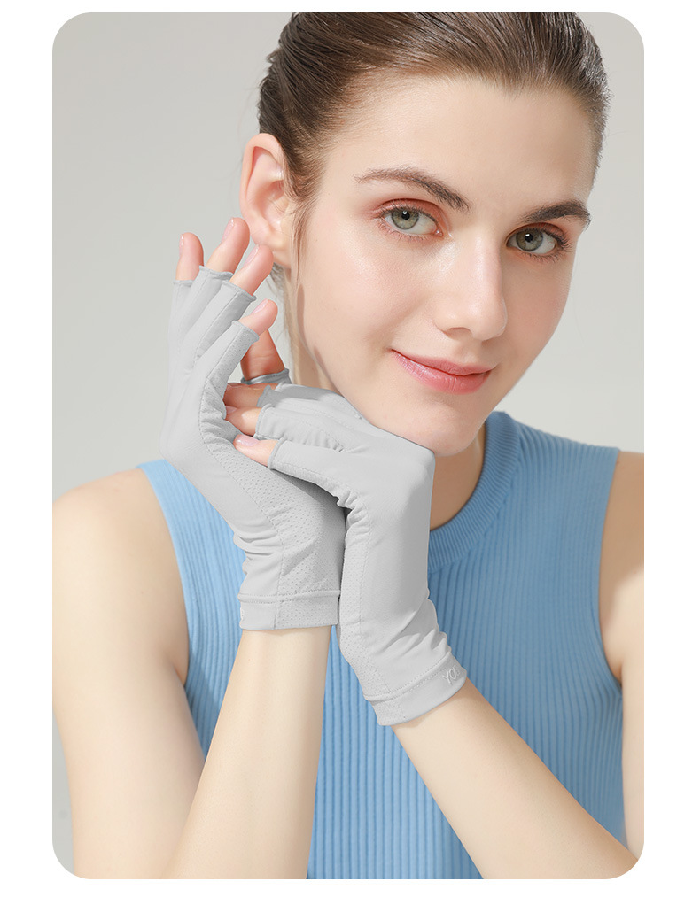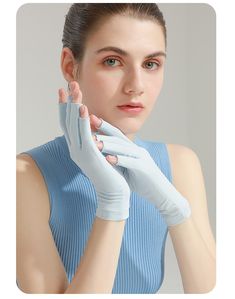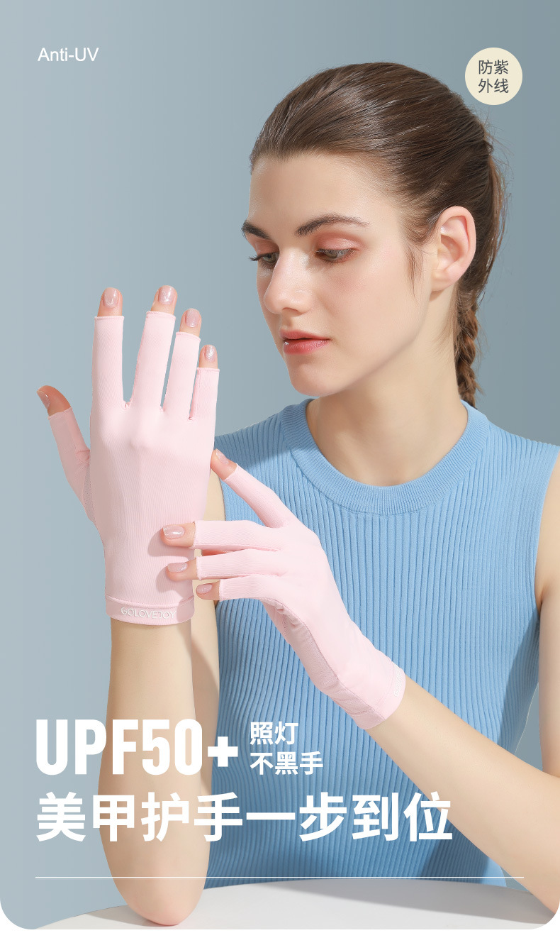 美甲手套女半指防照灯辐射专用户外开车防紫外线冰丝露指防晒手套