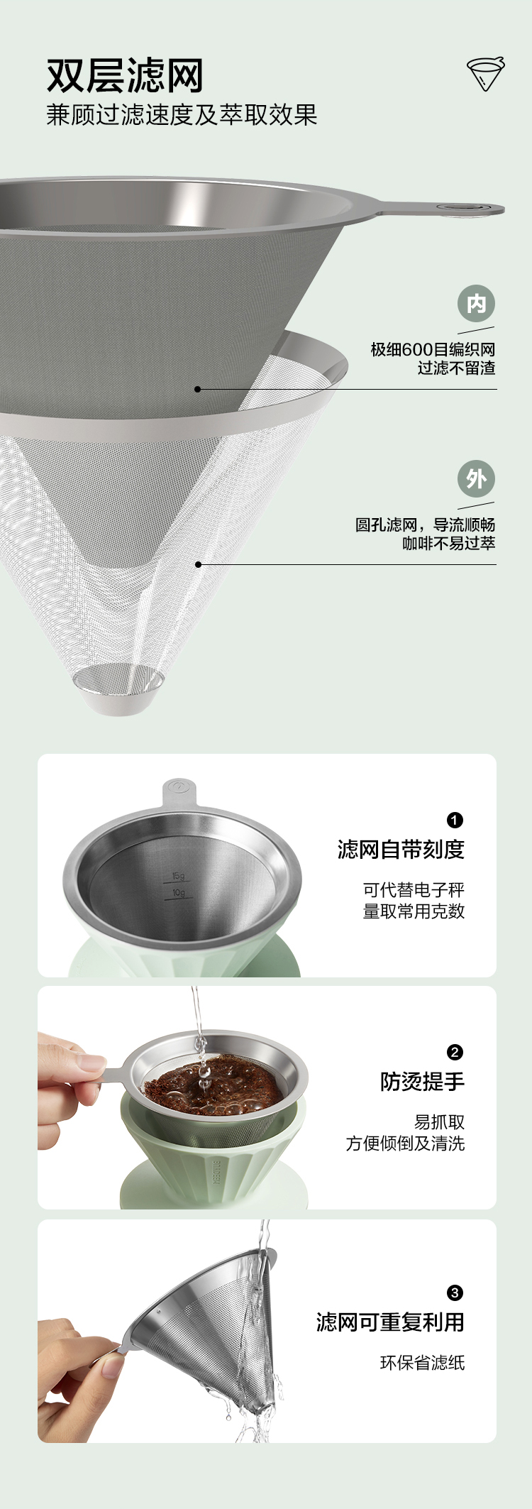 【专柜-北鼎】北鼎咖啡滤杯双层过滤网手冲咖啡套装漏斗滤网器具工具免滤纸便携