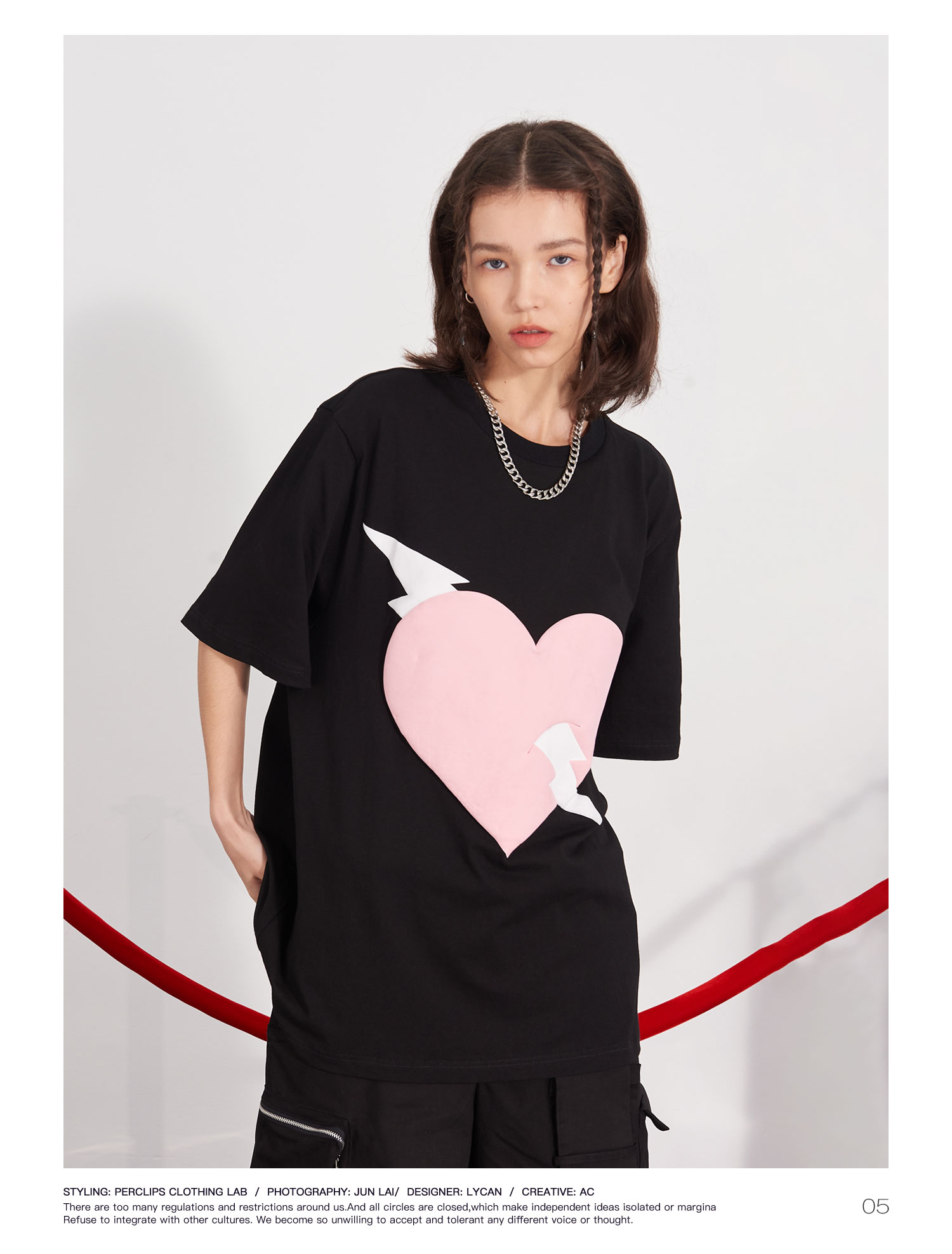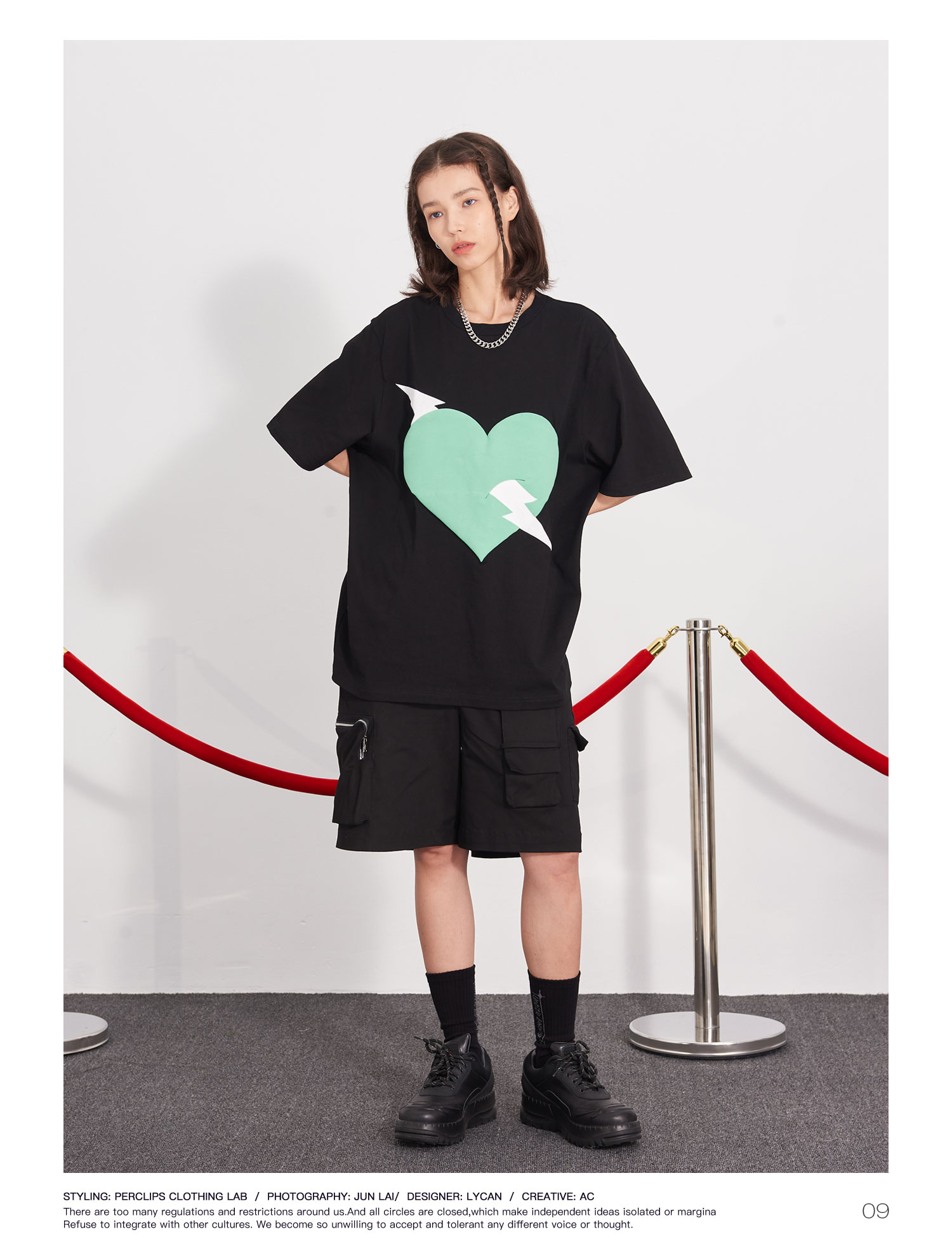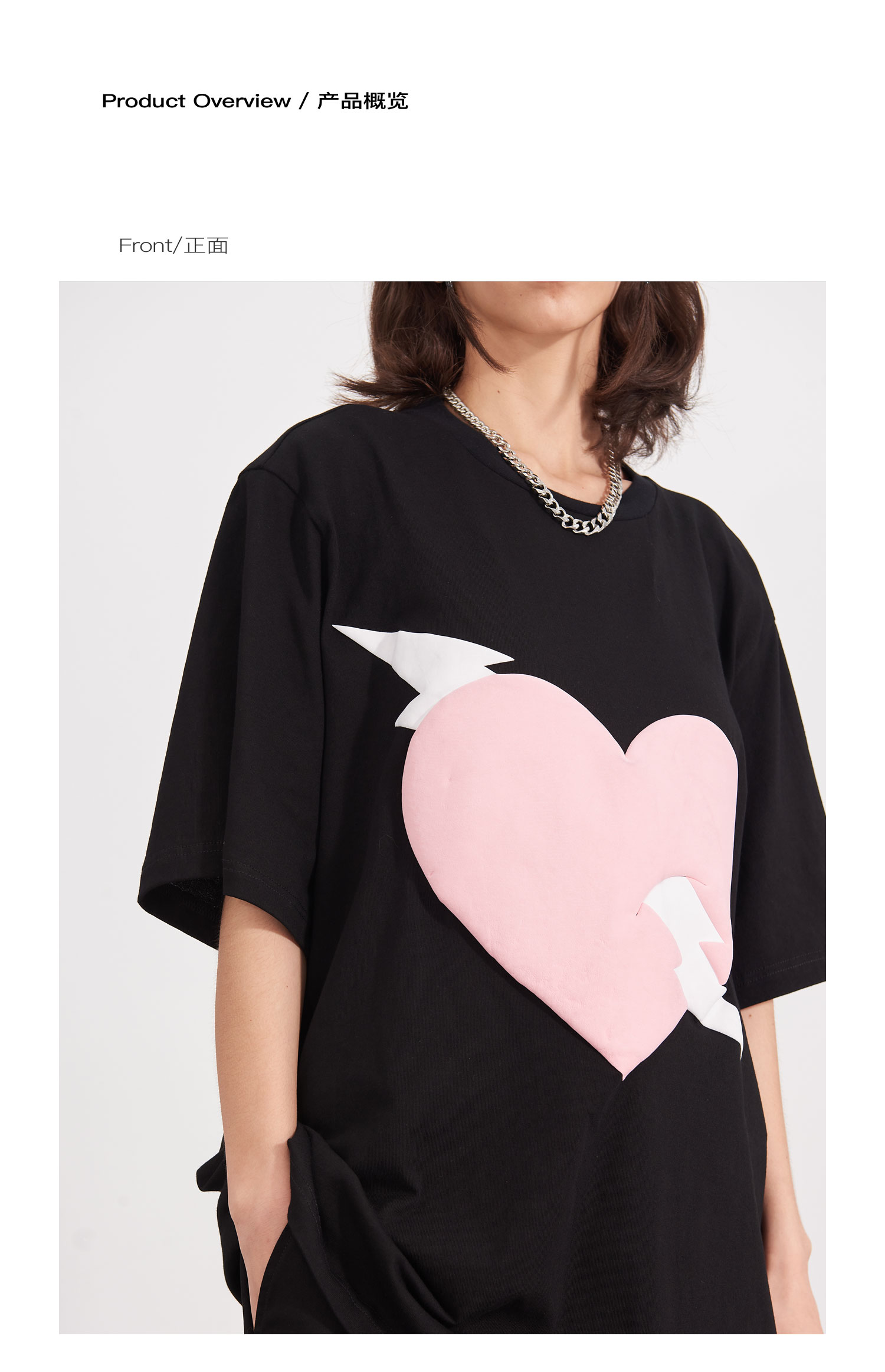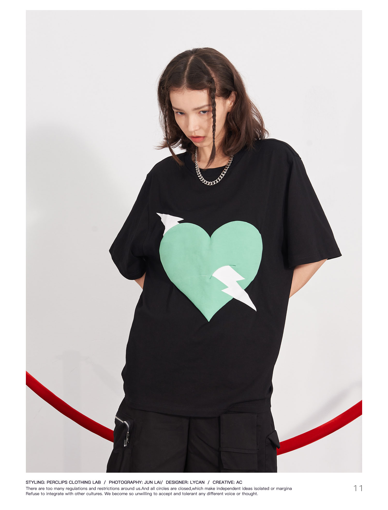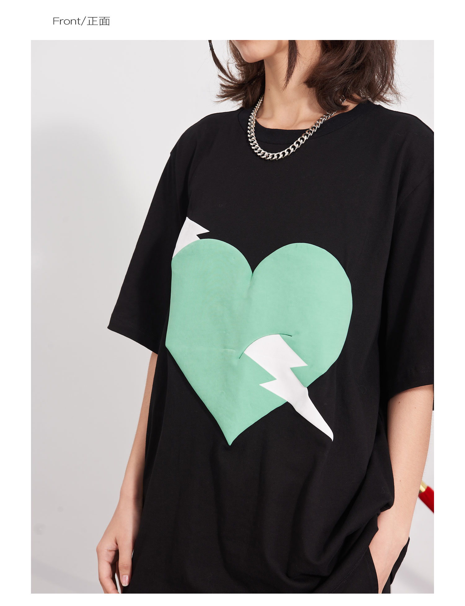 PCLP(PERCLIPS) 闪电爱心潮流印花短袖男国潮牌纯棉宽松半袖t恤男
