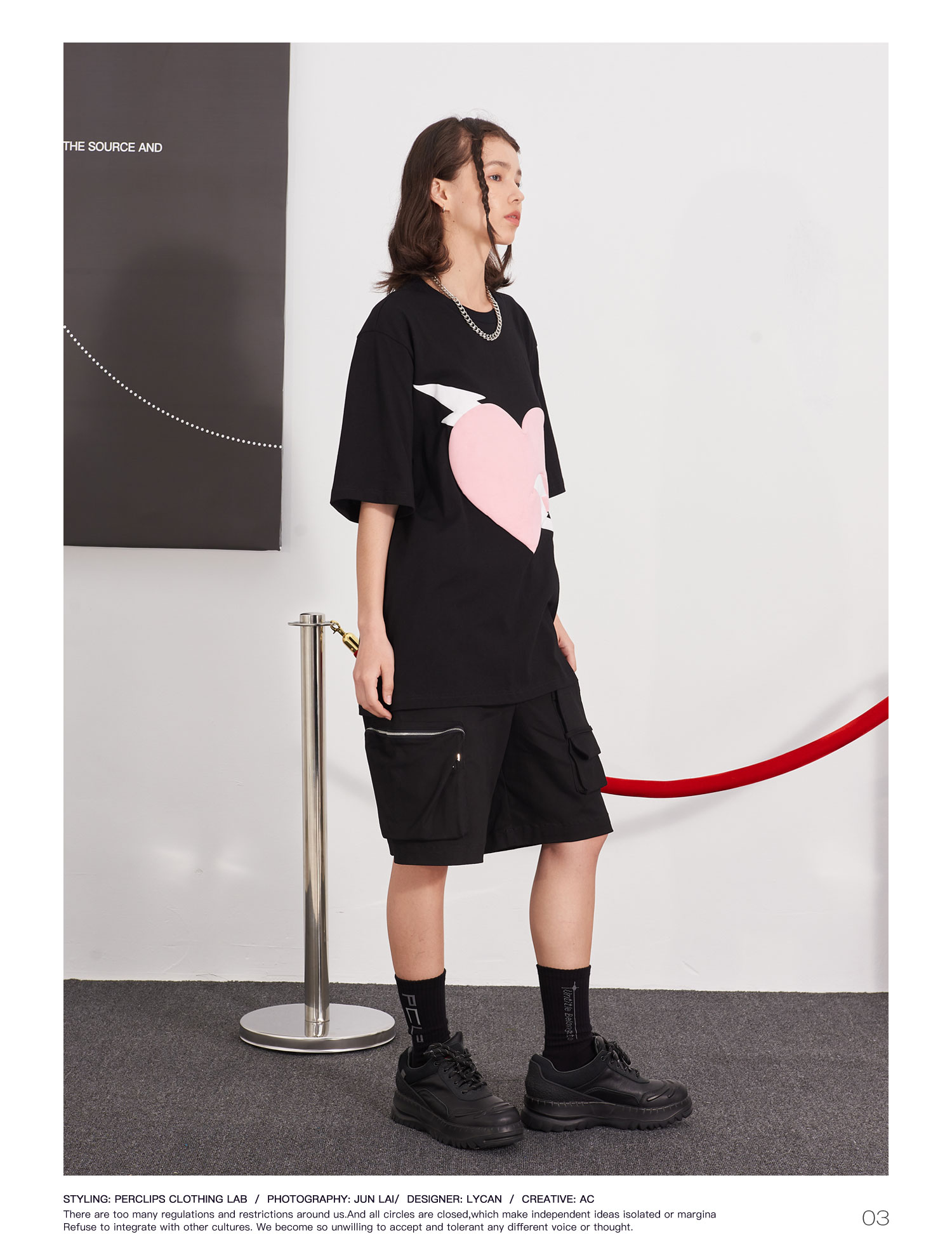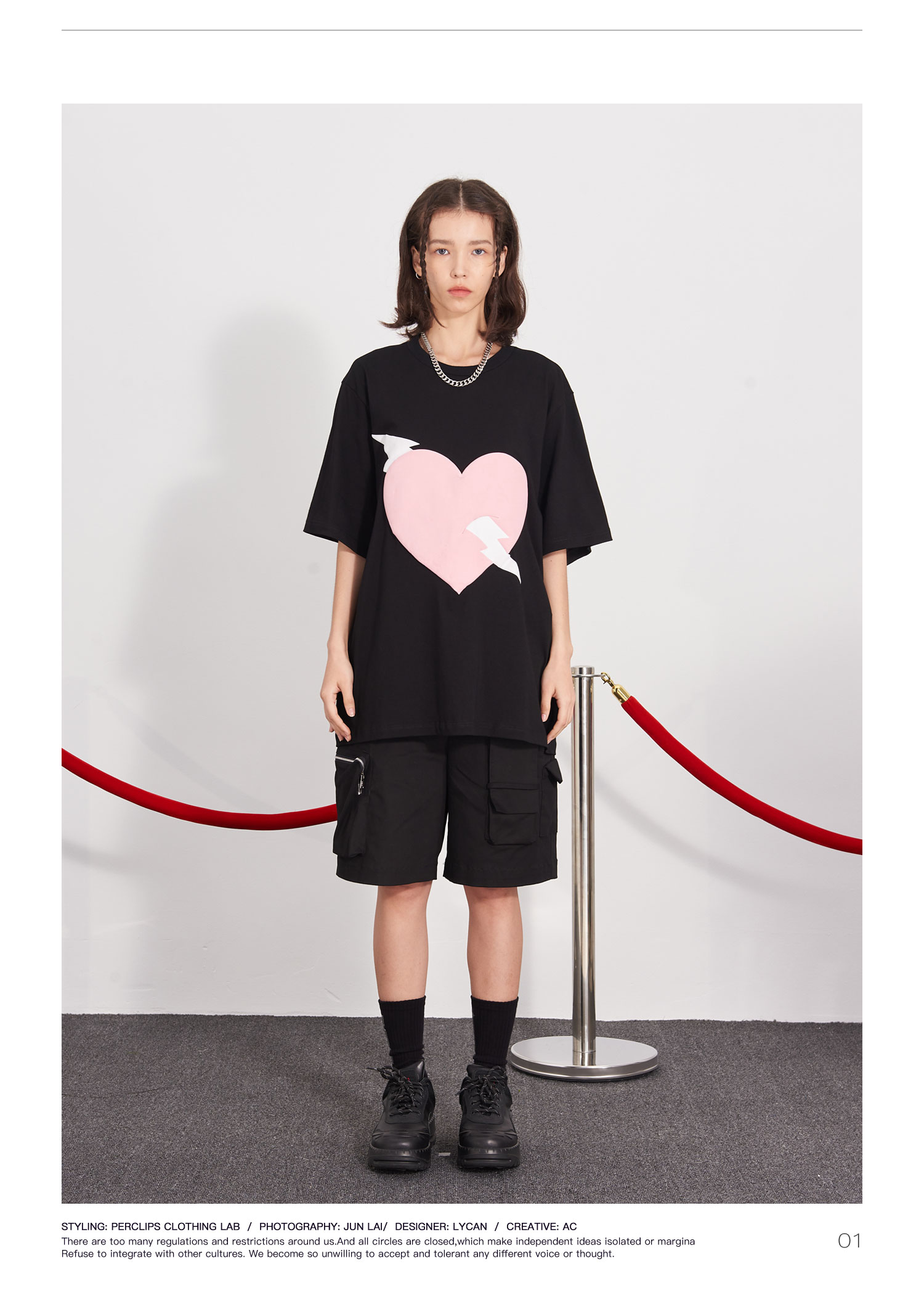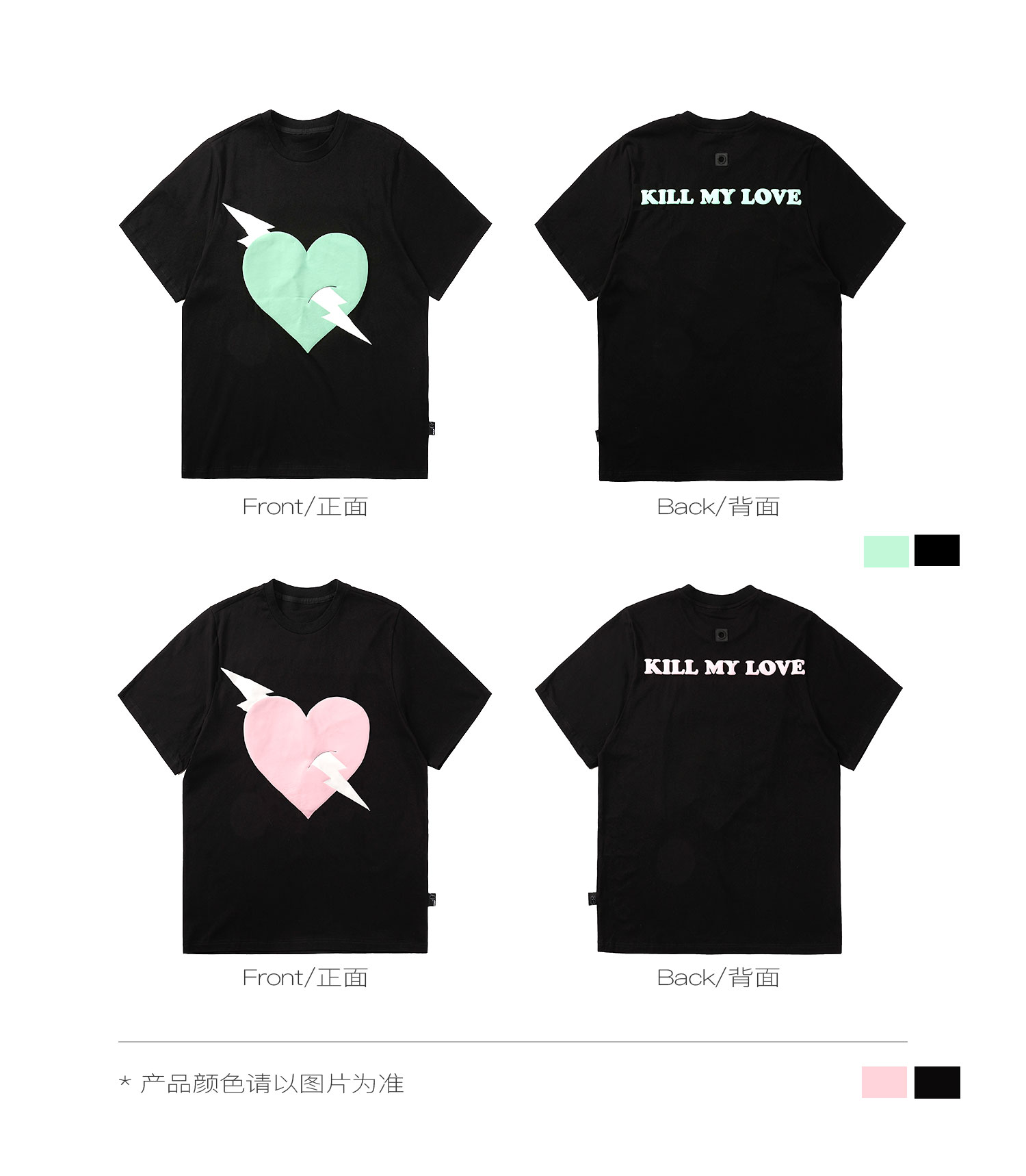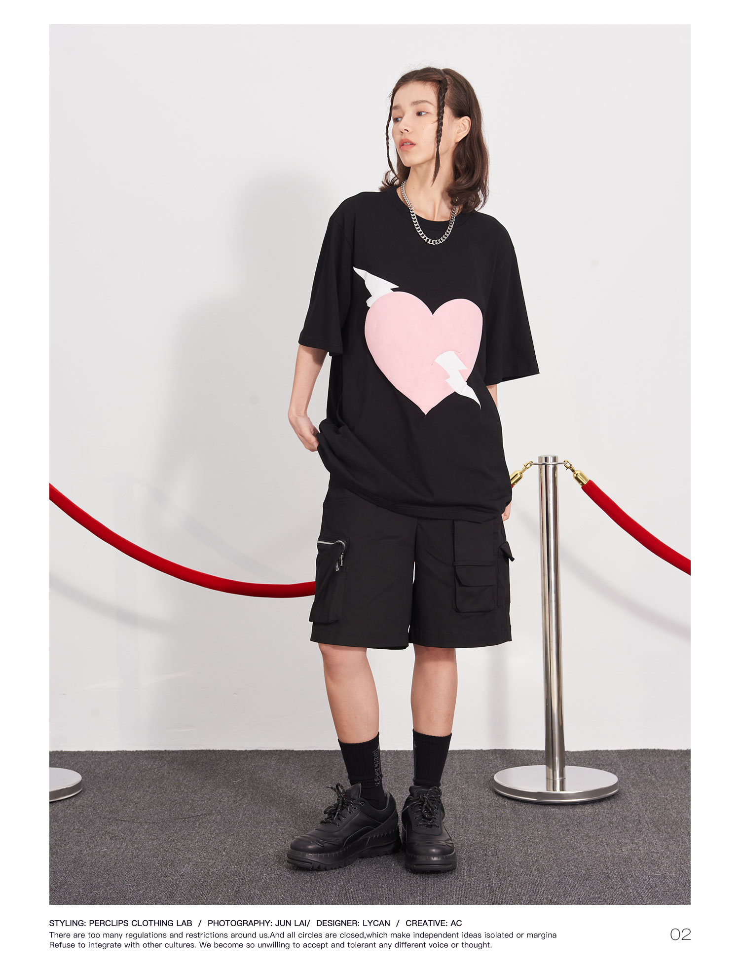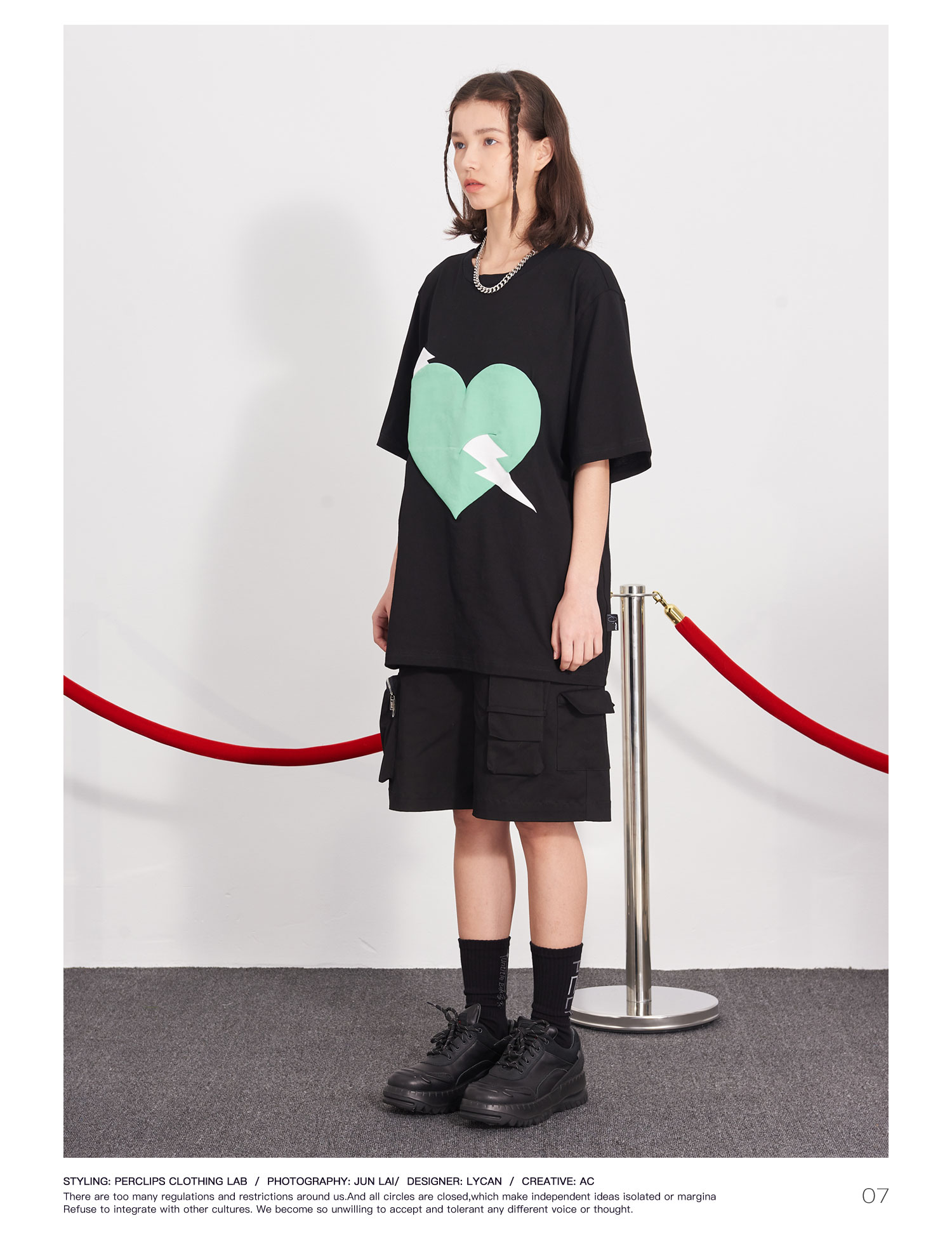 PCLP(PERCLIPS) 闪电爱心潮流印花短袖男国潮牌纯棉宽松半袖t恤男