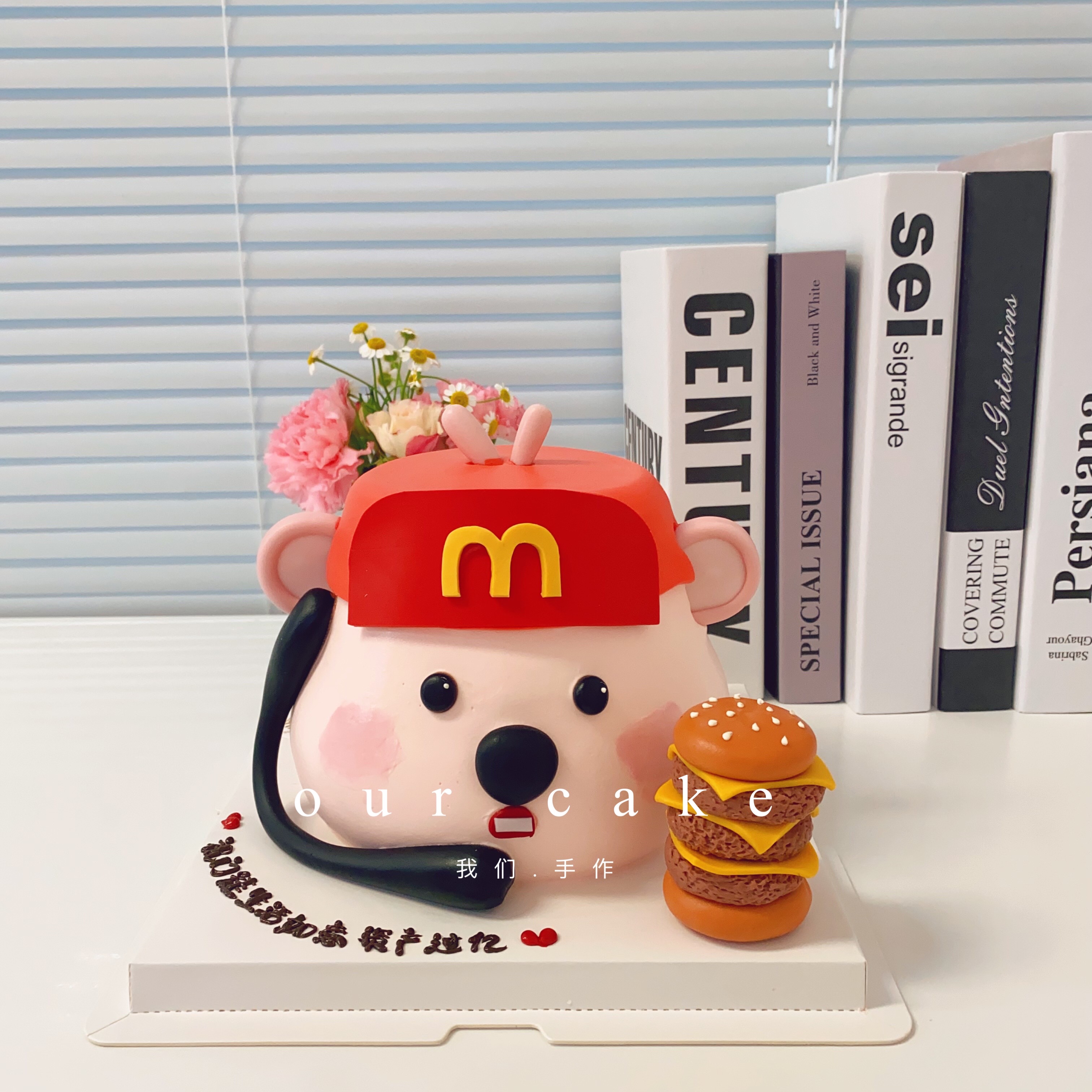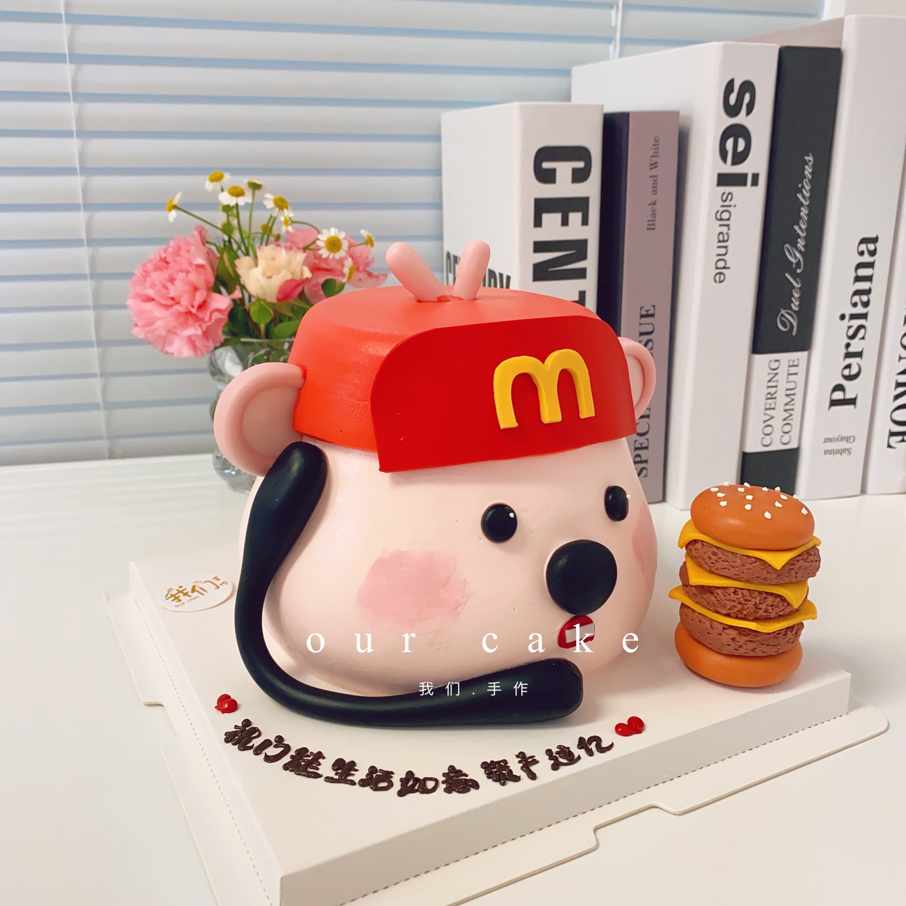 麦当劳金拱门小海狸loopy卡通蛋糕-低糖处理无添加