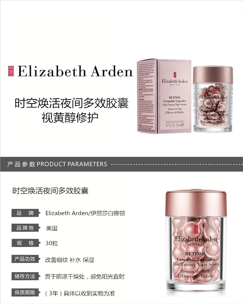 Elizabeth Arden 伊丽莎白雅顿 视黄醇玫瑰粉胶囊 约30粒 美国