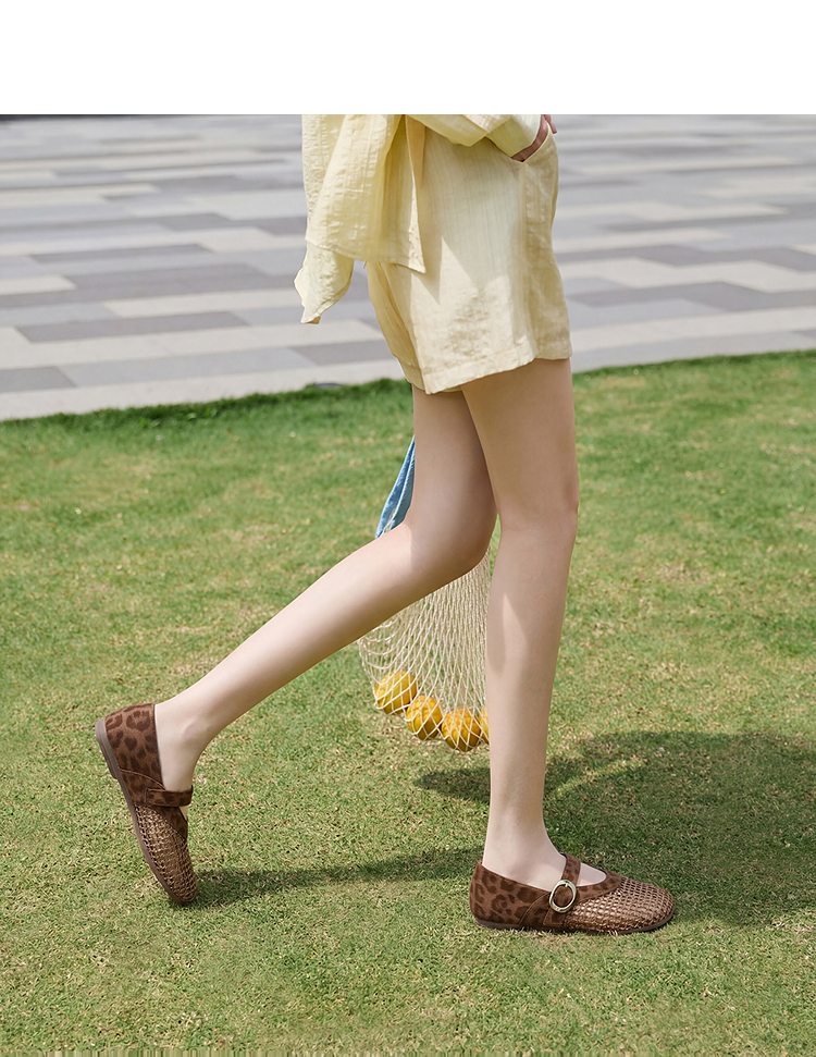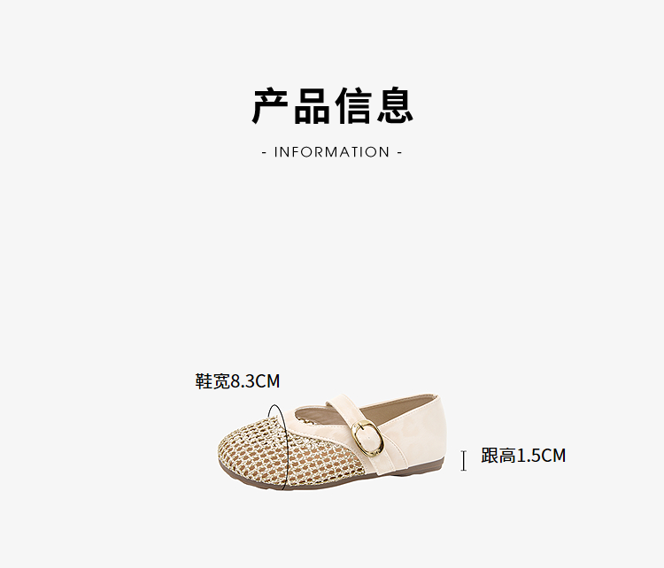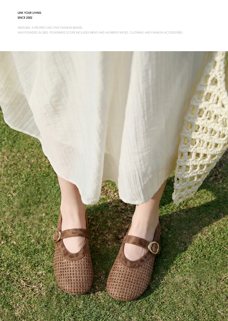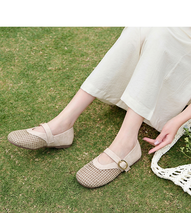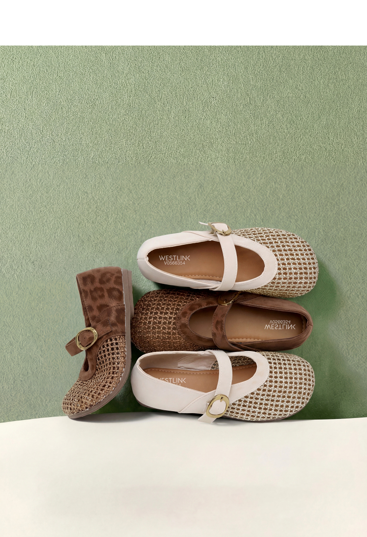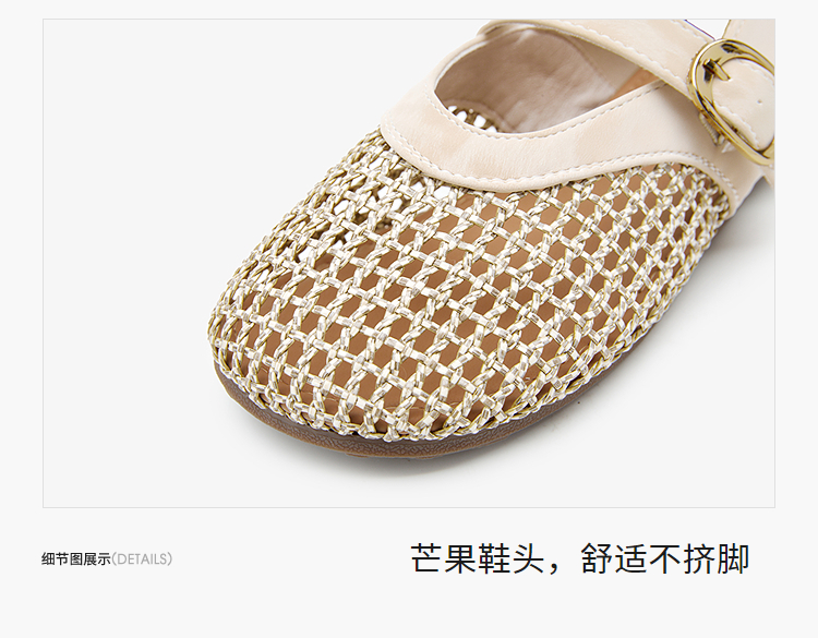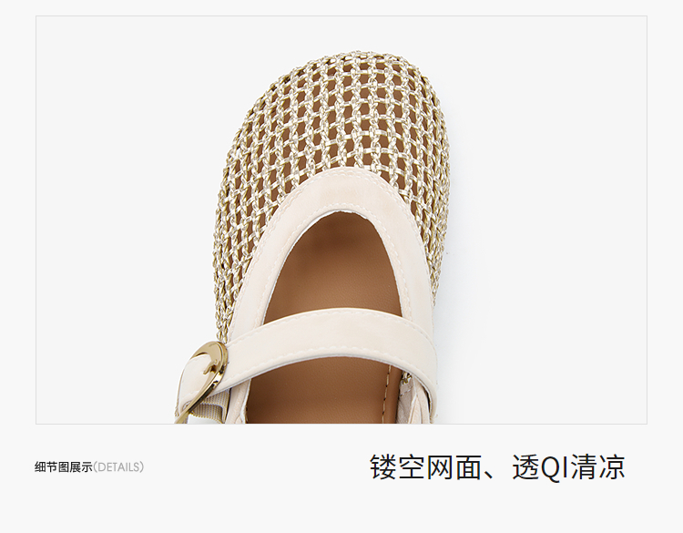 西遇镂空编织玛丽珍鞋女2026春夏季新款一字扣平底透气通勤单鞋子V0566354