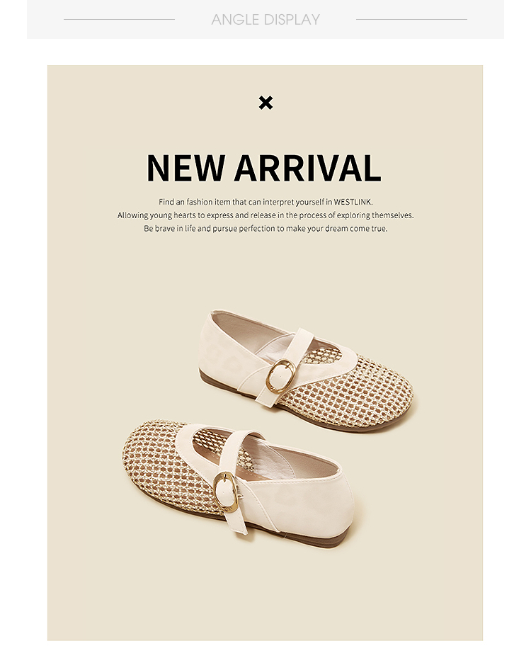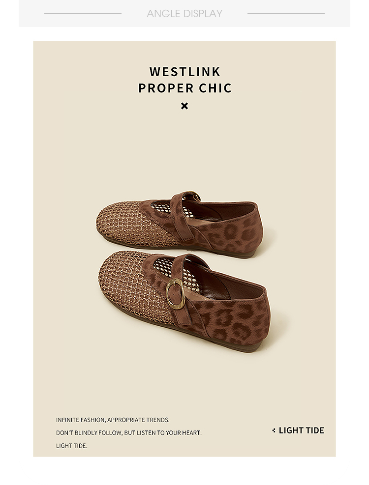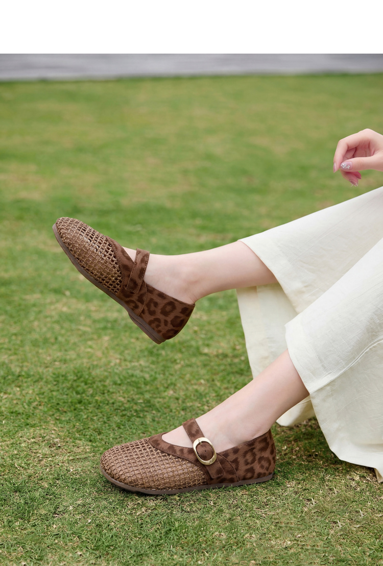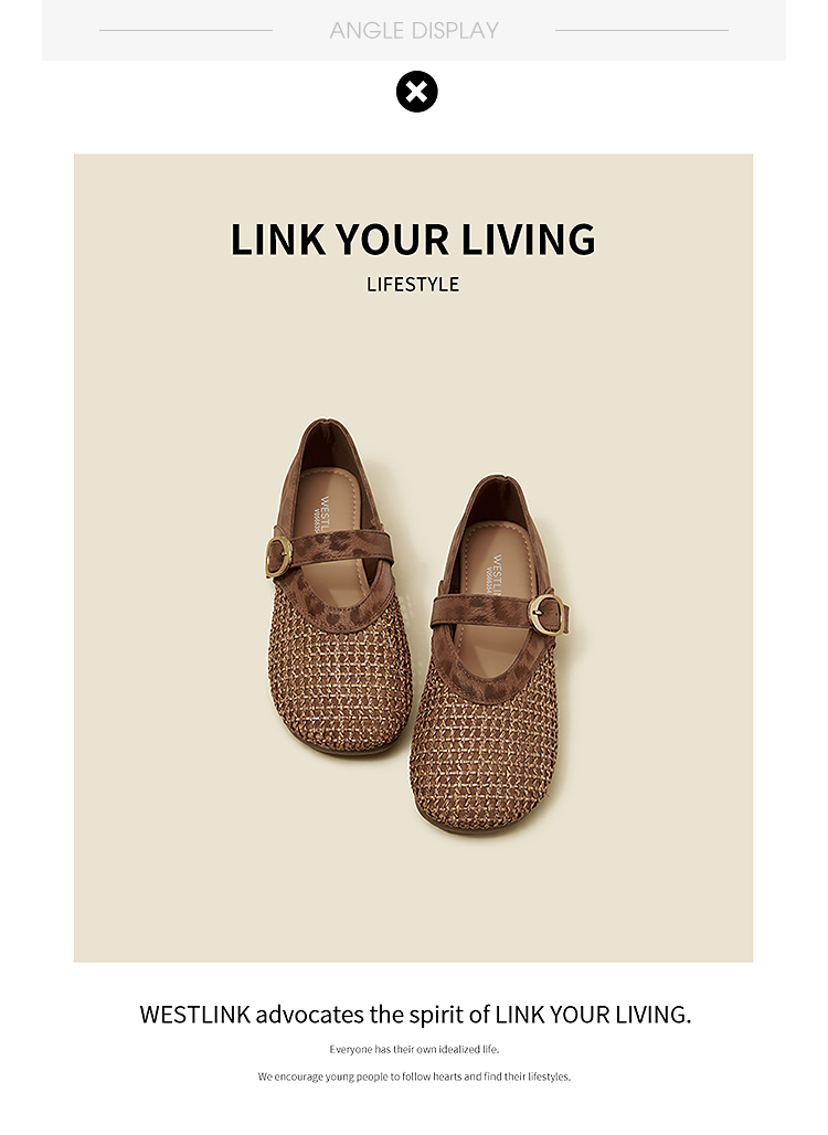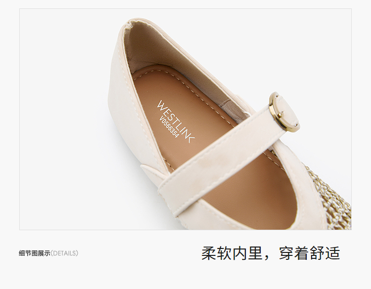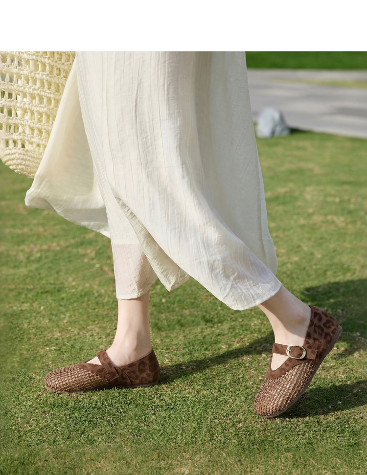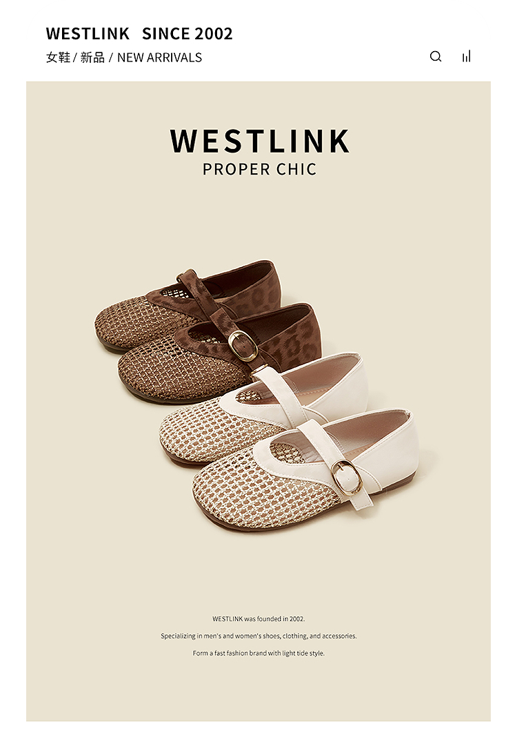 西遇镂空编织玛丽珍鞋女2026春夏季新款一字扣平底透气通勤单鞋子V0566354