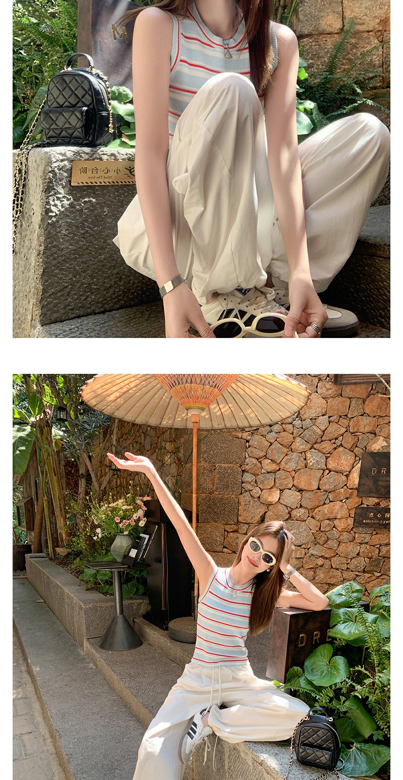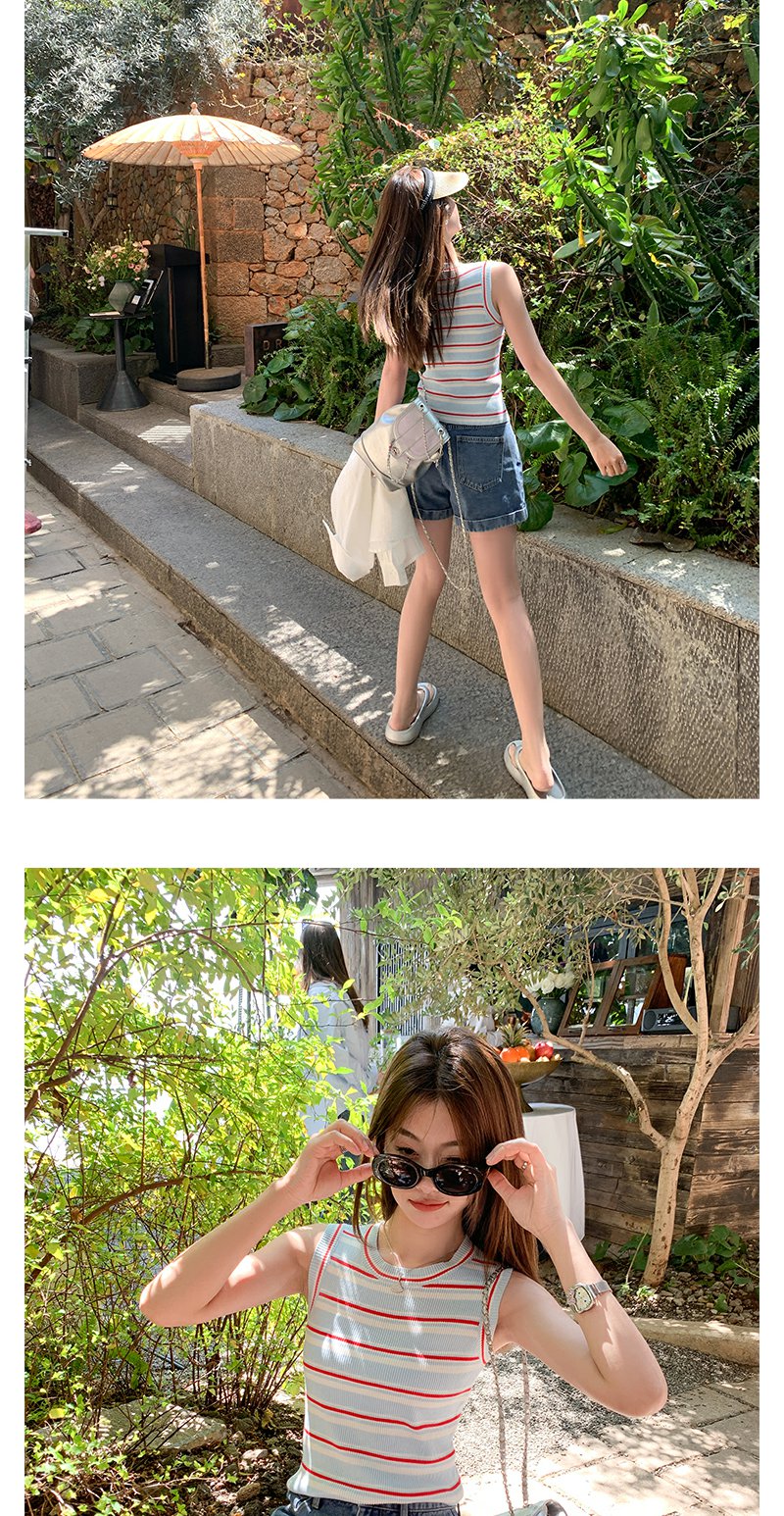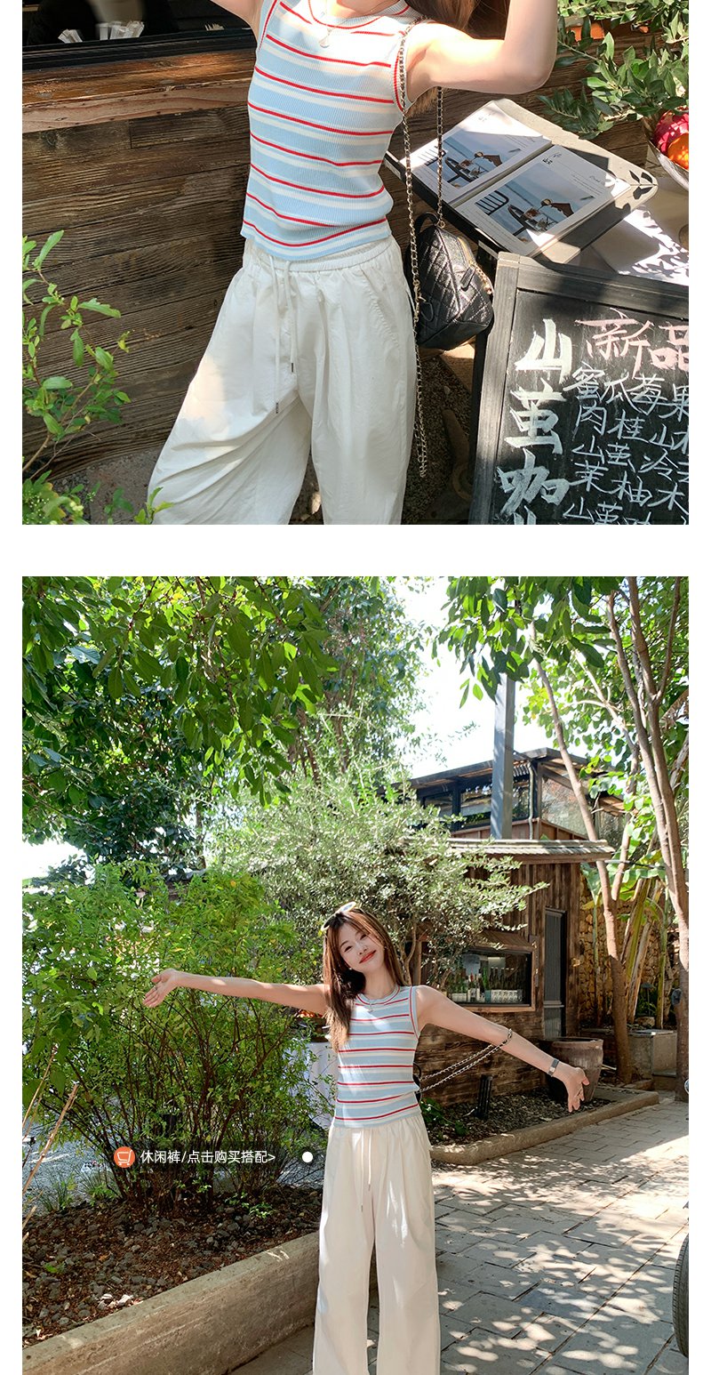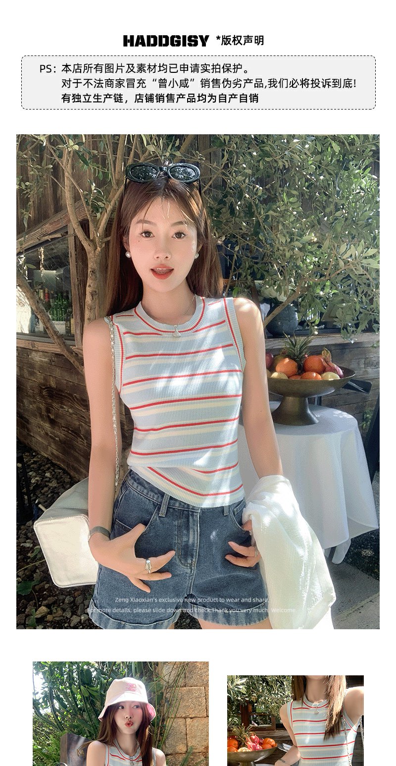 <曾小咸推荐>复古修身显瘦蓝红条纹针织背心