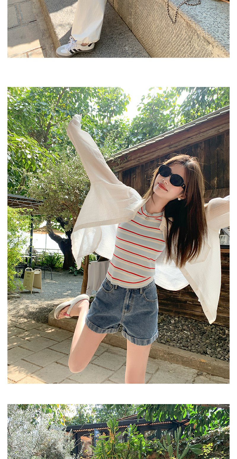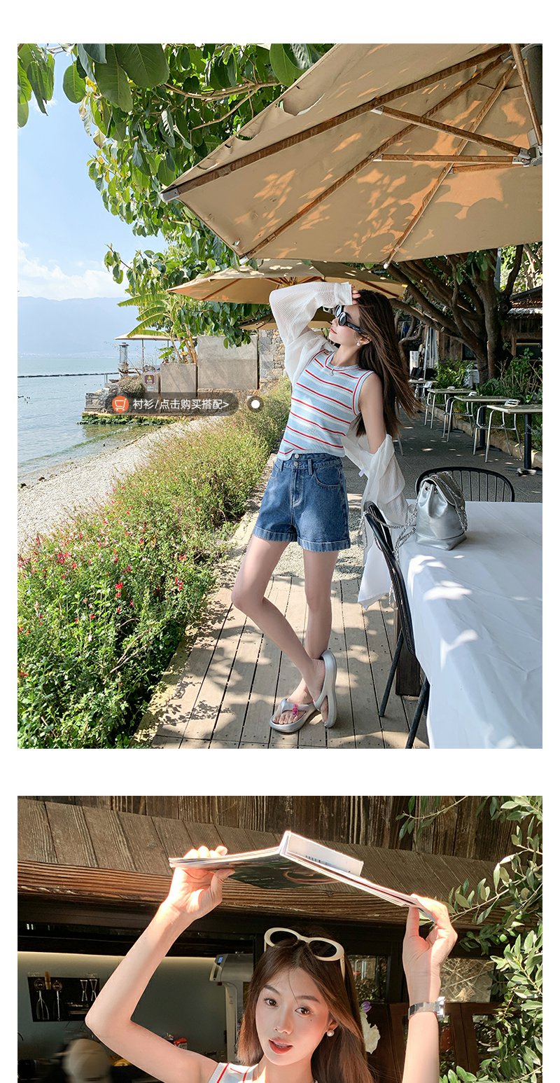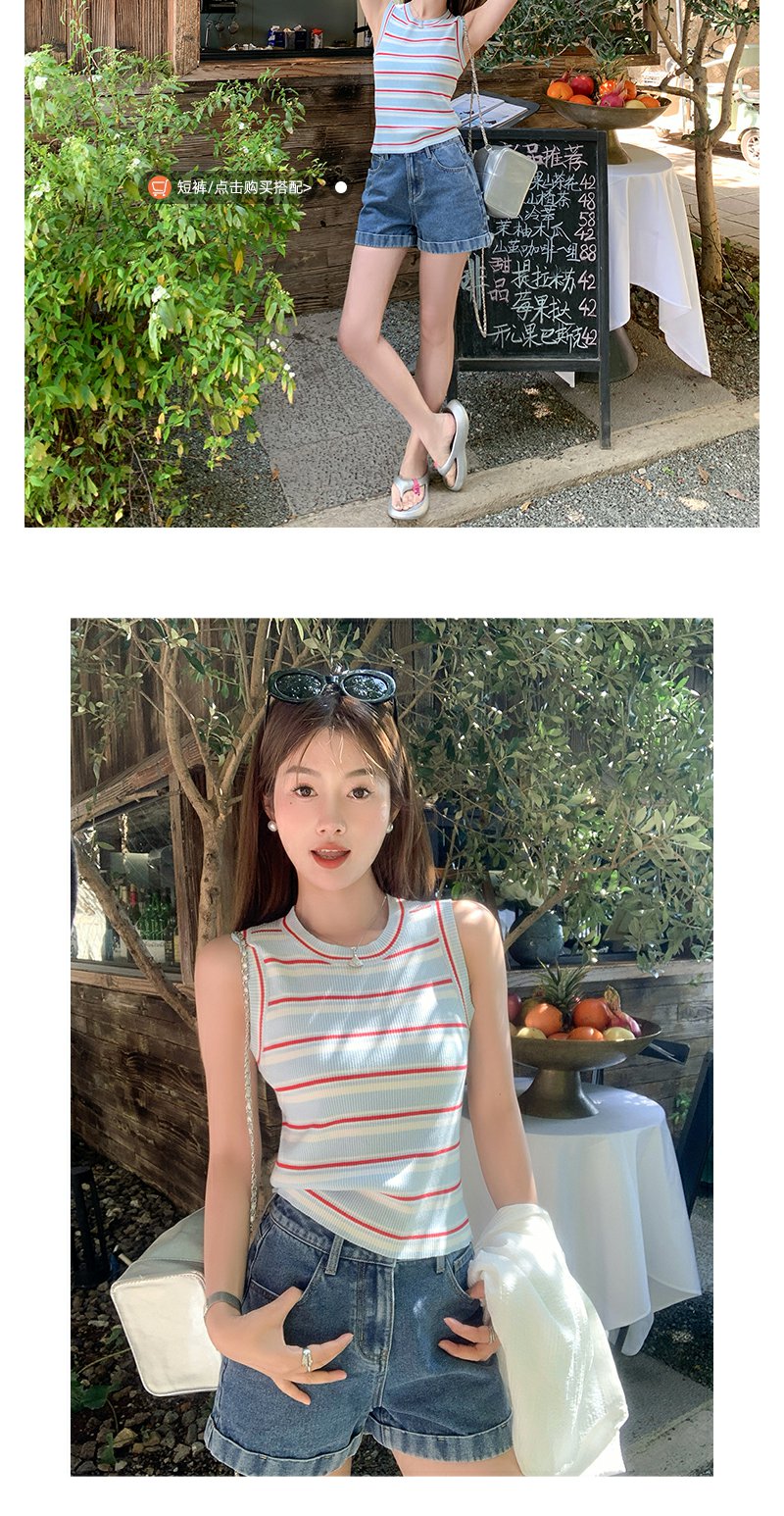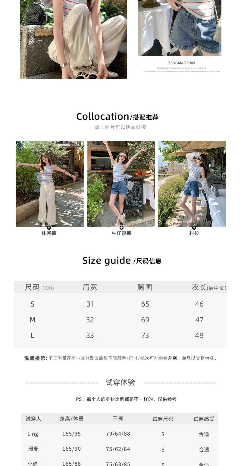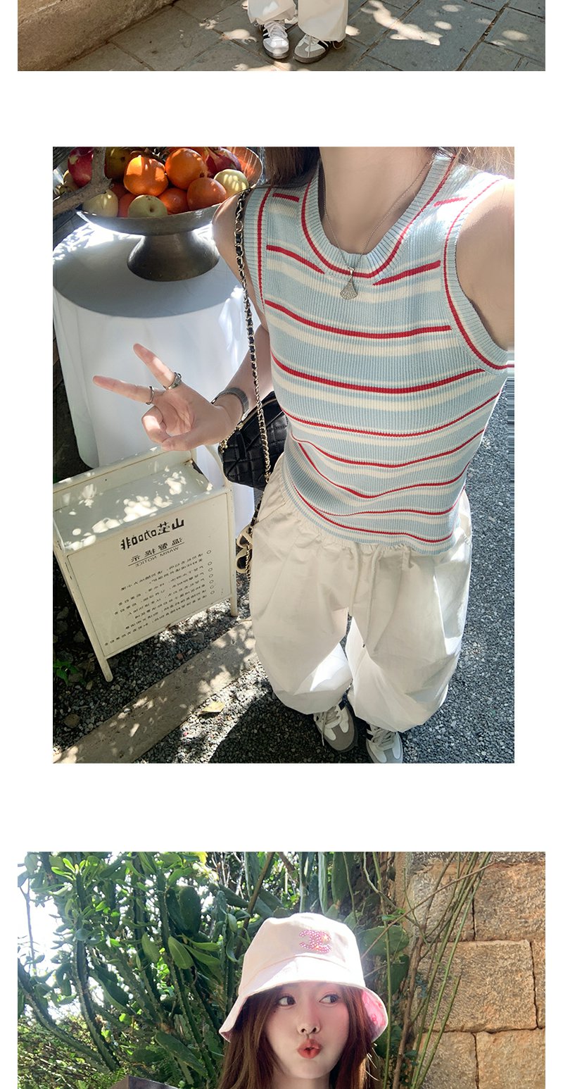 <曾小咸推荐>复古修身显瘦蓝红条纹针织背心