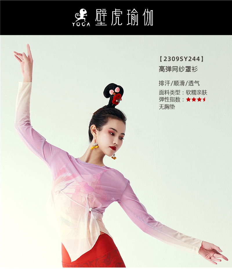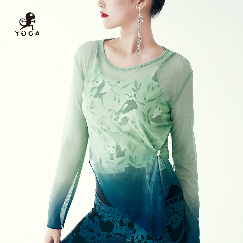 壁虎瑜伽【2309SY244】渐变网纱透气长袖罩衫(无胸垫)【5天发货】