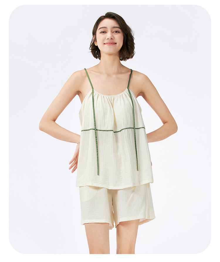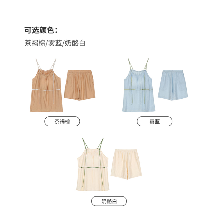 都市丽人生活家居女士梭织棉吊带套装薄皱纹梭织无袖类LHH2G5