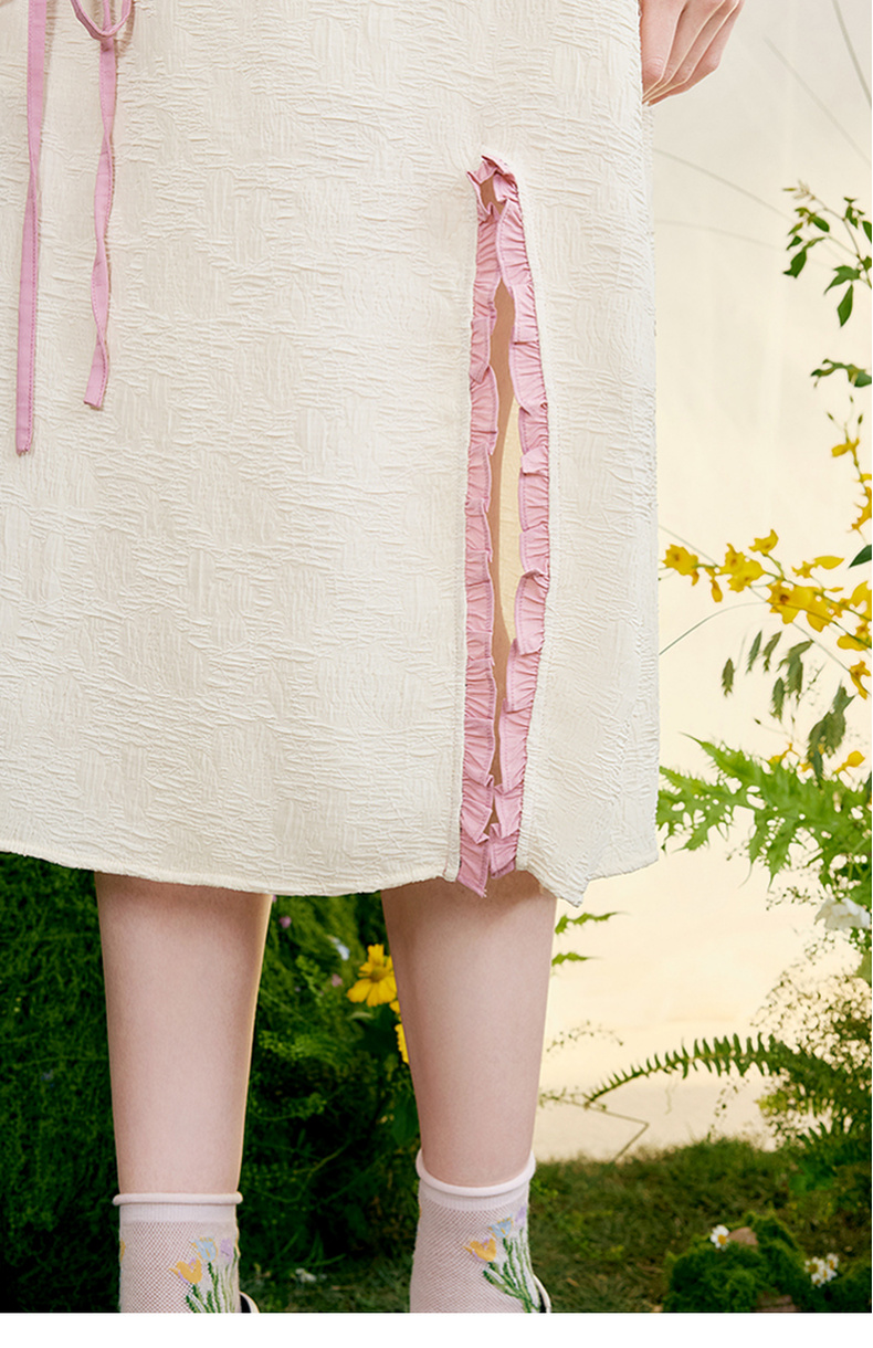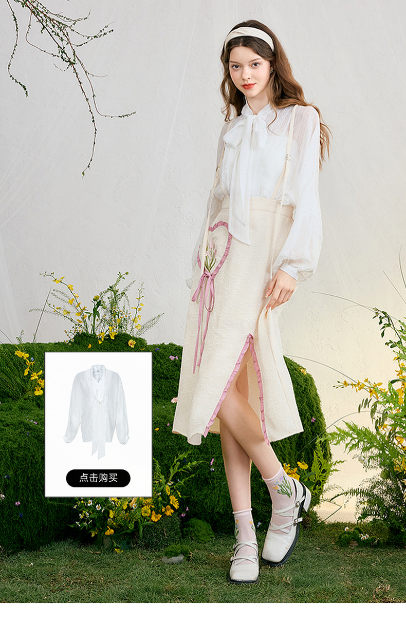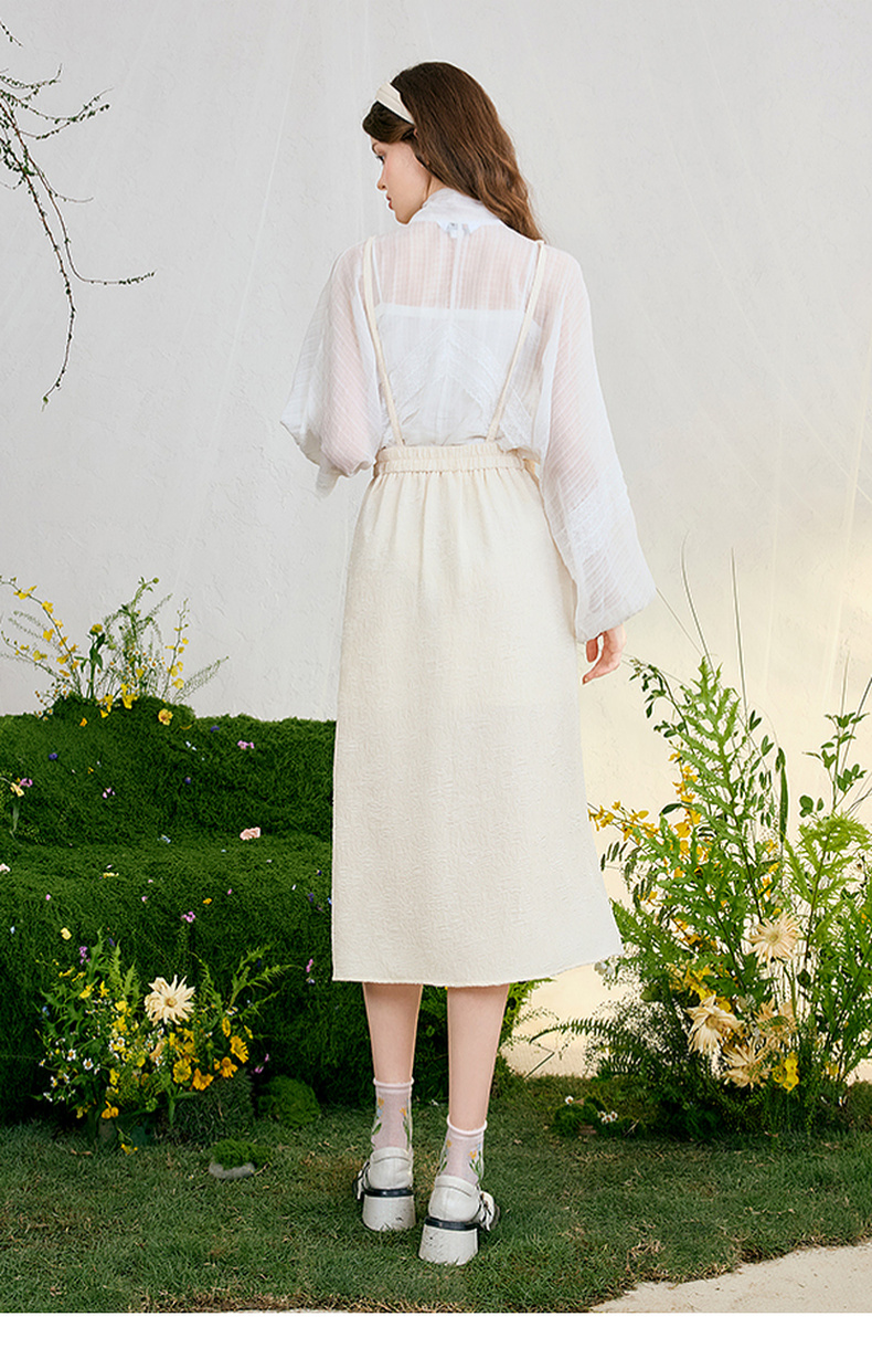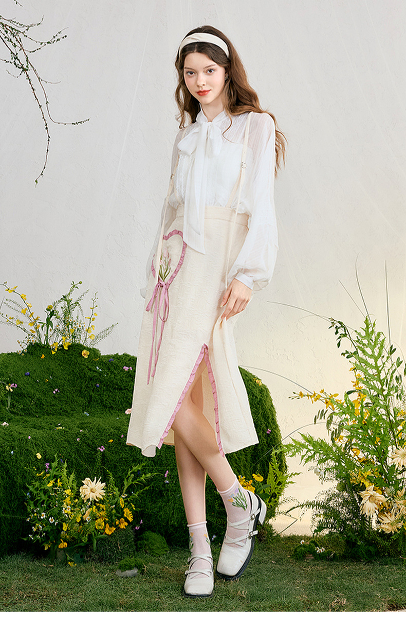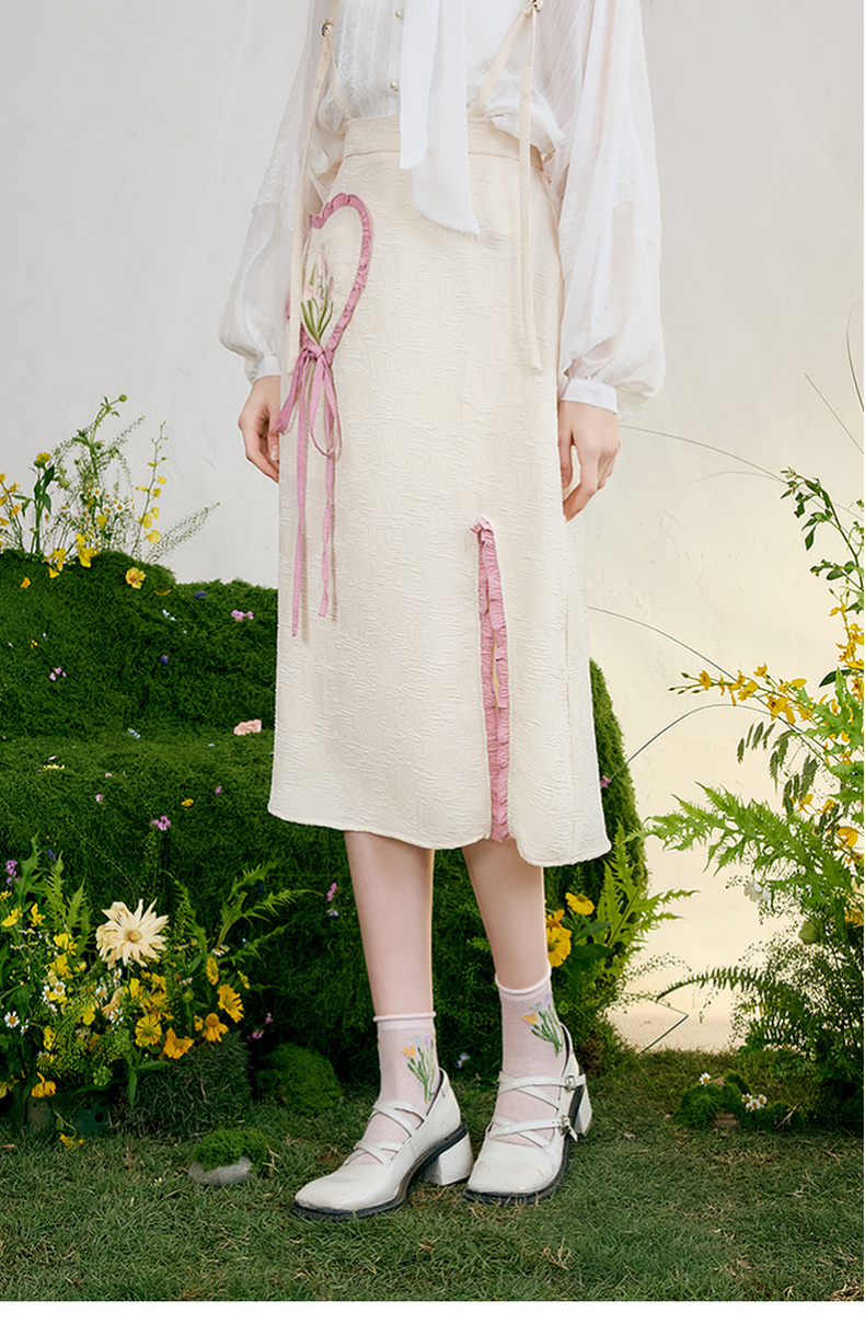 两三事 恋香甜心 2025春季新款小清新绣花心形口袋开叉背带半身裙