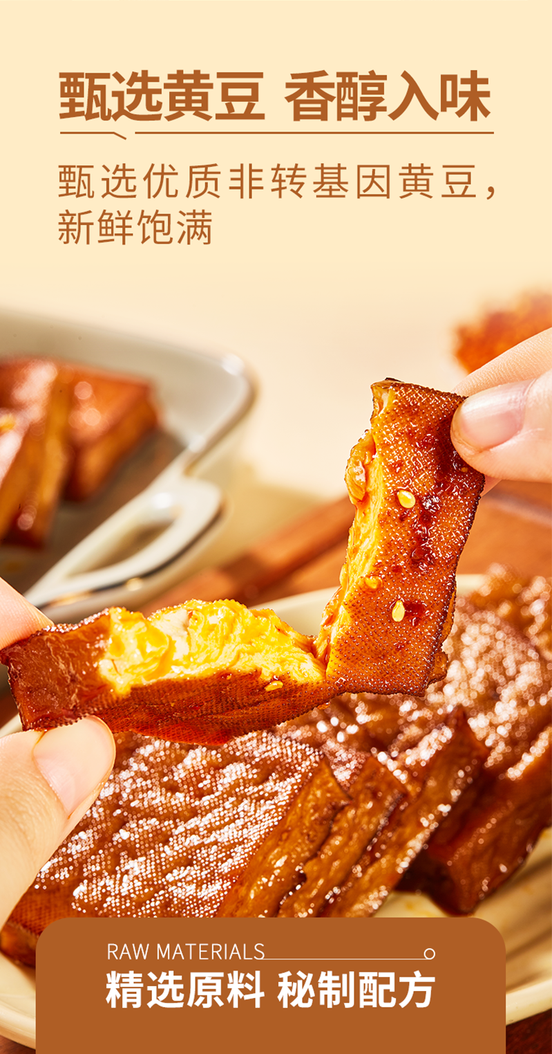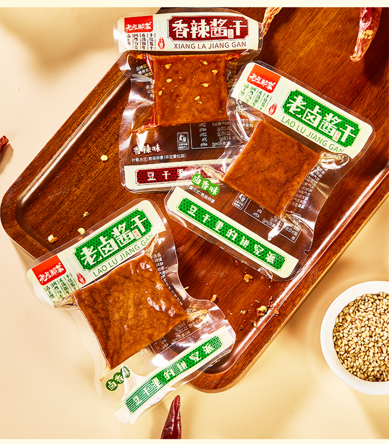 卤香味的,小朋友和老人都能吃,咬下去满满的豆香;香辣味的,更是地道的湖南韵味,辣得过瘾,越嚼越香。每一片豆干在嘴里劲道爽滑,回味悠长,那感觉就像把家乡的味道都含在了嘴里。