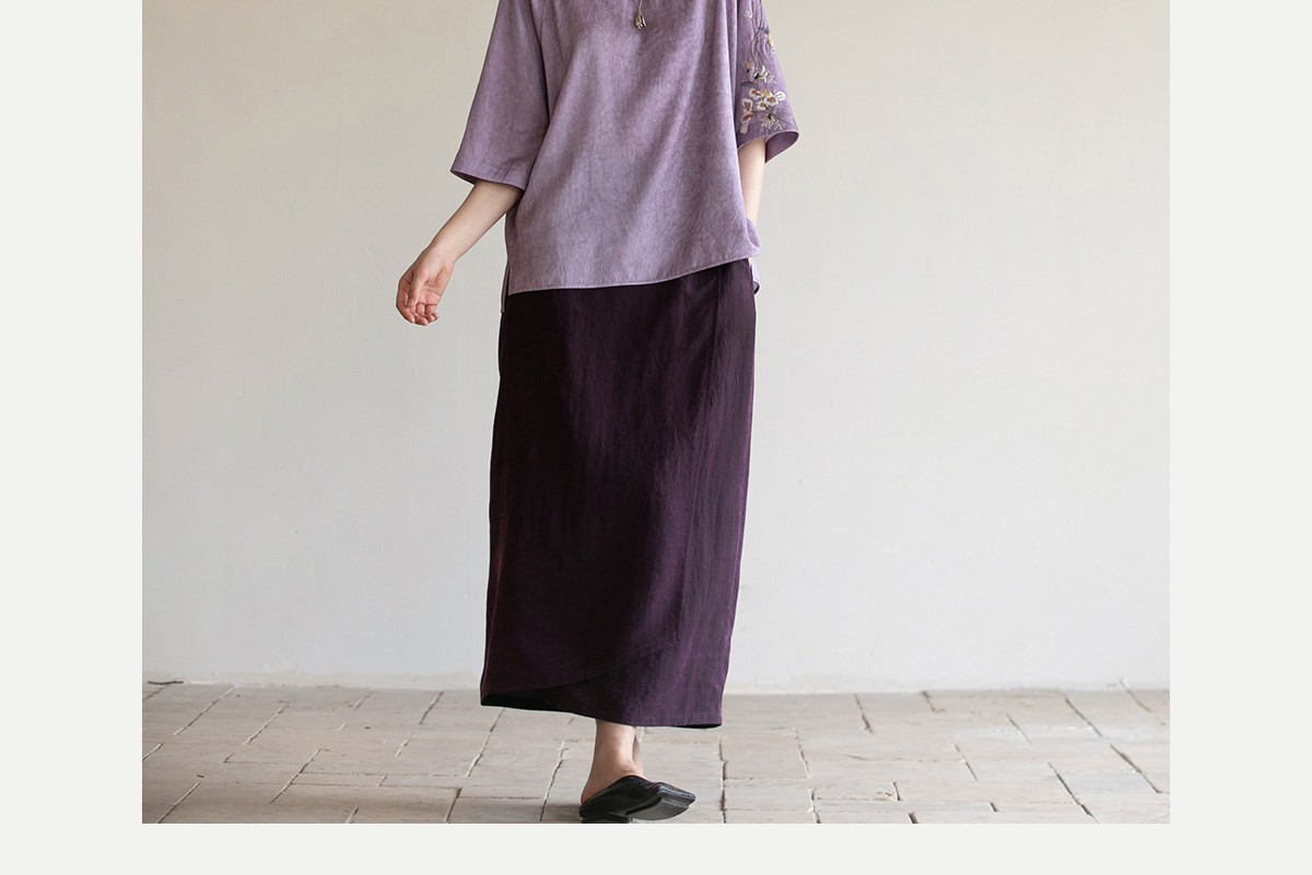 牧衣游原创 18姆米龟裂纹香云纱半裙轻薄复古文艺直筒半裙 初相