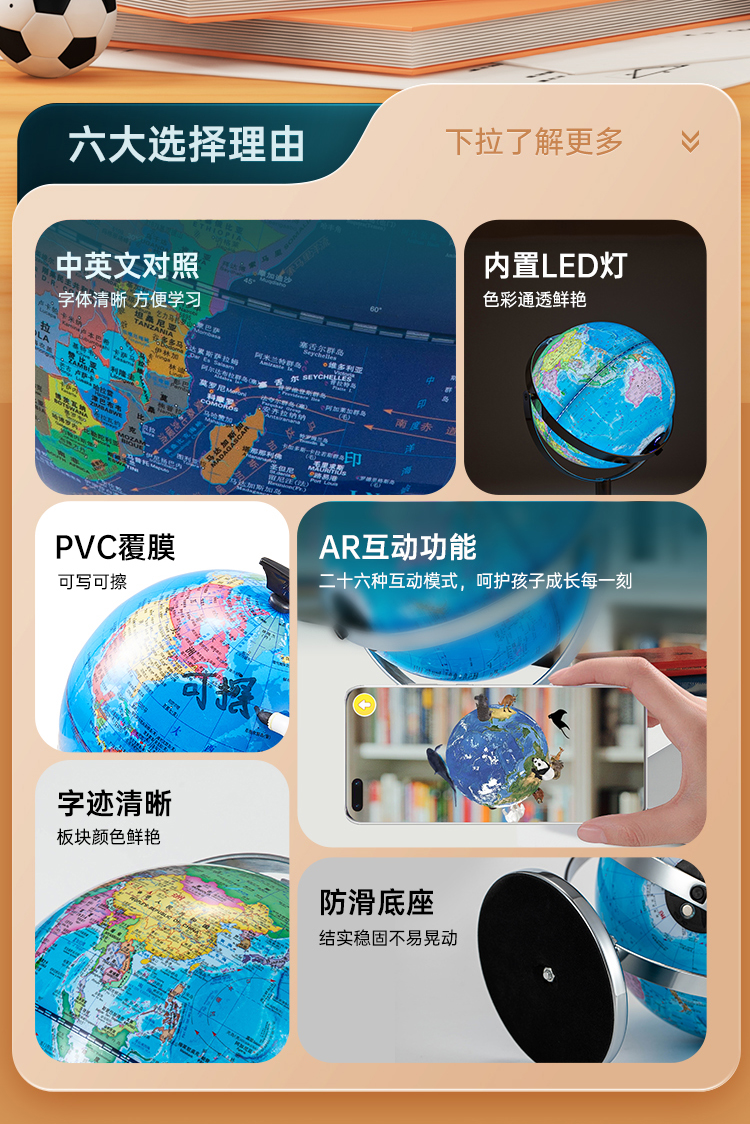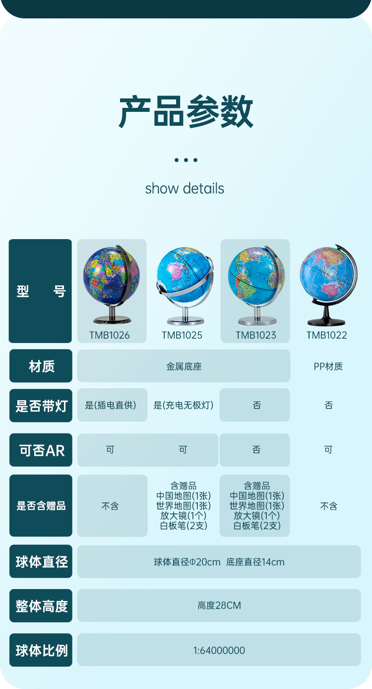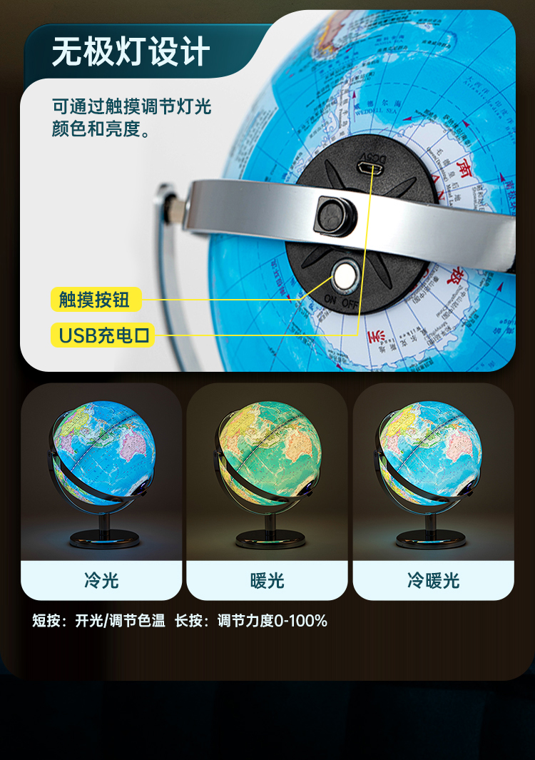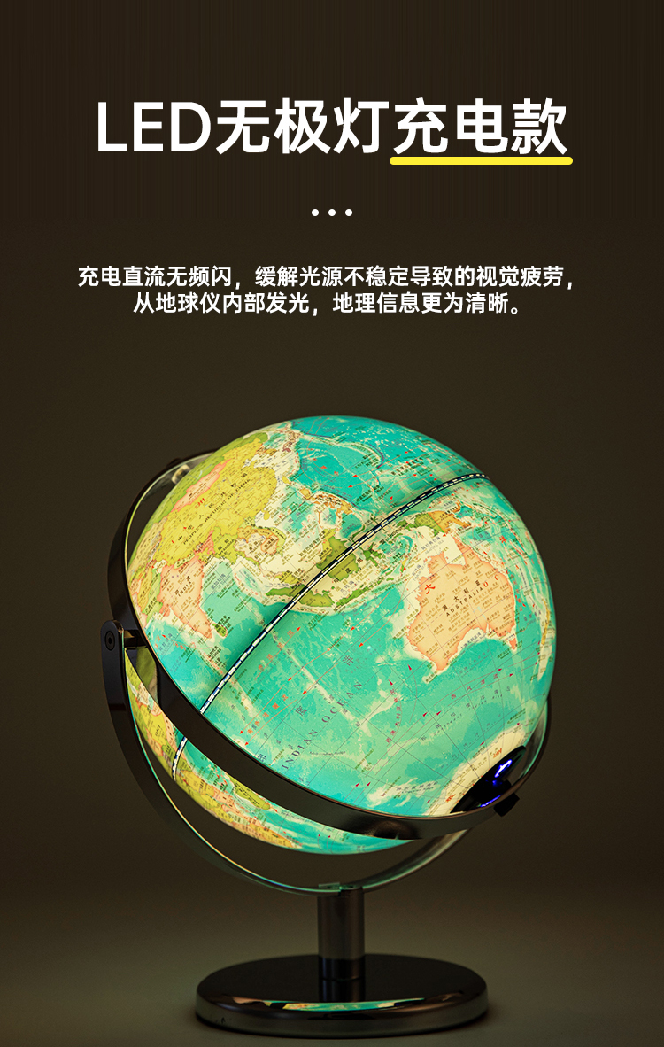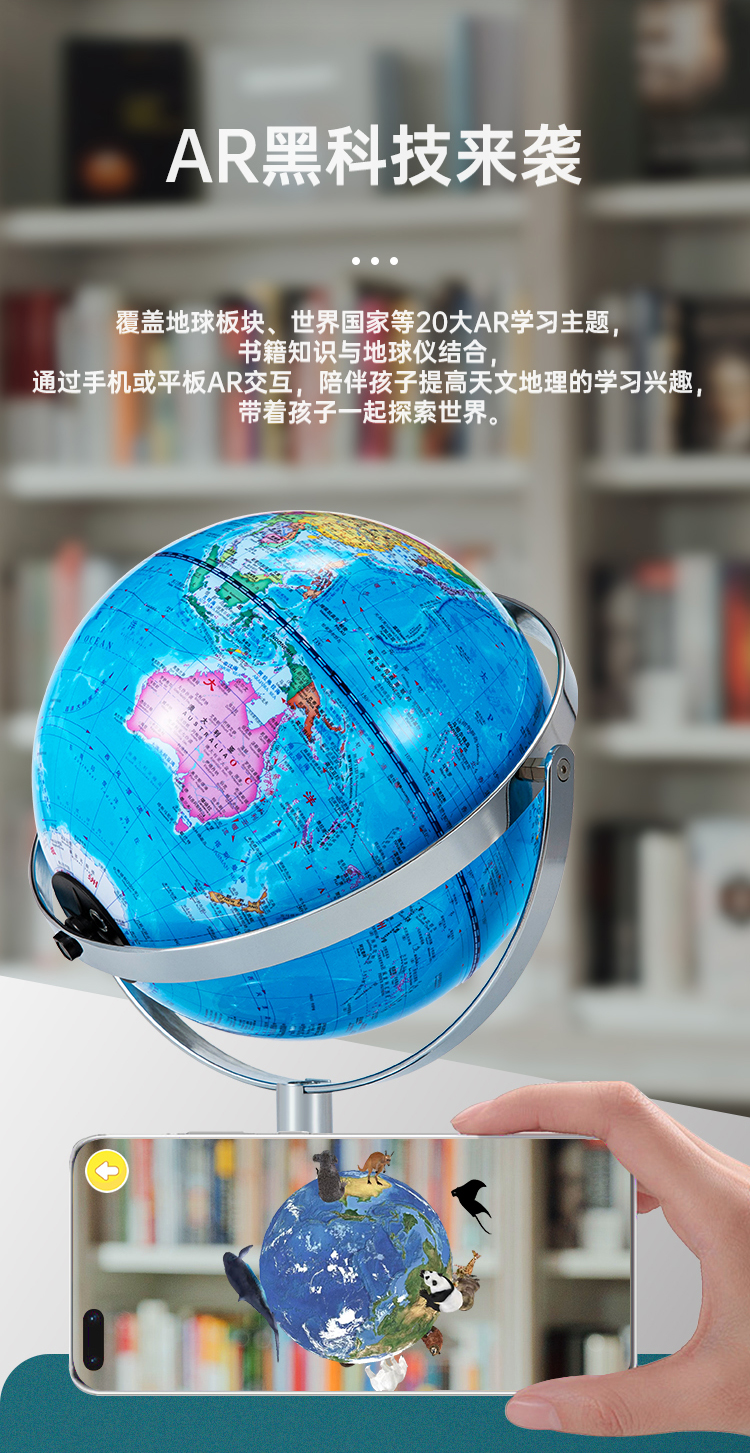 齐心TMB1025万向金属底座地球仪20cm 充电无极灯+AR含赠品发光夜灯地球仪地理教具