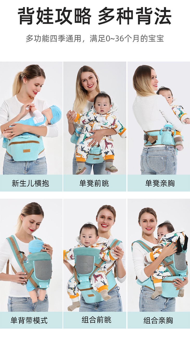 【婴儿背带】婴儿背带四季通用宝宝腰凳背小孩背带单凳抱娃神器三合一款