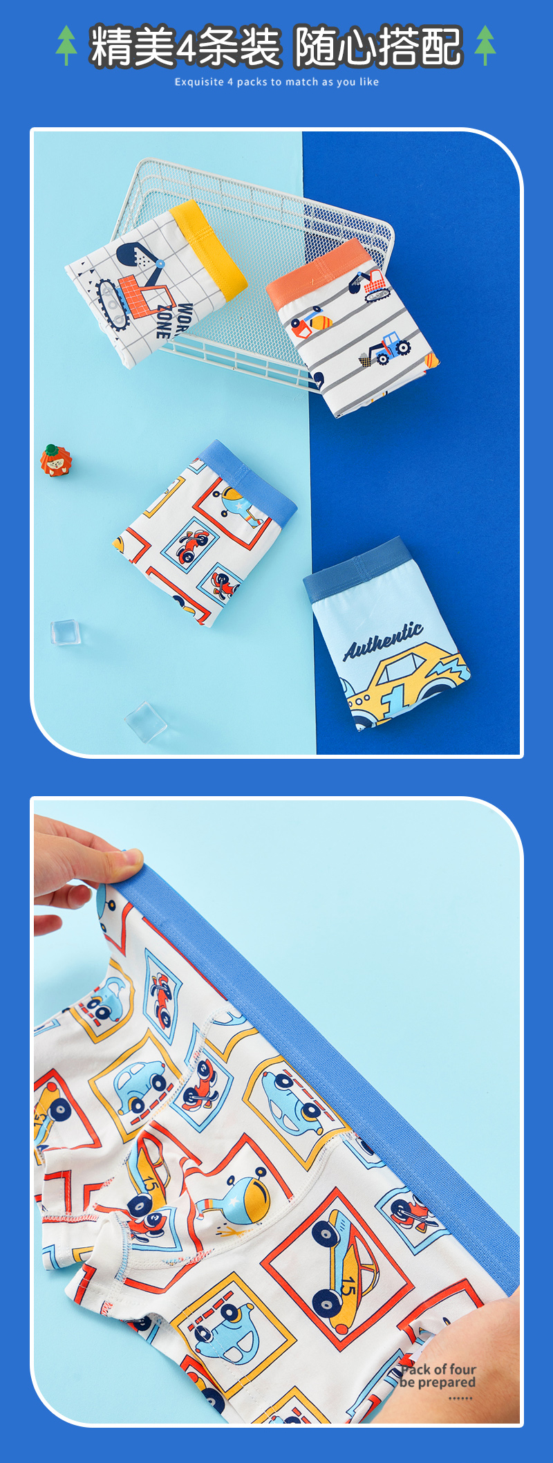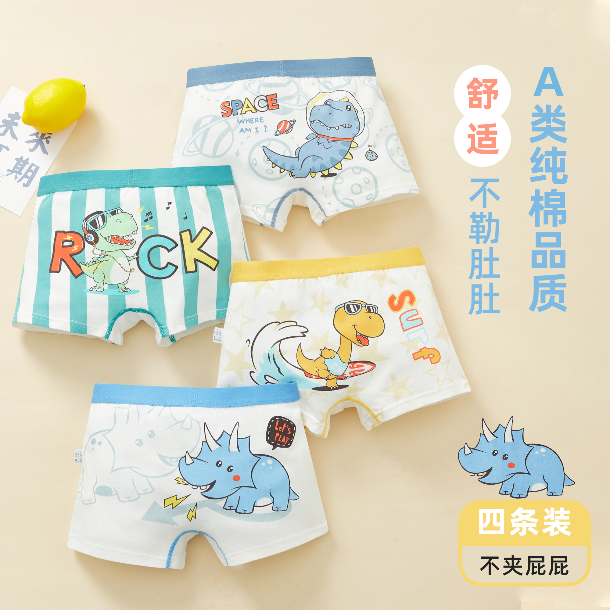 【39.9/4条装】哆沫思男女童纯棉内裤儿童A类yi菌三角女孩宝宝中大童四平角裤头不夹pp聚