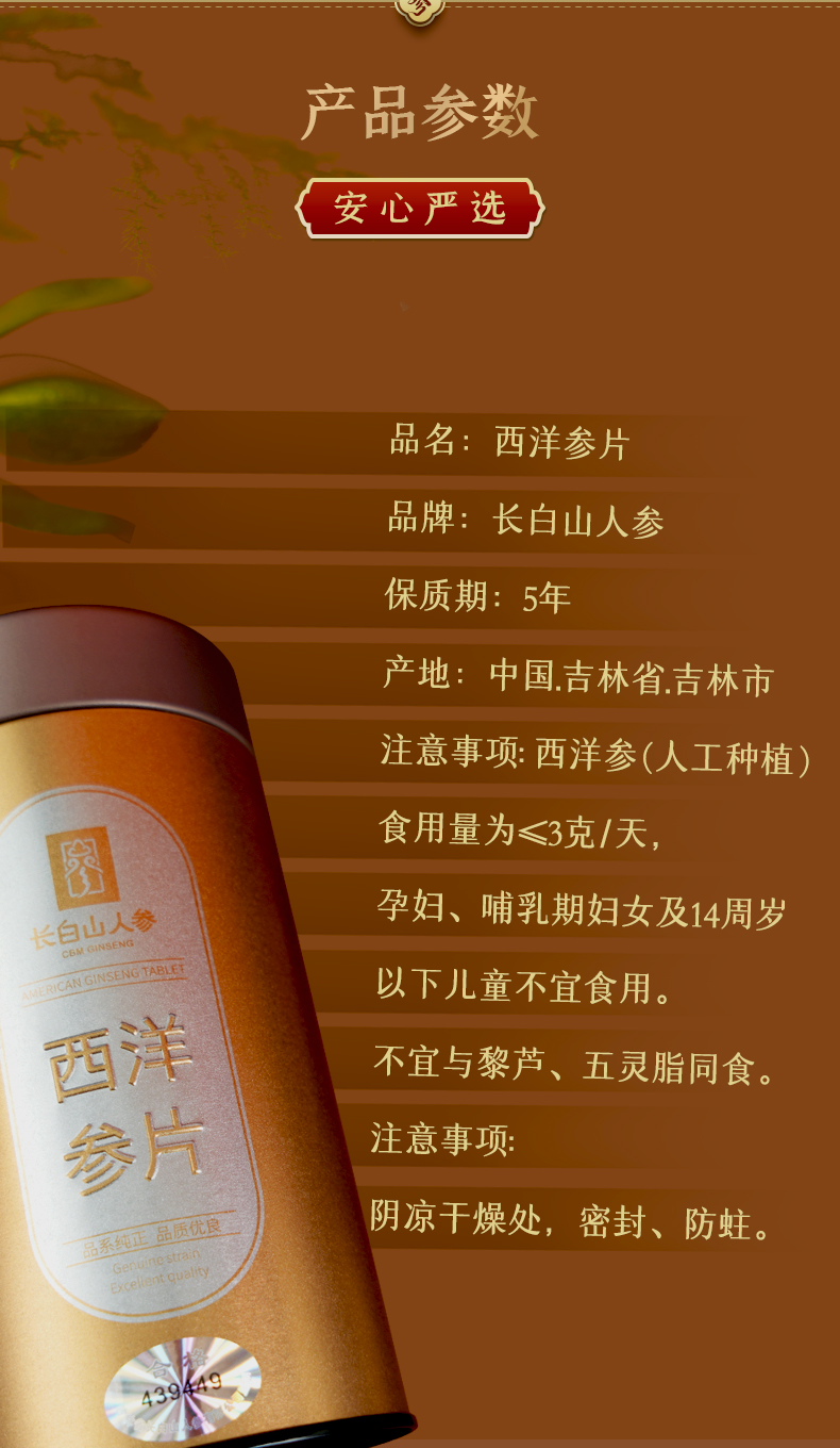 热售【西洋参片桶装】长白山人参西洋参片桶100g