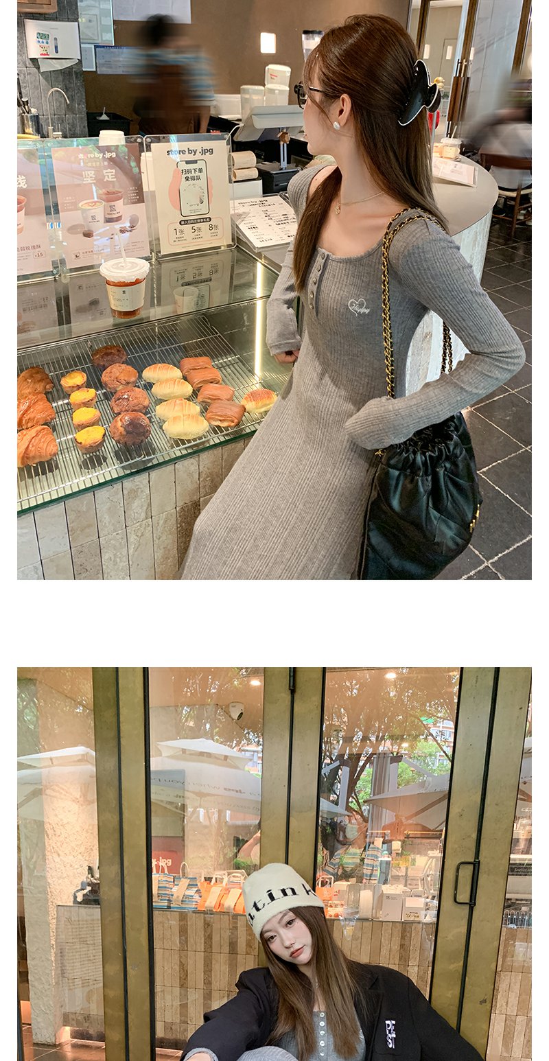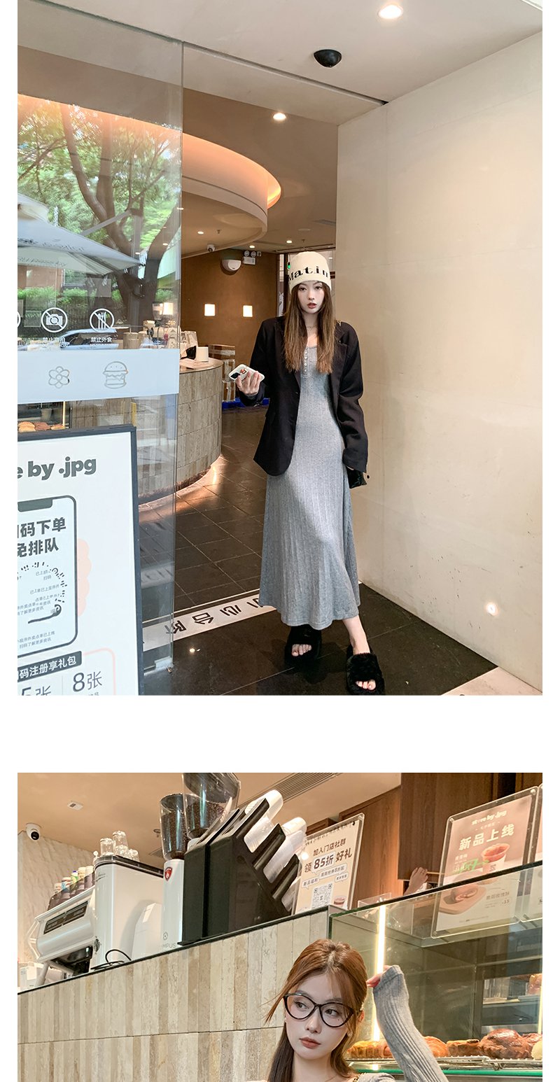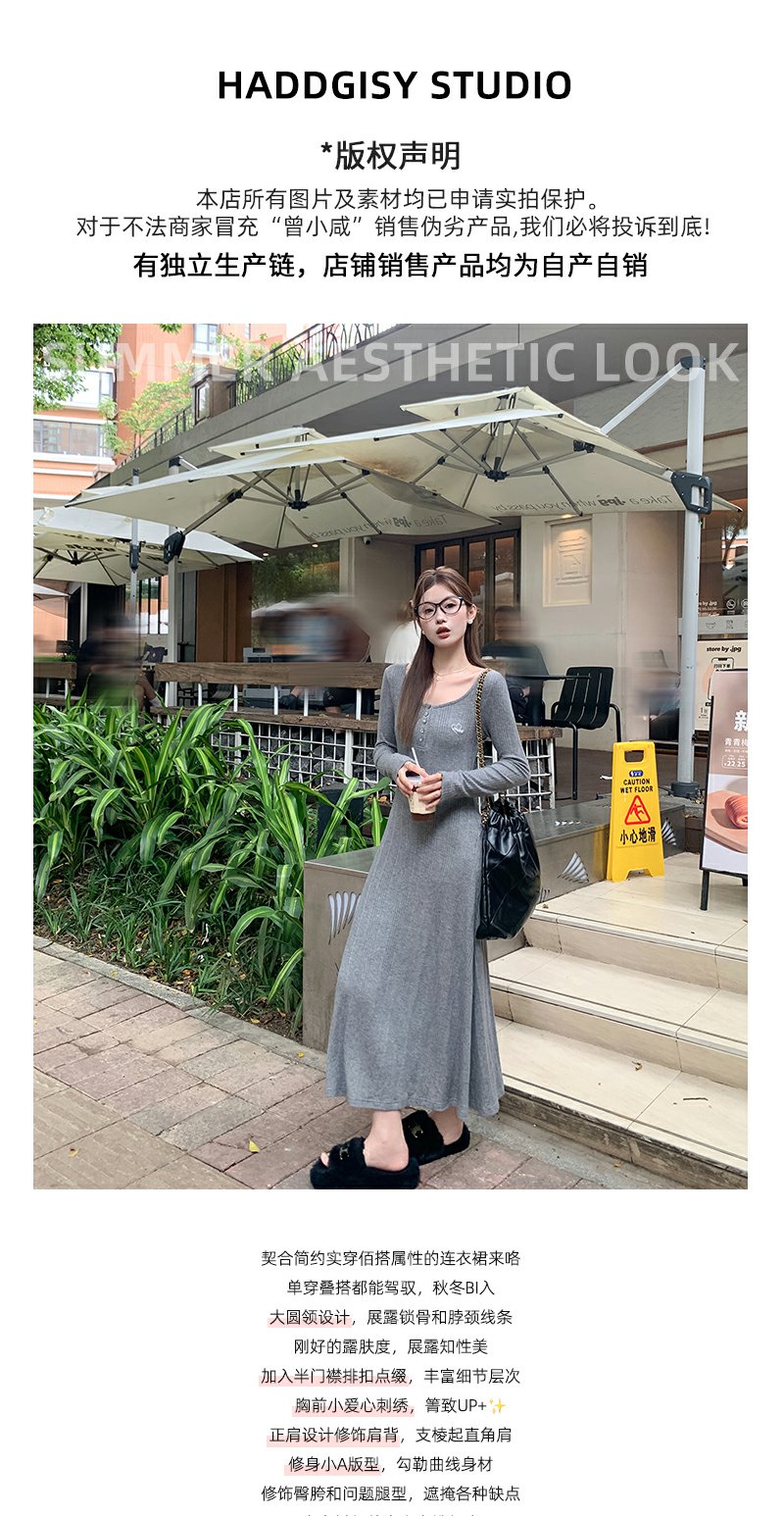 【169元任选2件】韩系氛围感穿搭灰色修身连衣裙