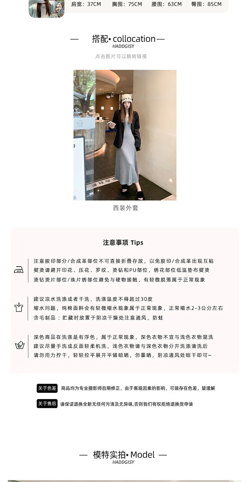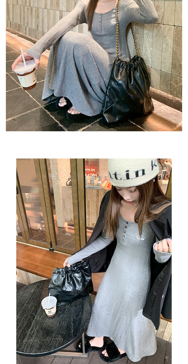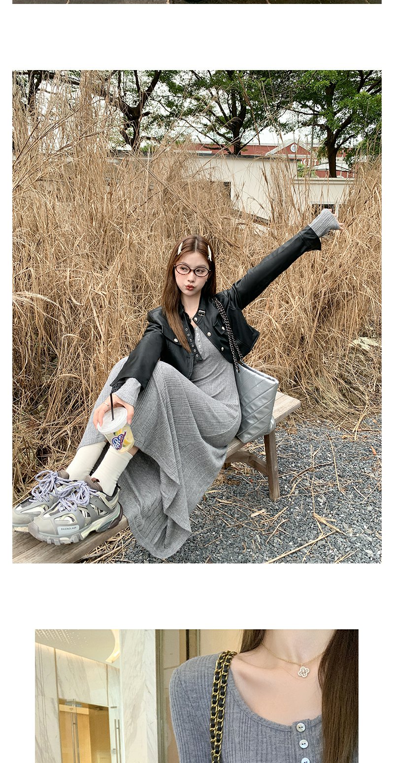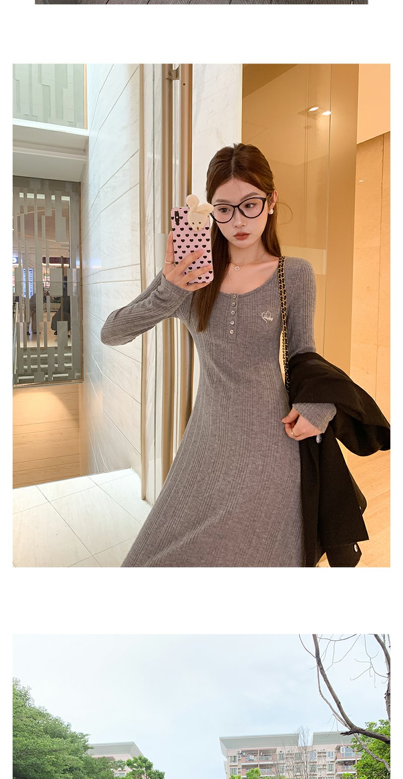 【169元任选2件】韩系氛围感穿搭灰色修身连衣裙