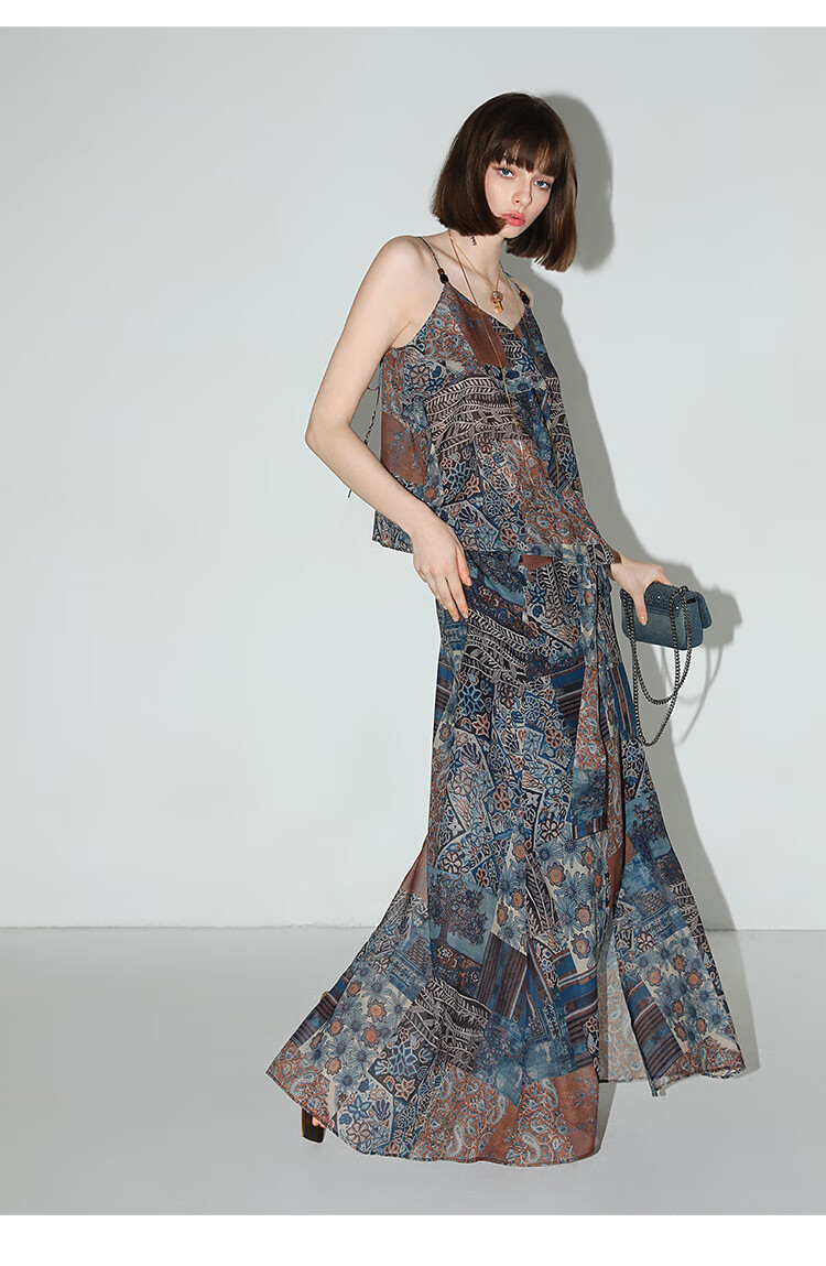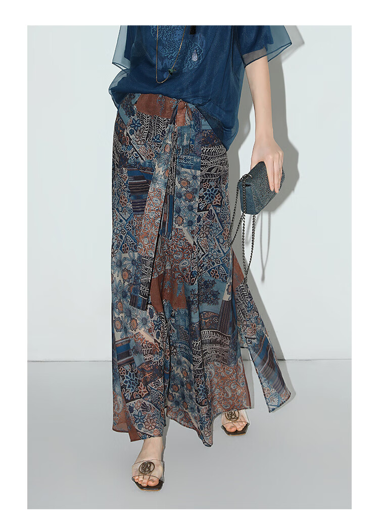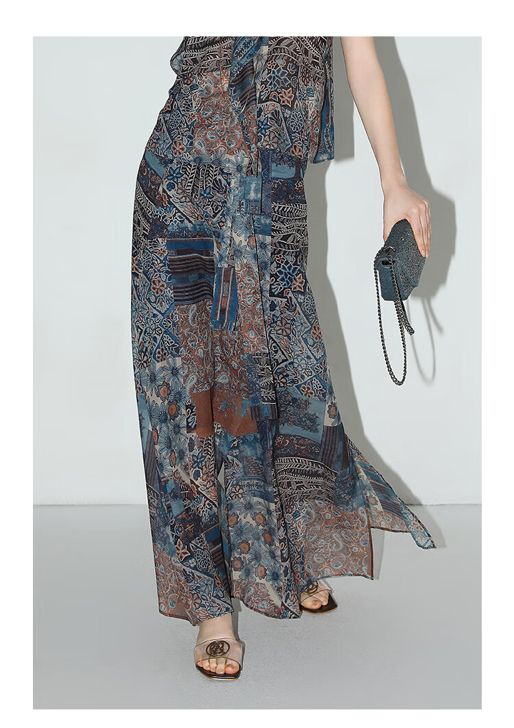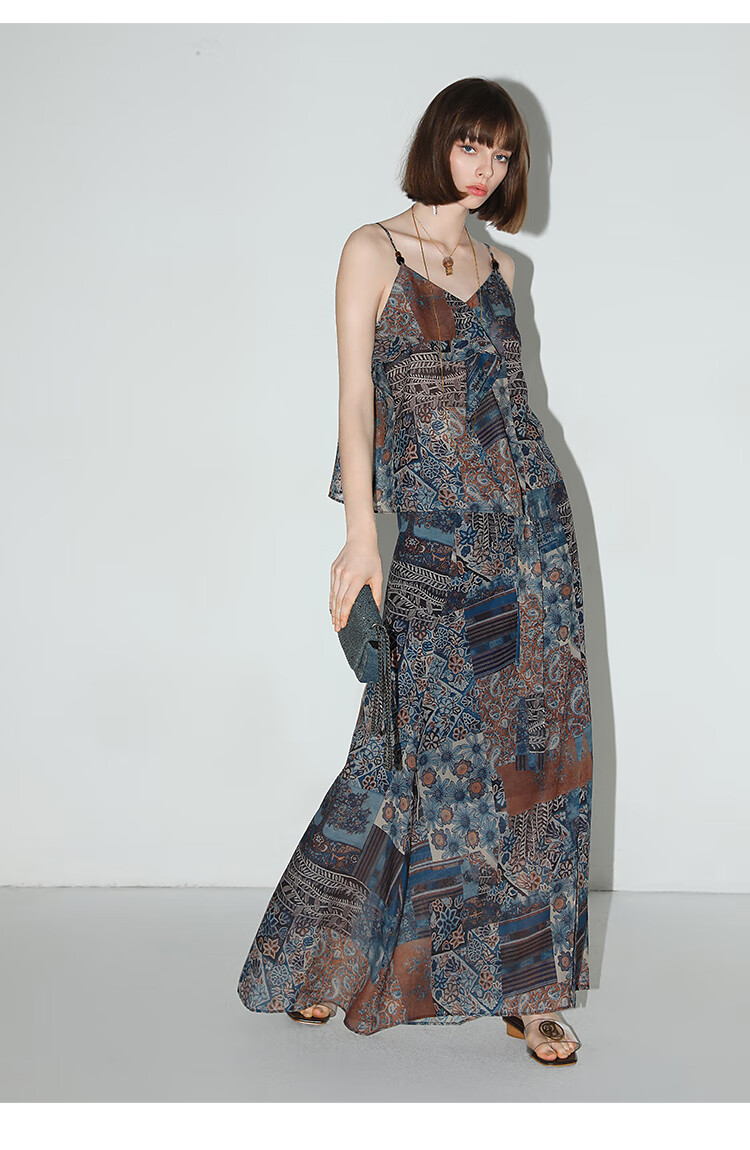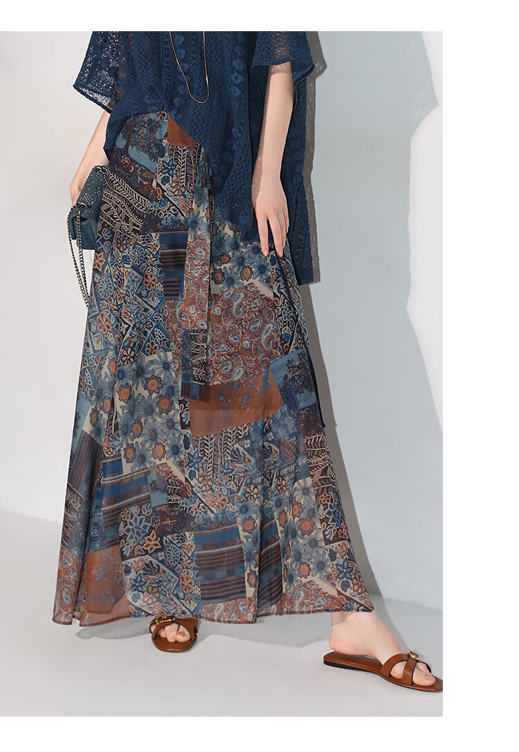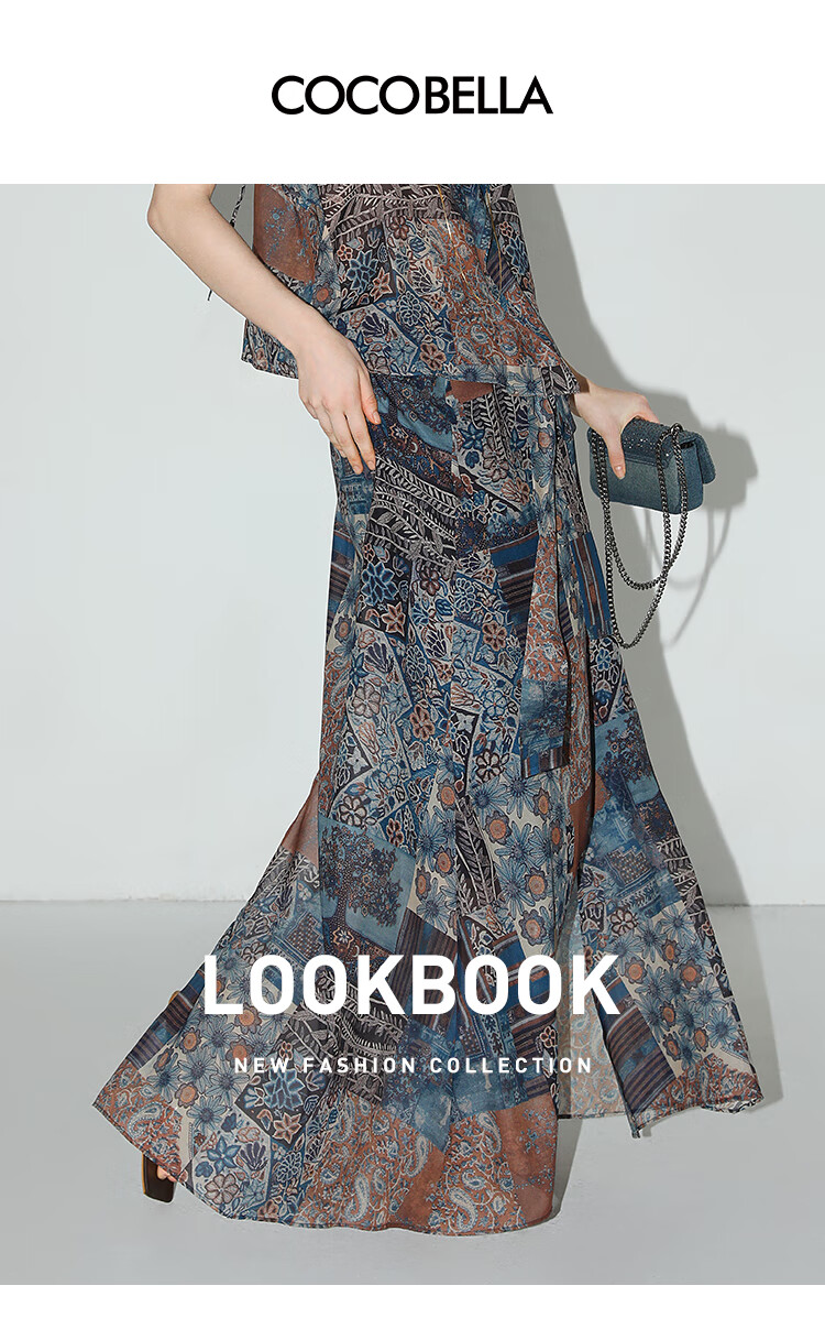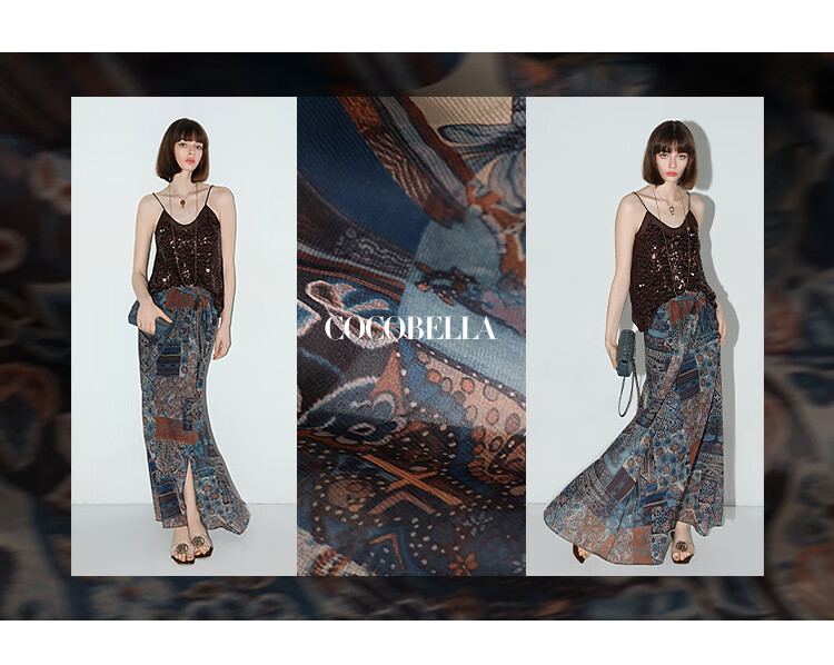 COCOBELLA民族风印花轻盈绒雪纺半身裙度假风飘逸长裙HS0045