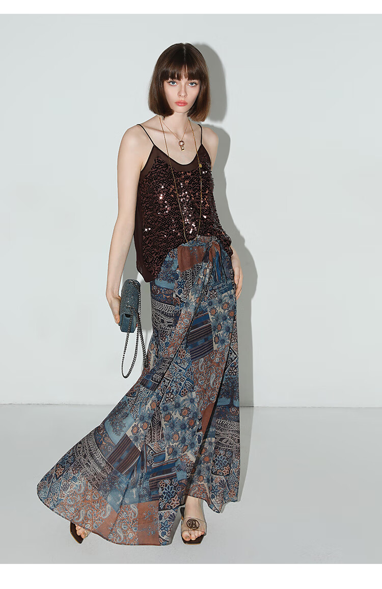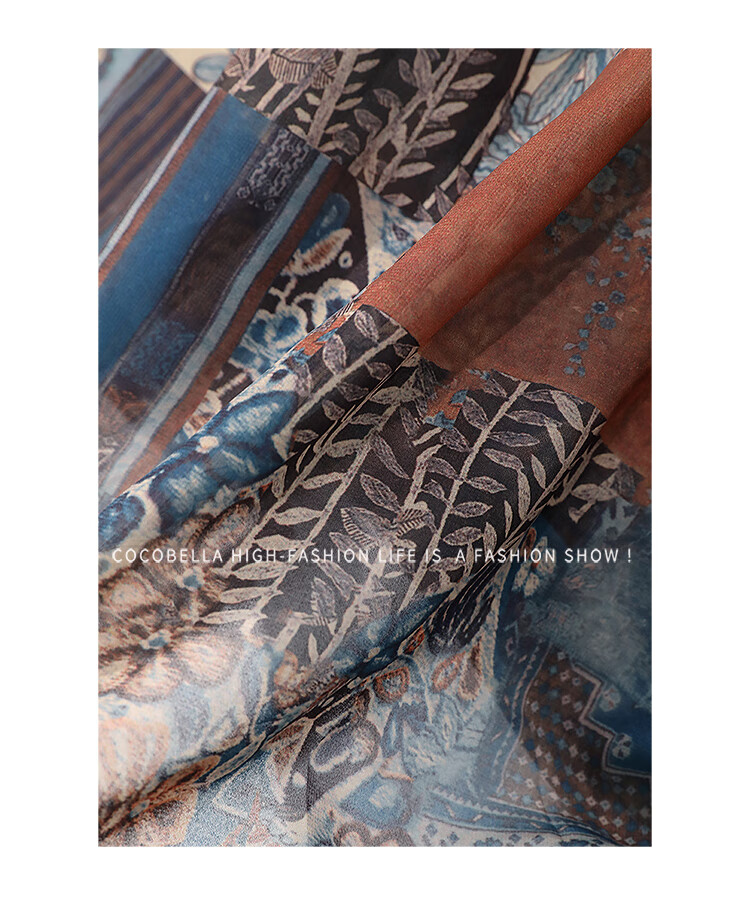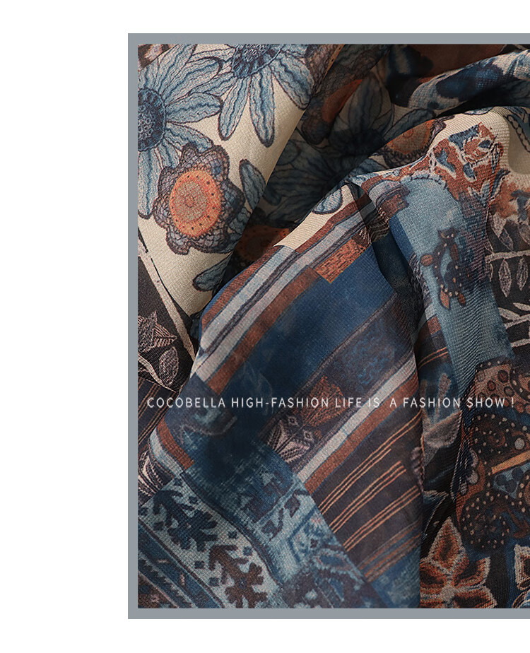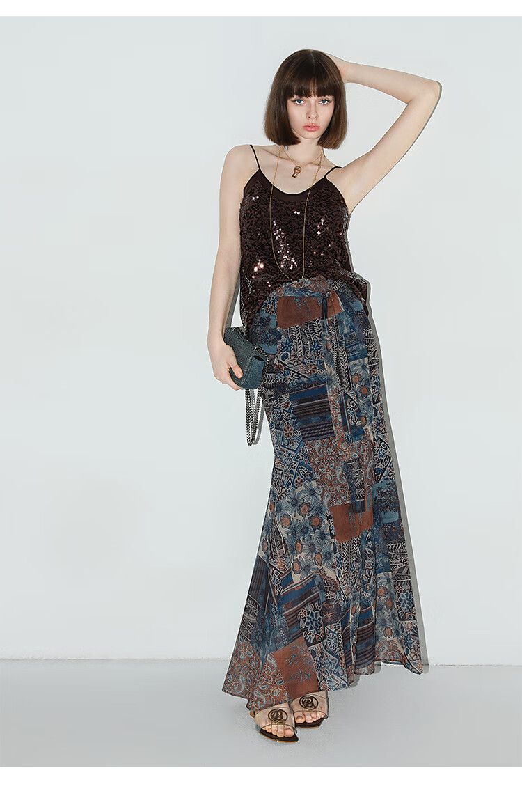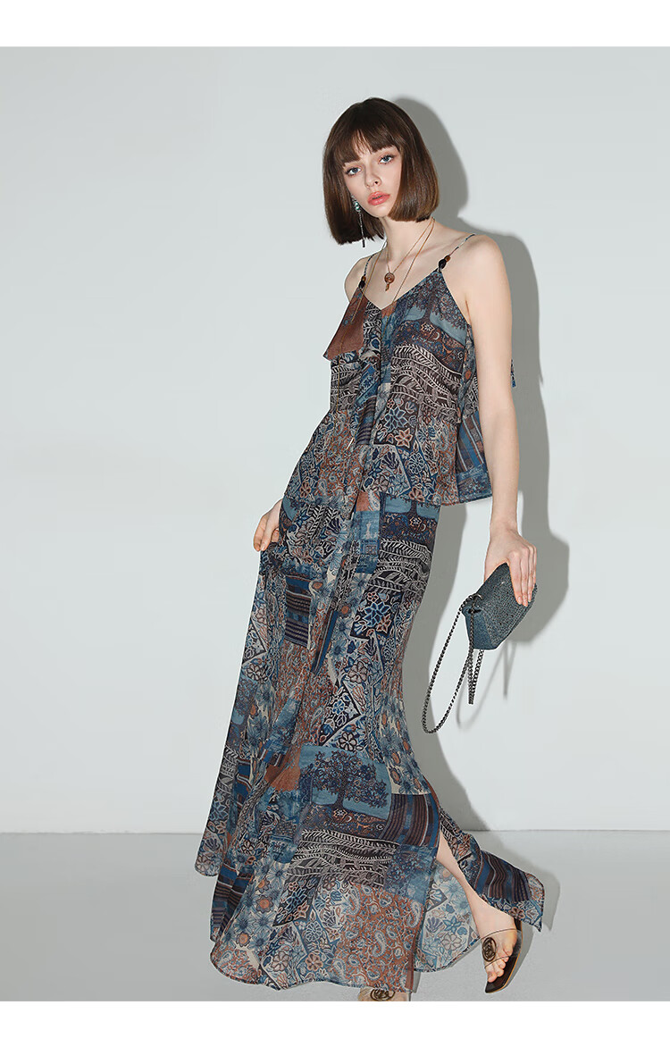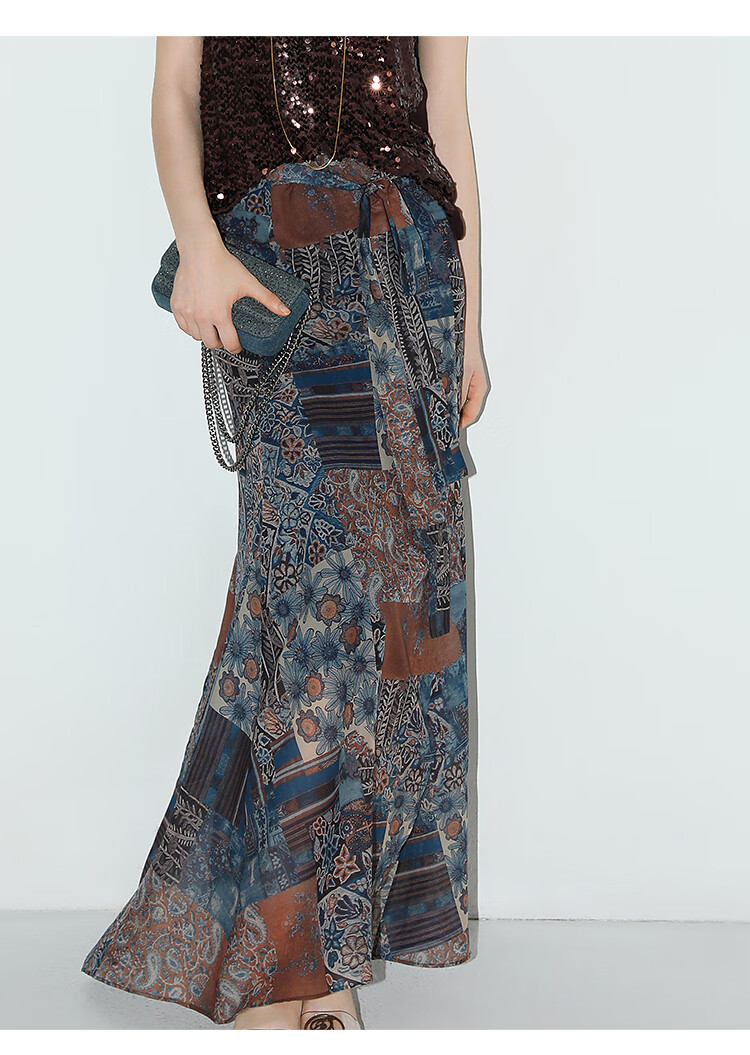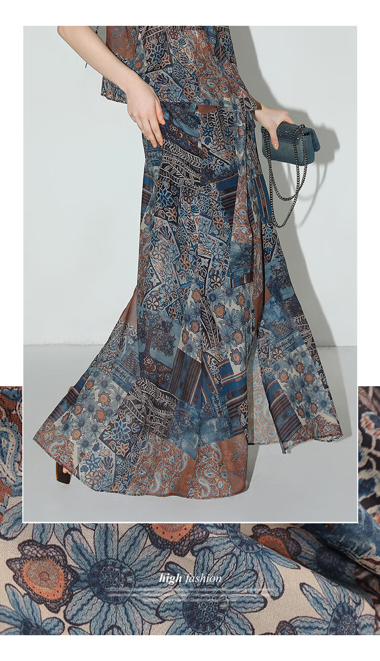 COCOBELLA民族风印花轻盈绒雪纺半身裙度假风飘逸长裙HS0045