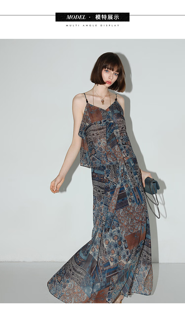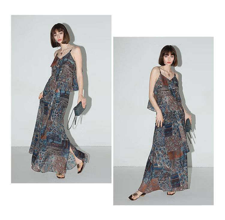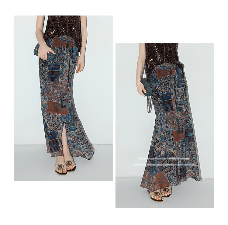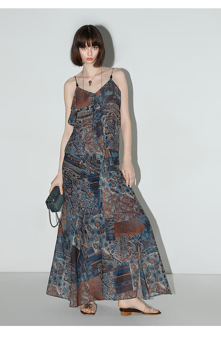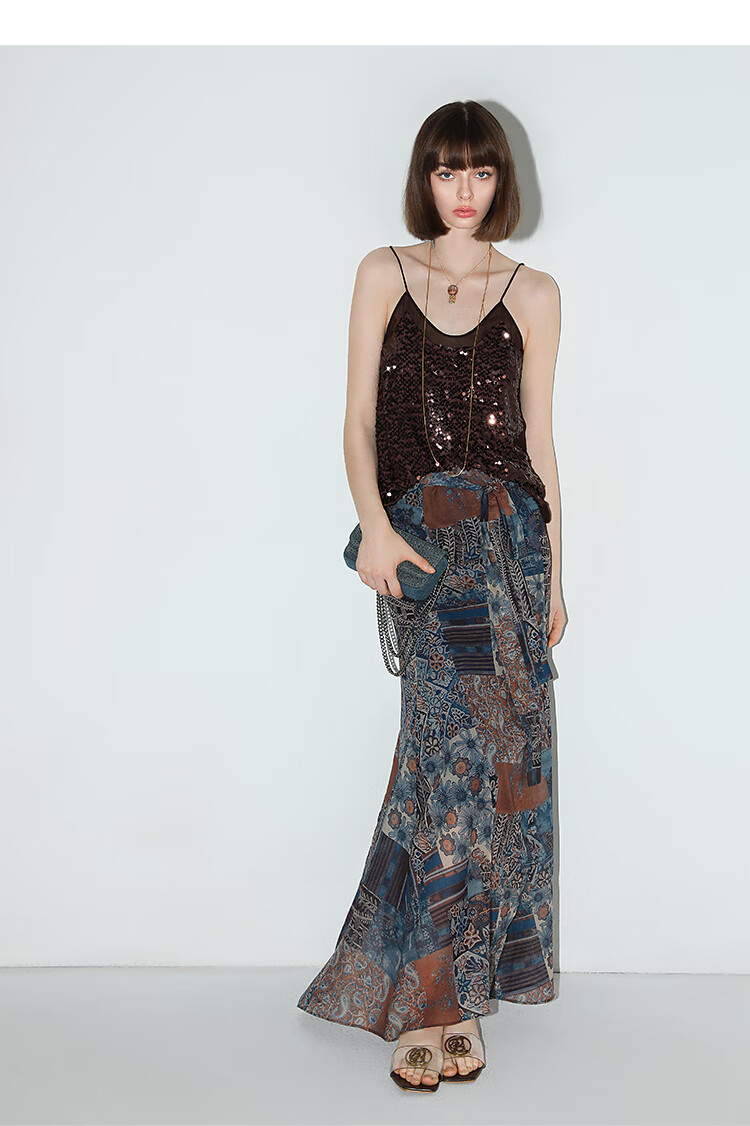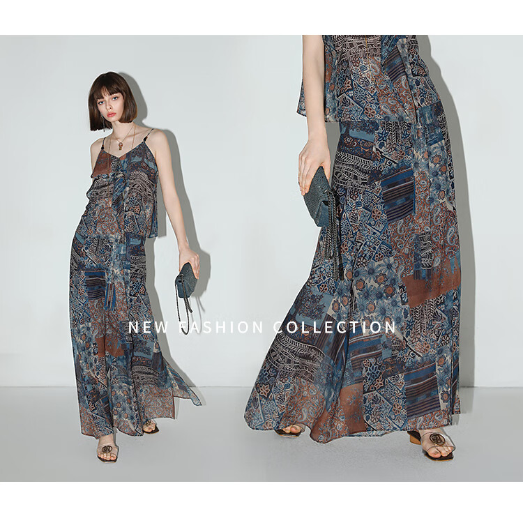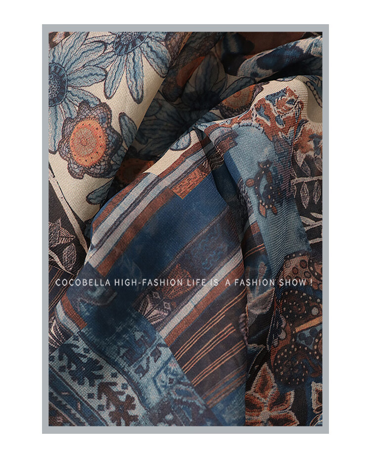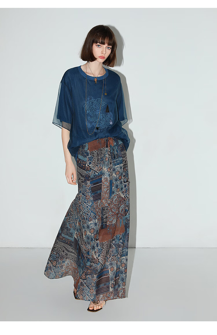 COCOBELLA民族风印花轻盈绒雪纺半身裙度假风飘逸长裙HS0045