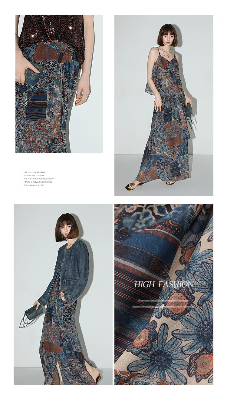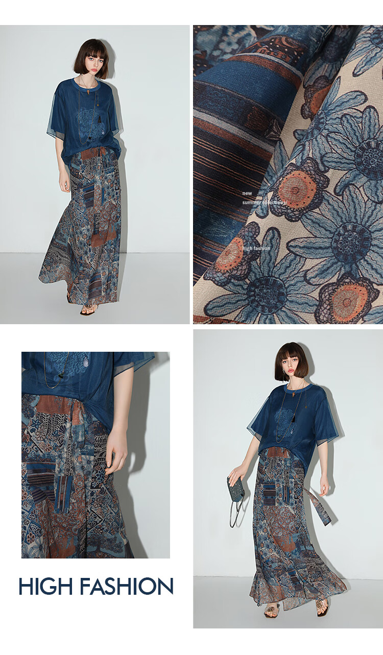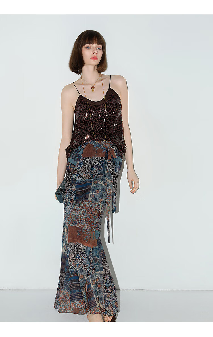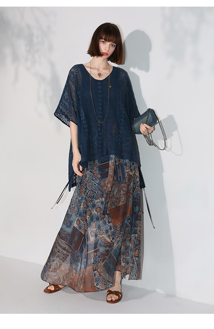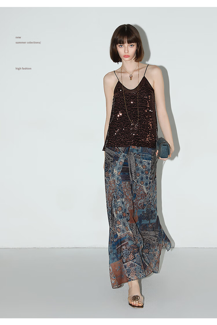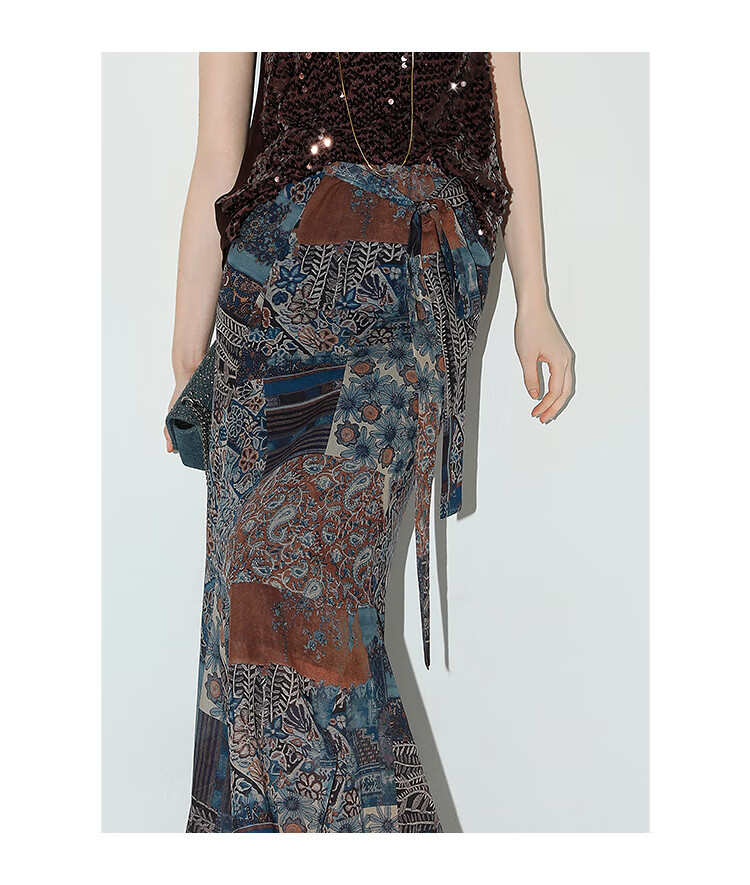 COCOBELLA民族风印花轻盈绒雪纺半身裙度假风飘逸长裙HS0045