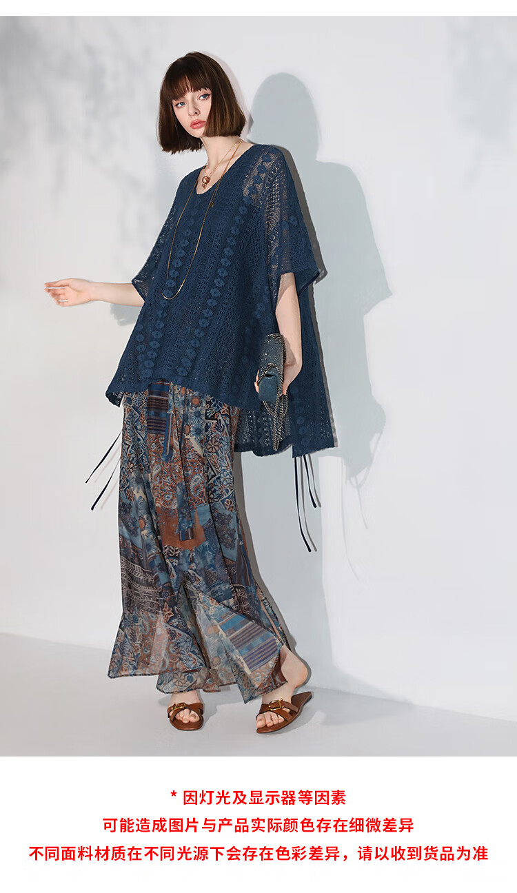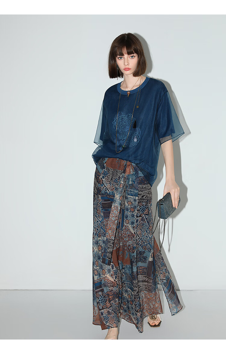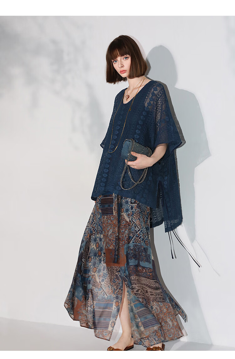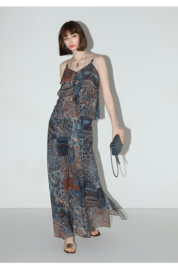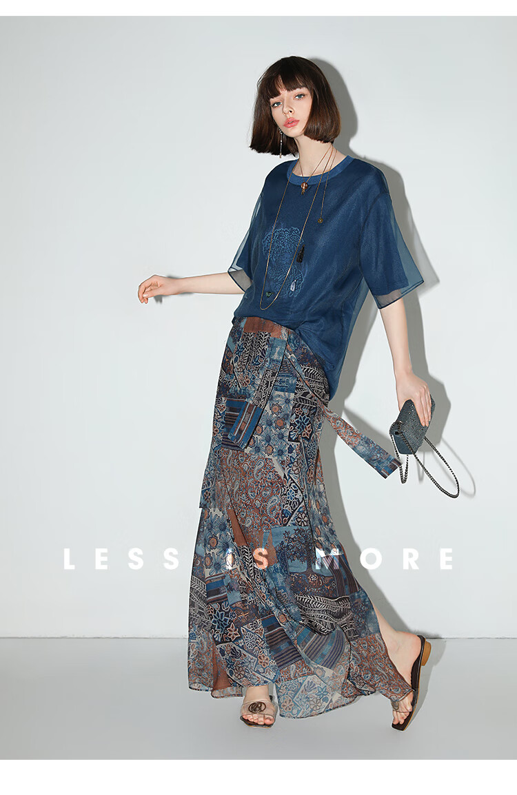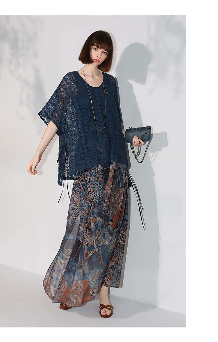 COCOBELLA民族风印花轻盈绒雪纺半身裙度假风飘逸长裙HS0045