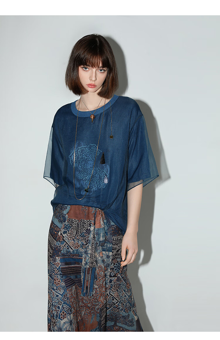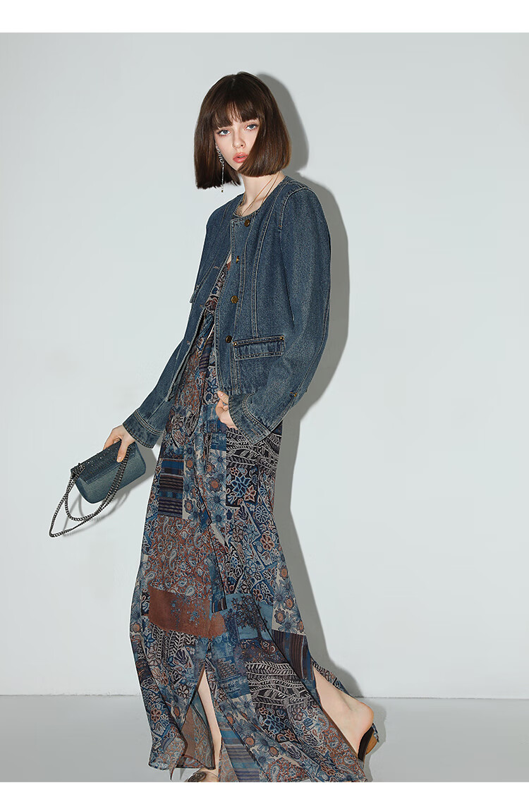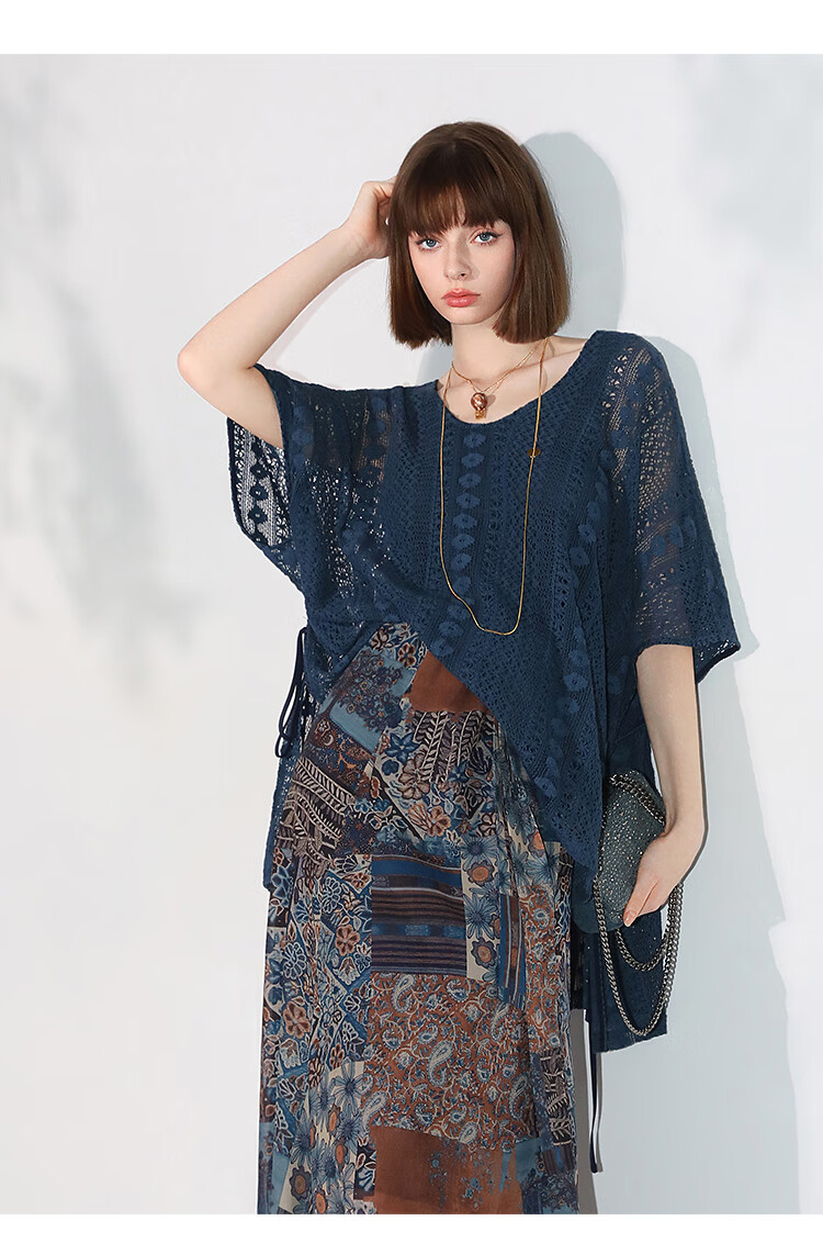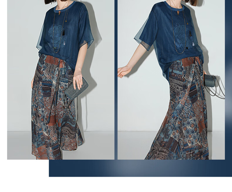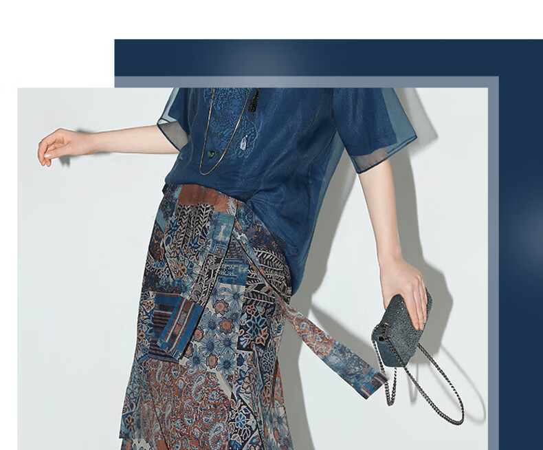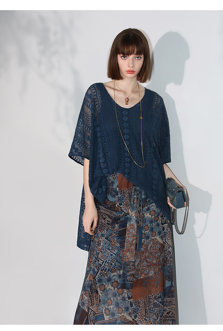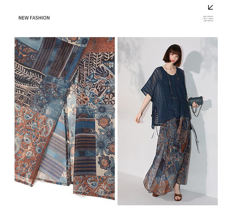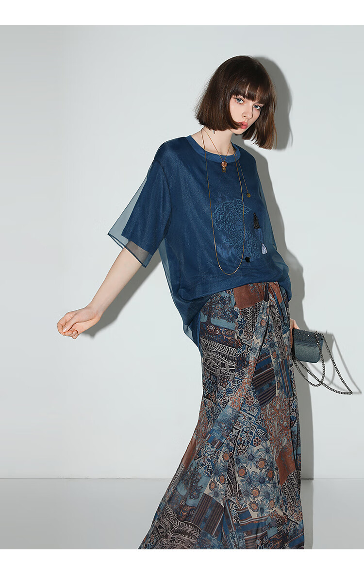 COCOBELLA民族风印花轻盈绒雪纺半身裙度假风飘逸长裙HS0045