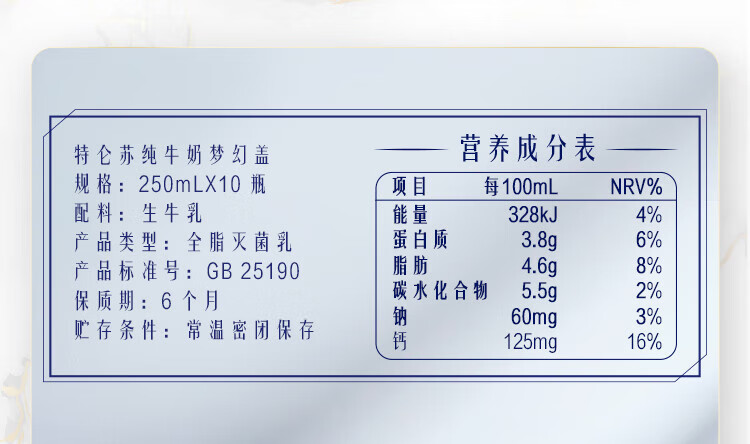特仑苏纯牛奶(梦幻盖)250ml*10
