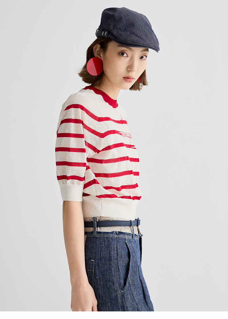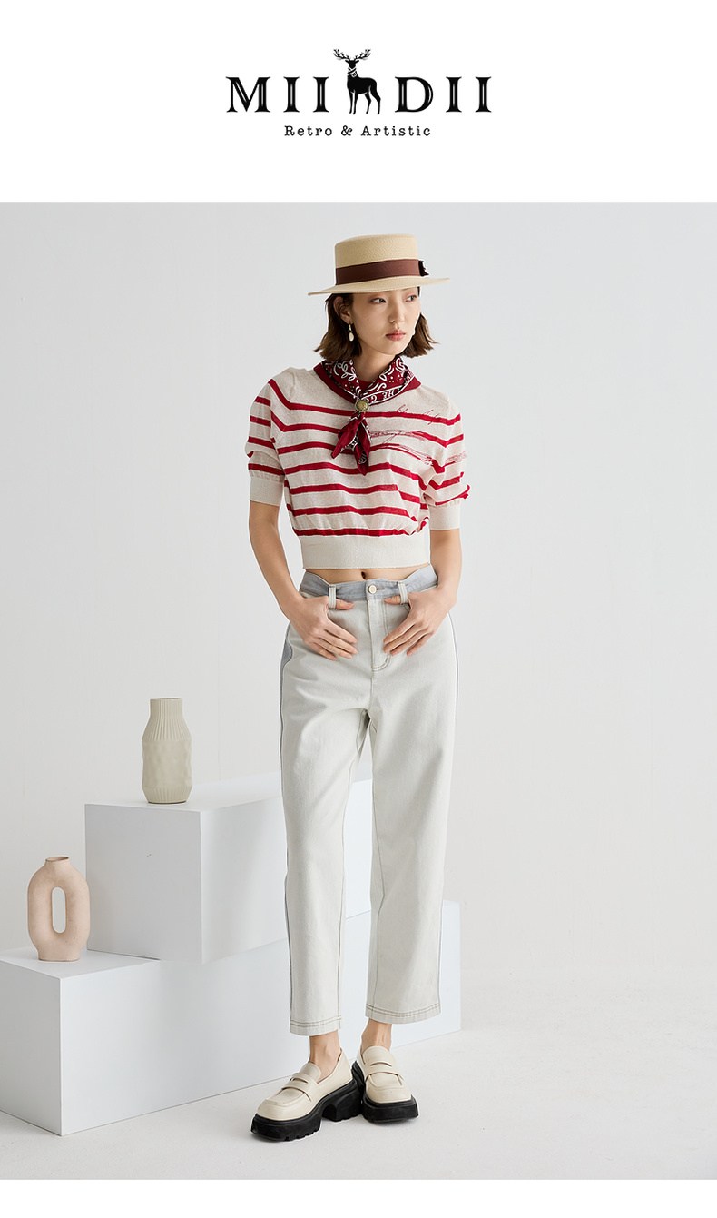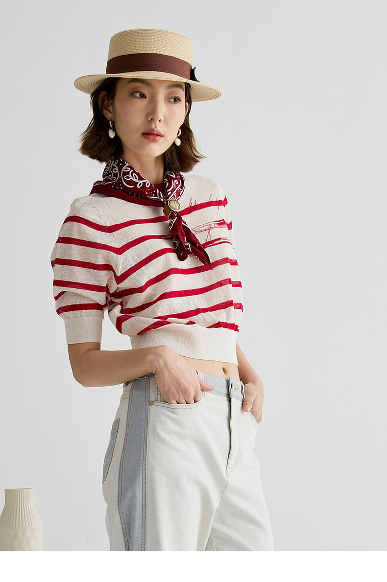 谜底针织衫短袖女2025夏季新品复古文艺宽松T型短毛衣252MZ0883
