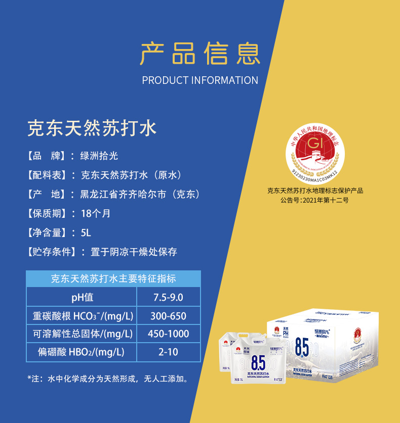 顺丰包邮【自营】绿洲时光克东天然苏打水 5L*2袋/箱 NM