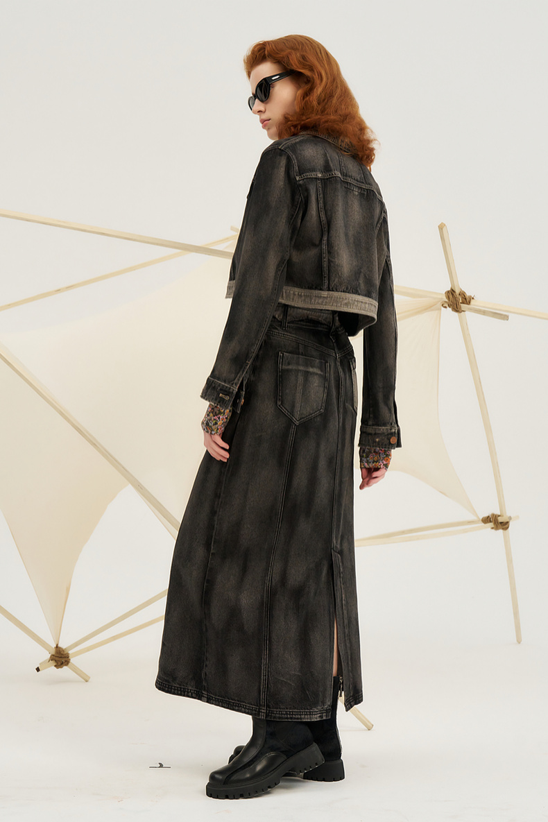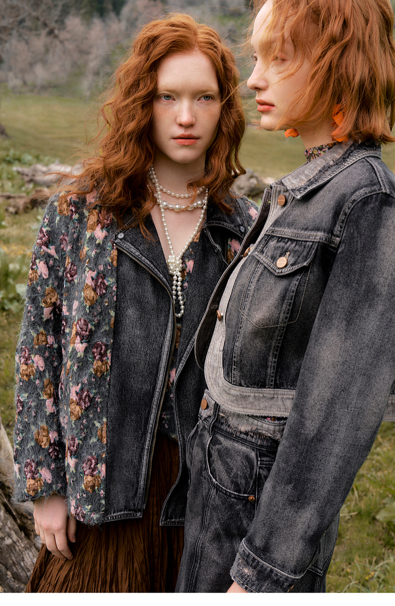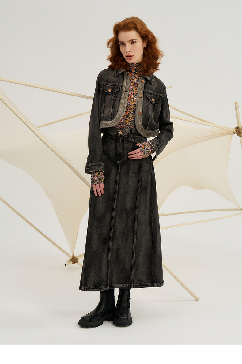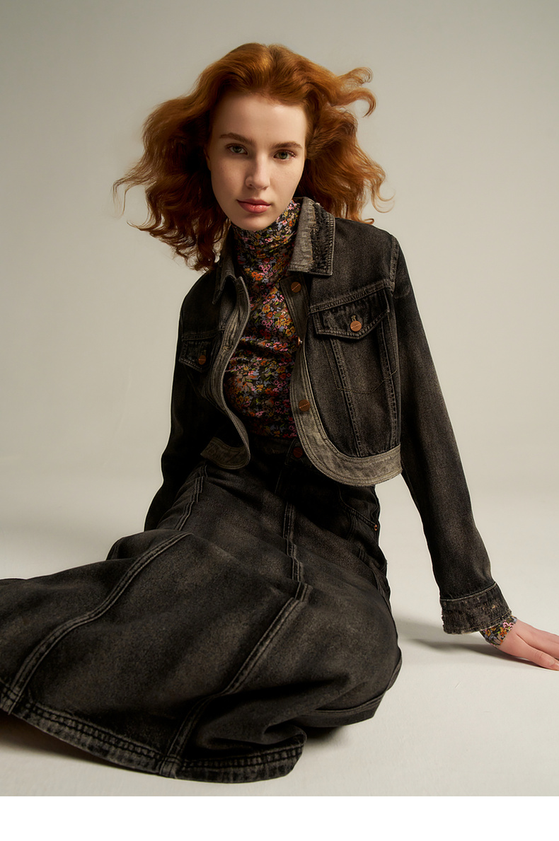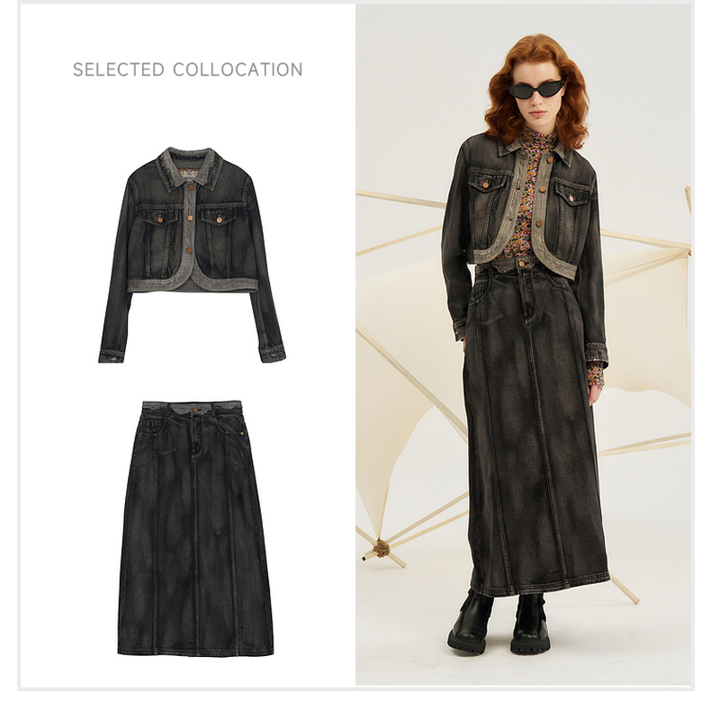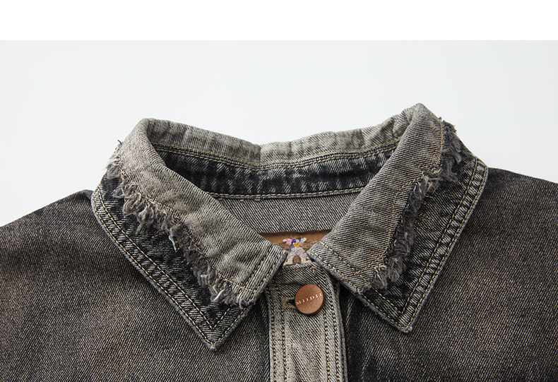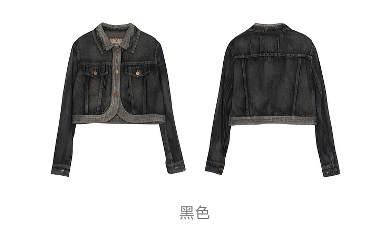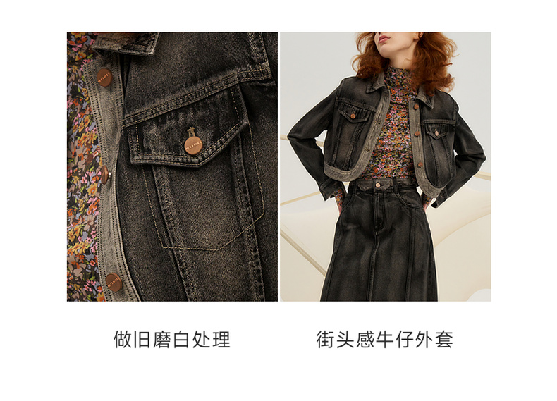 谜底牛仔外套女2024秋季新品复古风翻领短款水洗牛仔服243MW1049