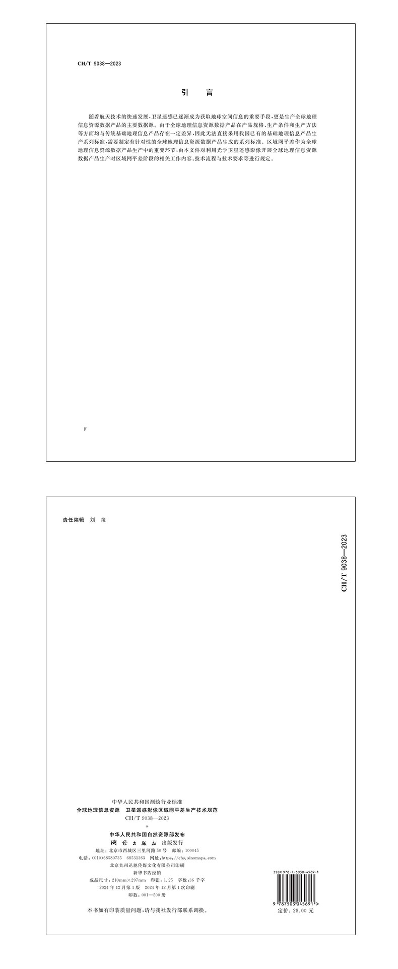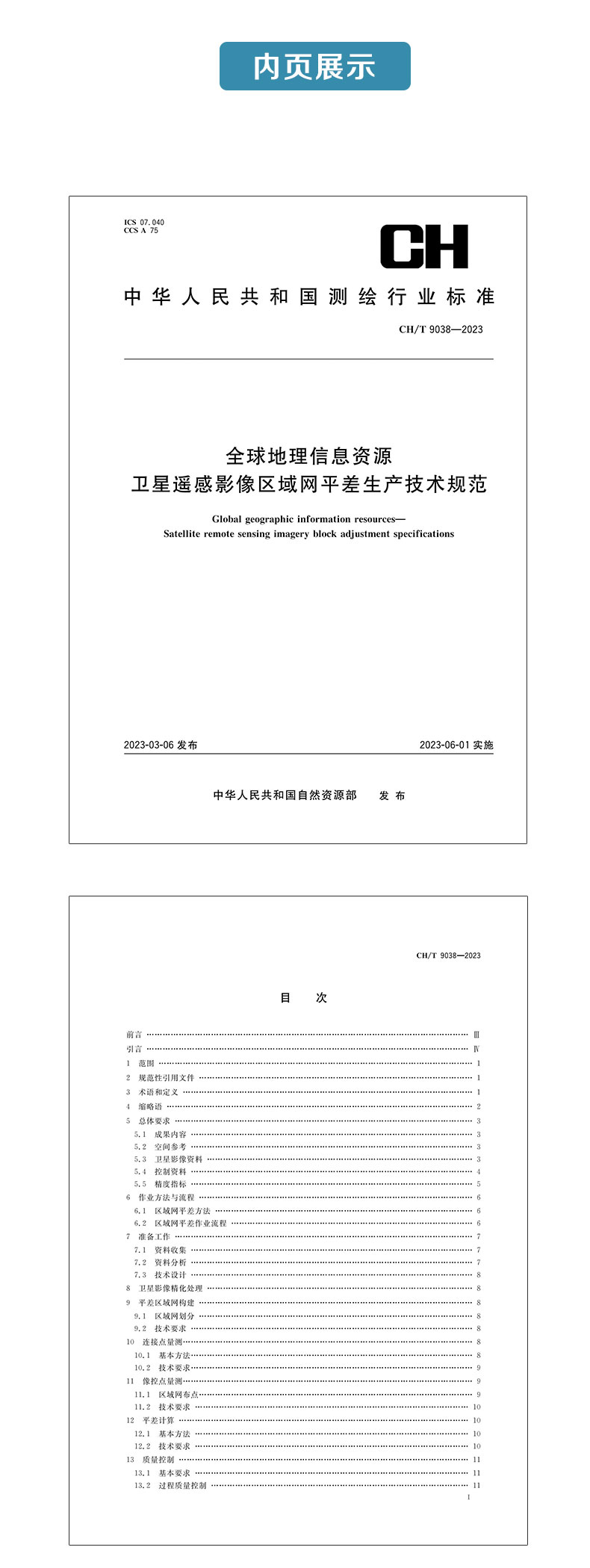 测绘行业标准·全球地理信息资源 卫星遥感影像区域网平差生产技术规范——CHT 9038—2023