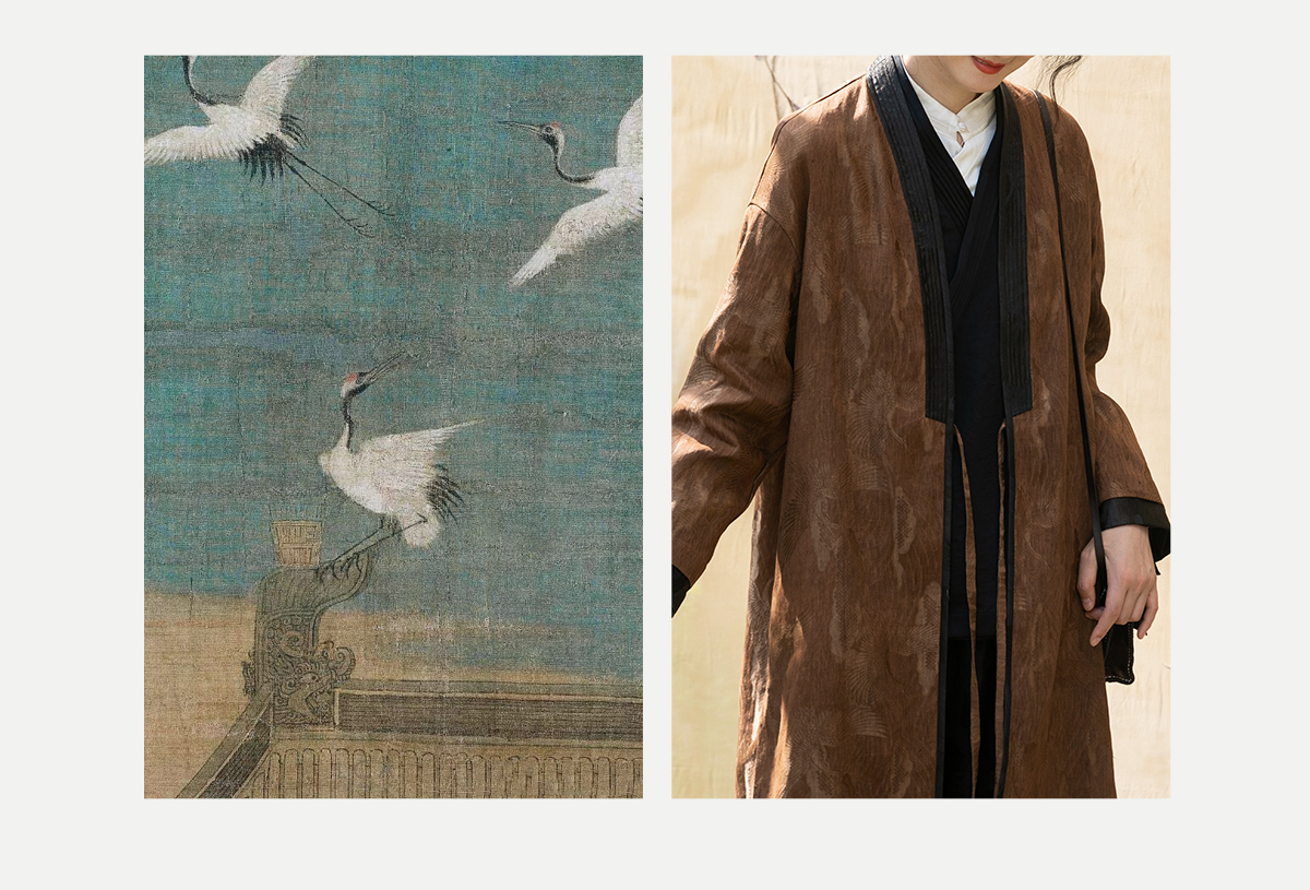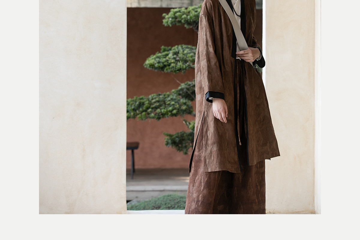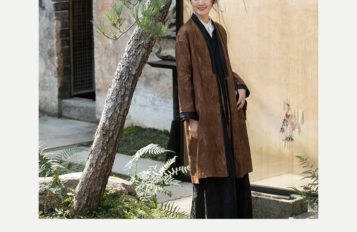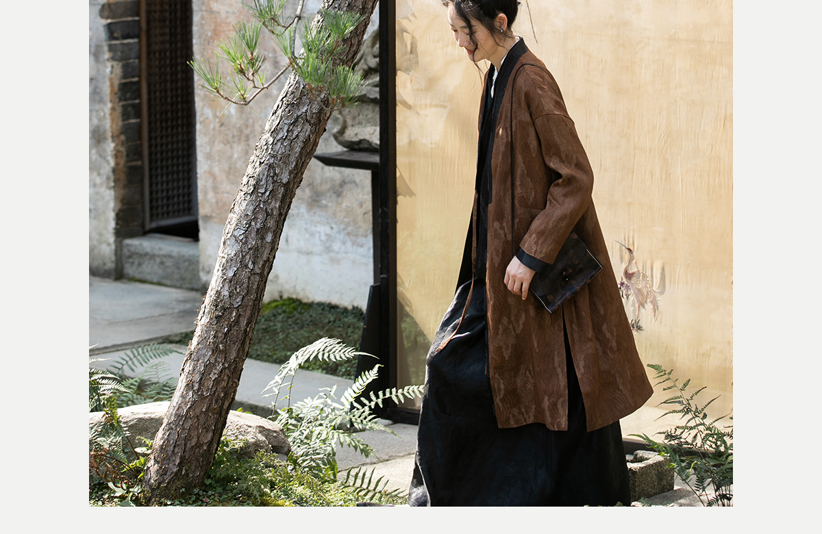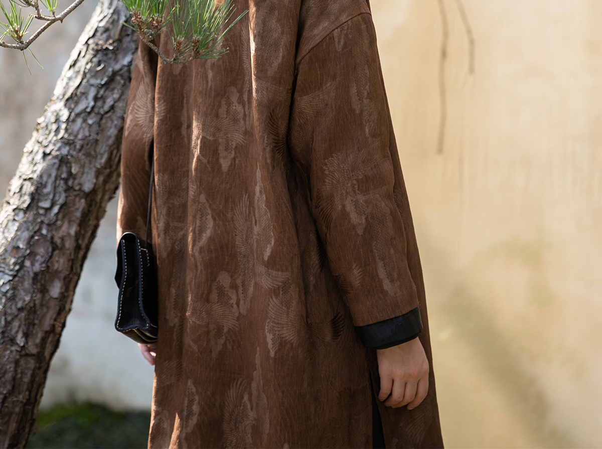 牧衣游原创 重磅鹤提花香云纱长外套新款禅意复古宽松开衫 满鹤楼