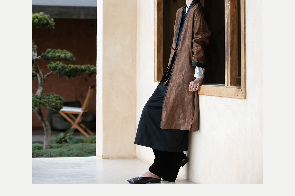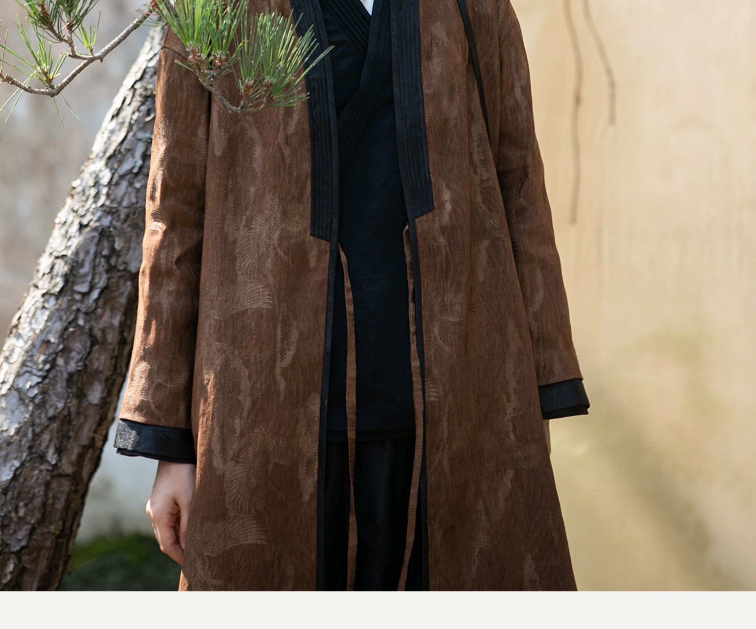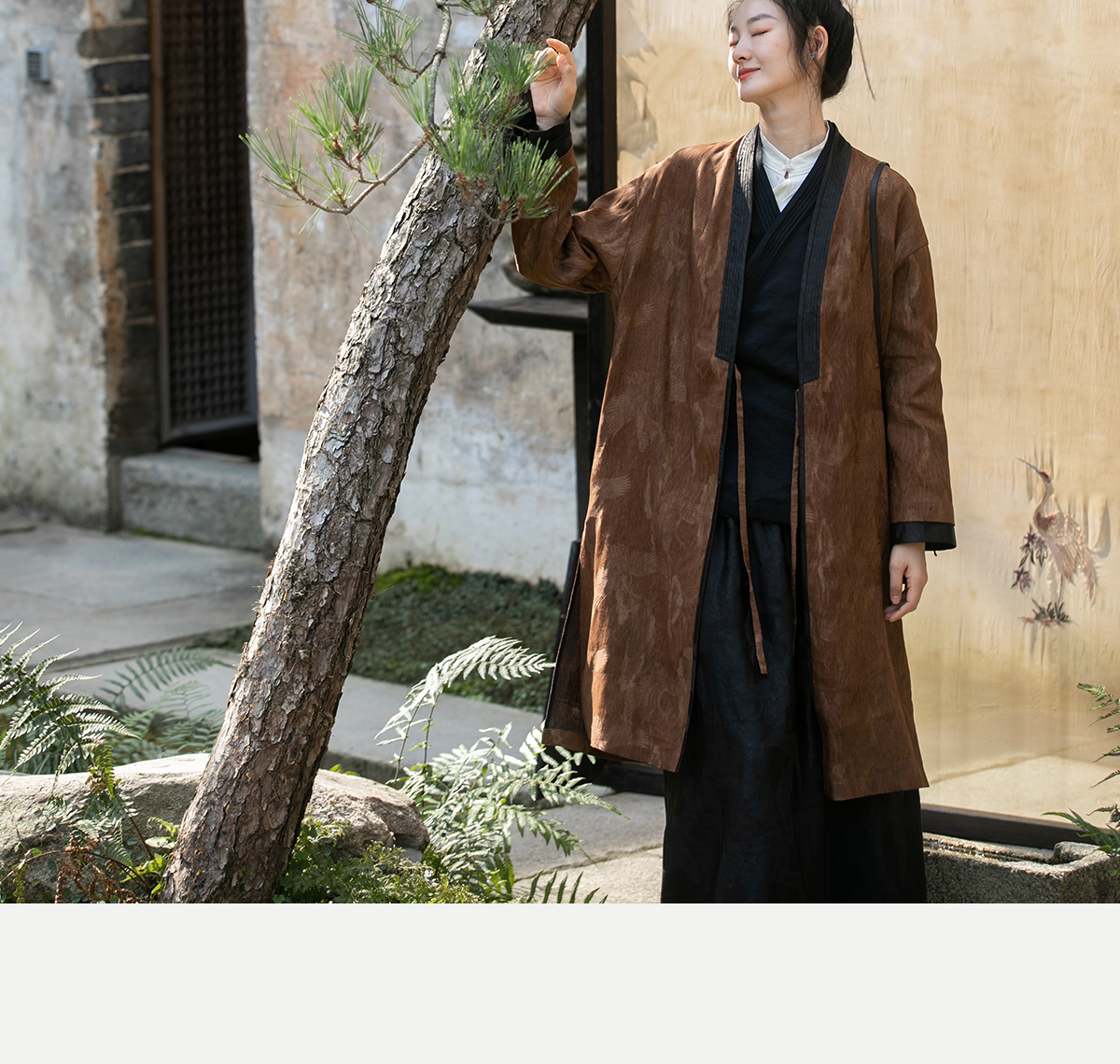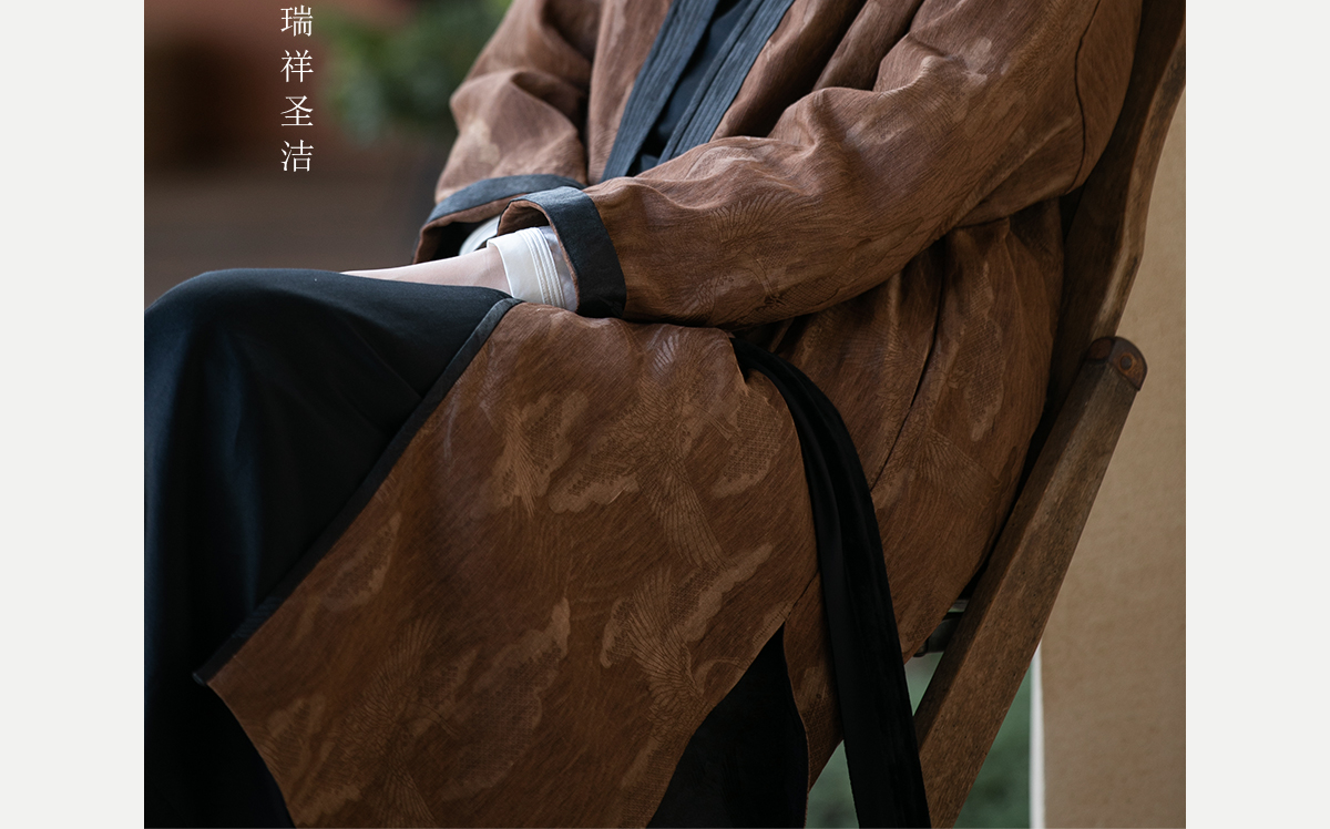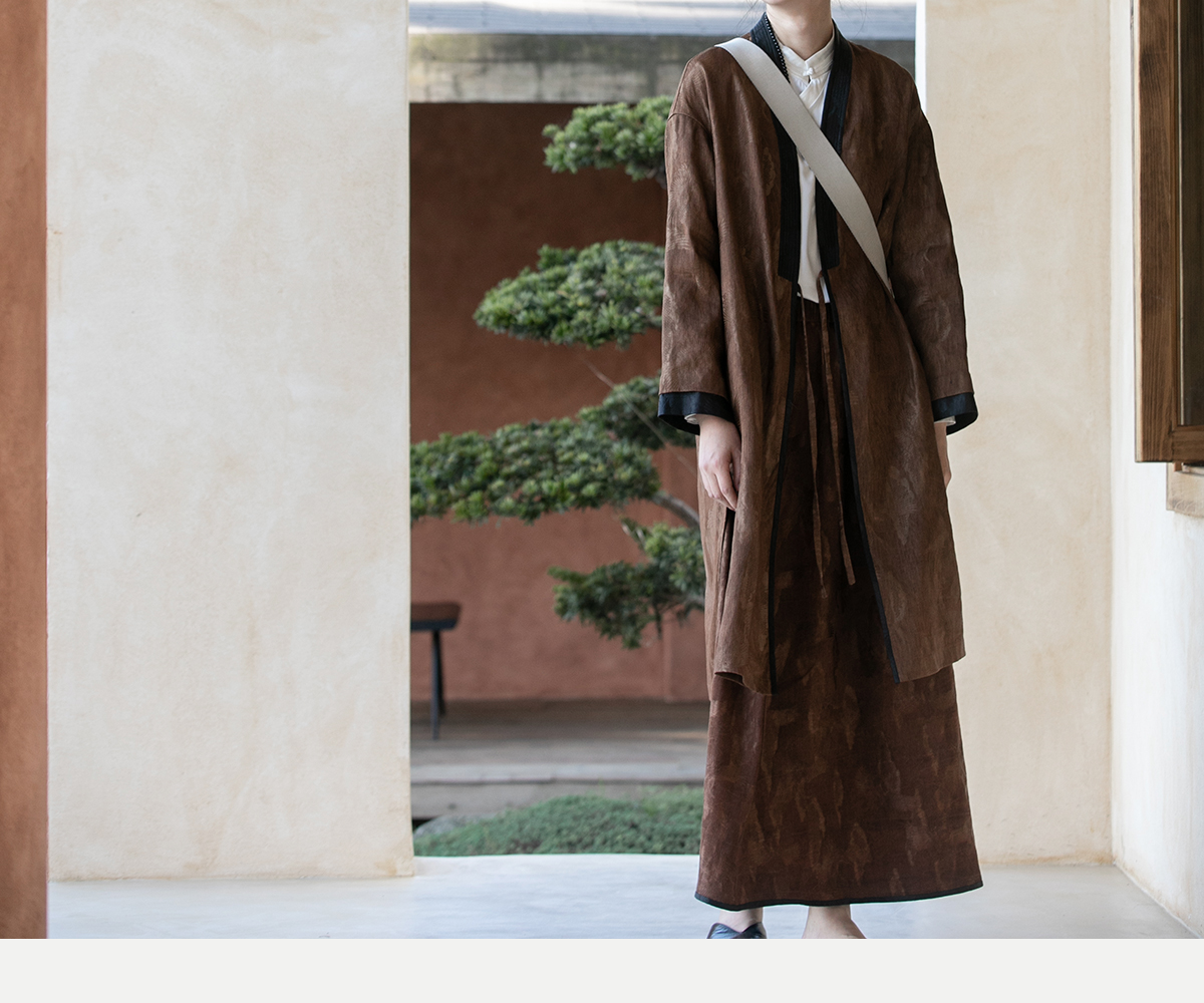 牧衣游原创 重磅鹤提花香云纱长外套新款禅意复古宽松开衫 满鹤楼