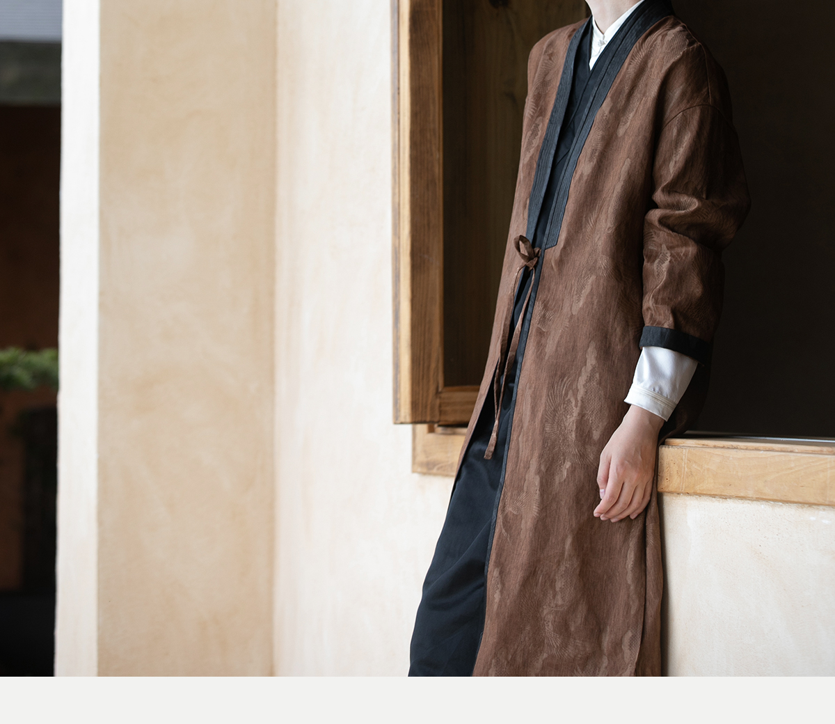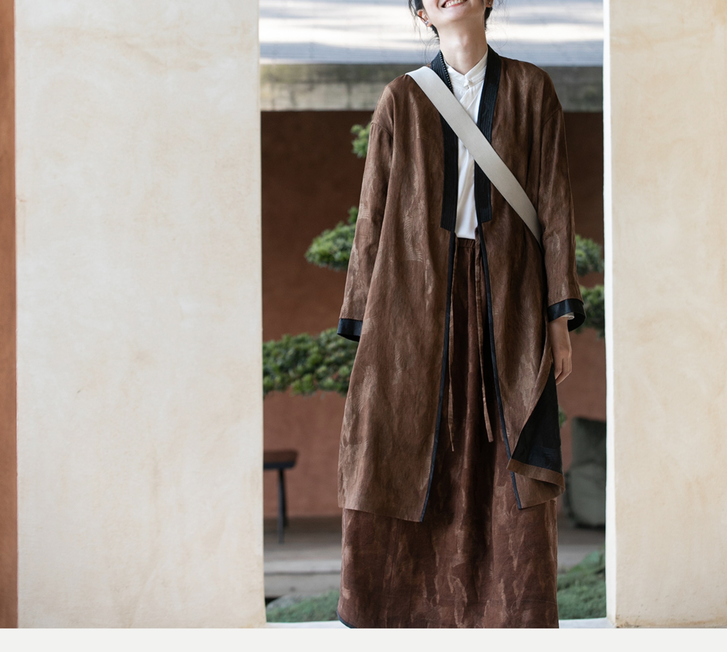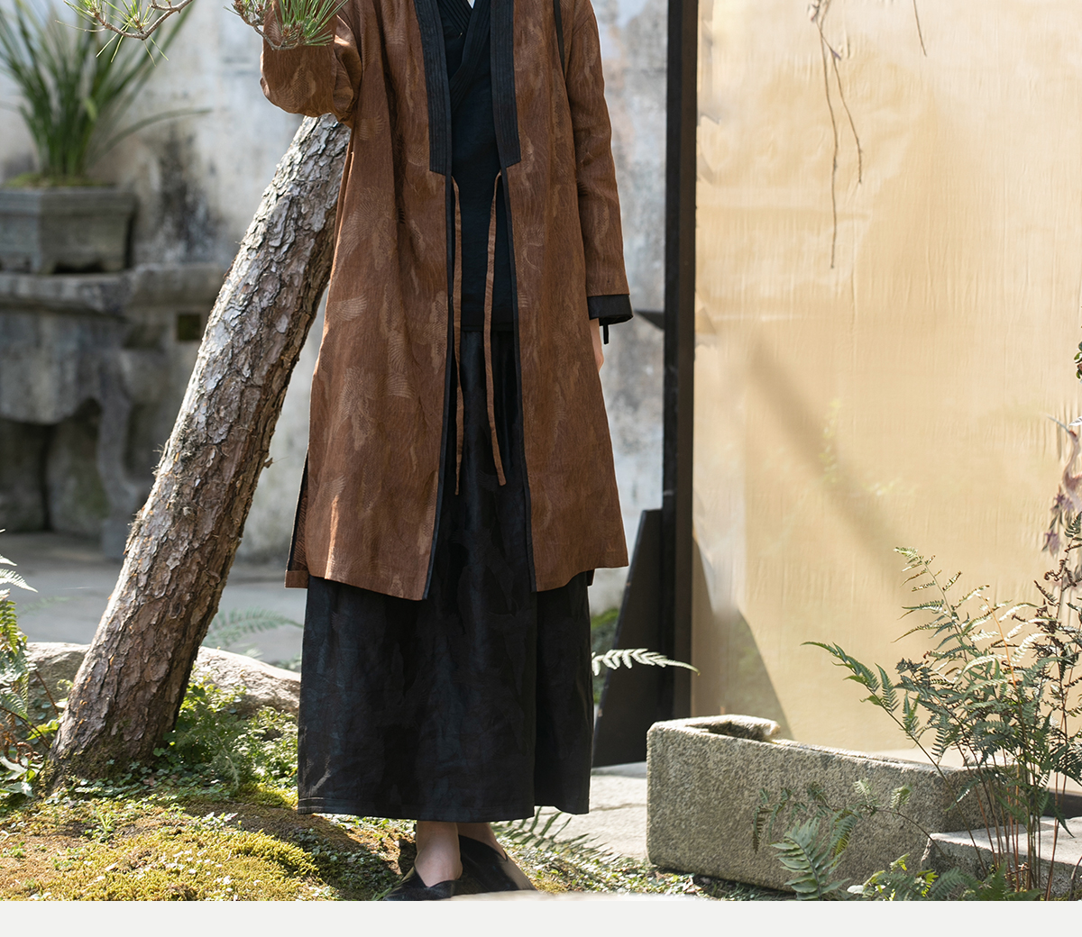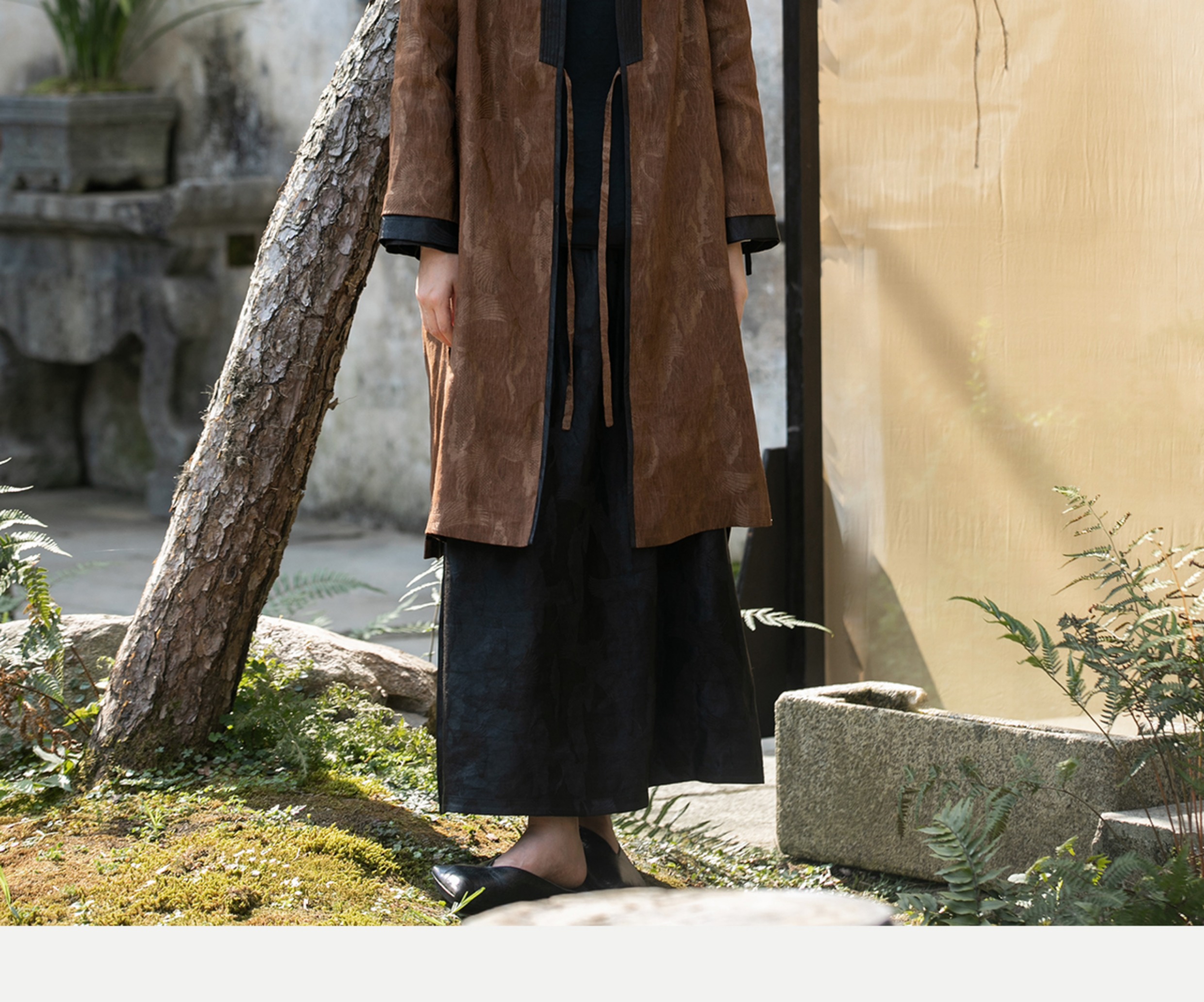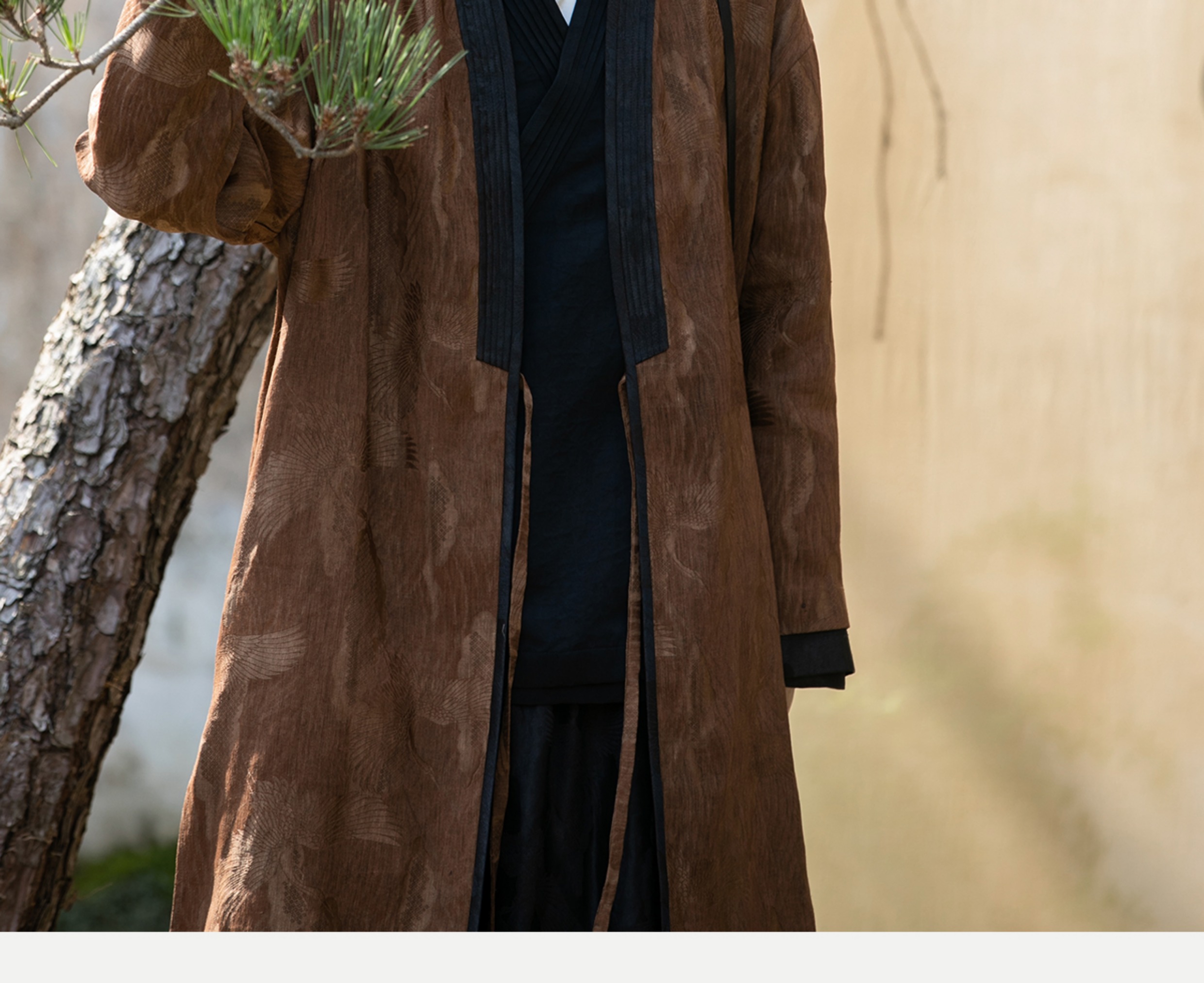 牧衣游原创 重磅鹤提花香云纱长外套新款禅意复古宽松开衫 满鹤楼