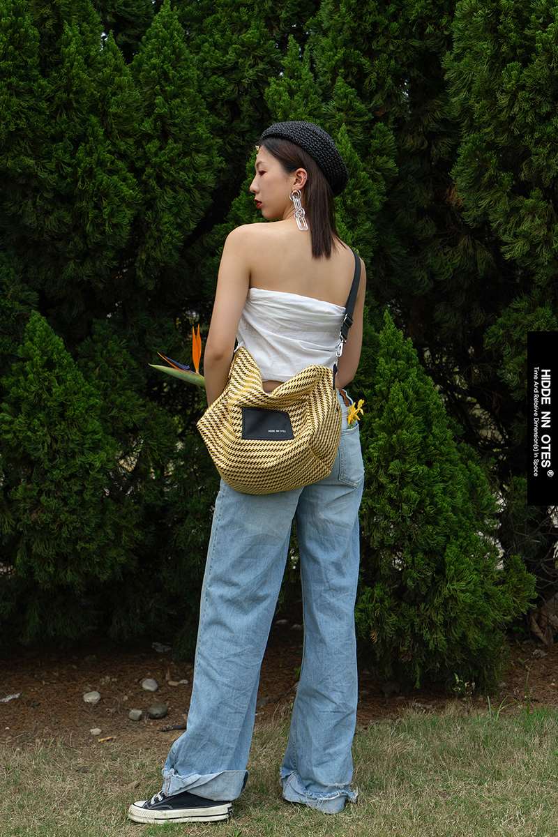 〖HIDDENNOTES〗原创斜挎单肩包 学生小众不撞款ins黄色编织大包