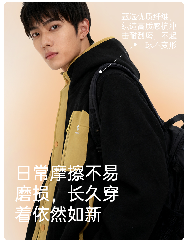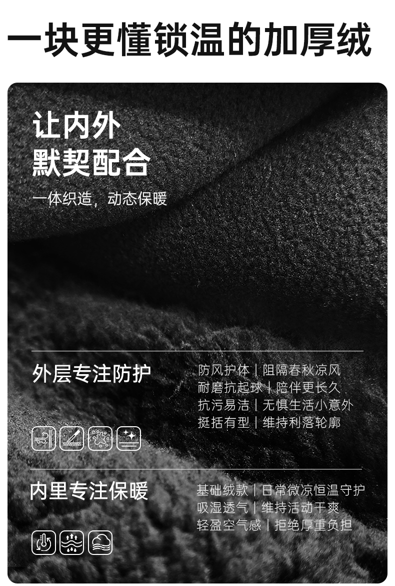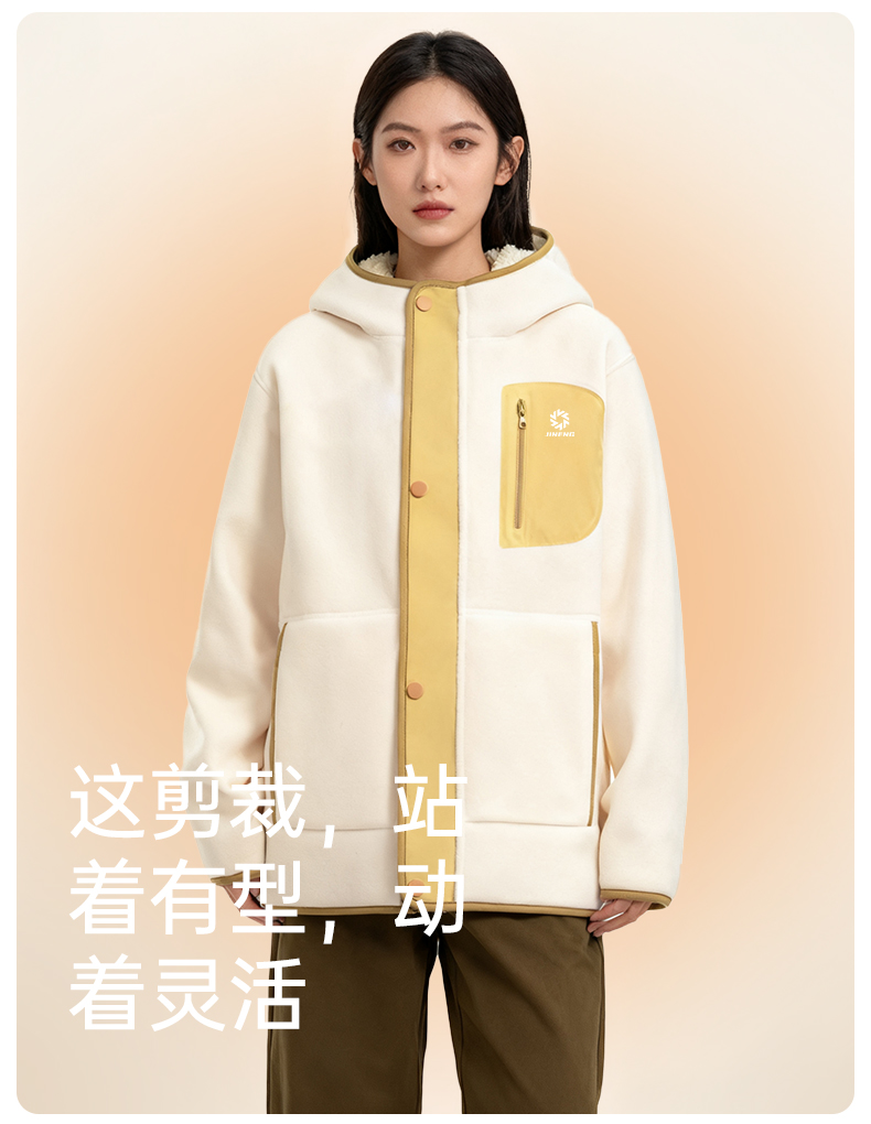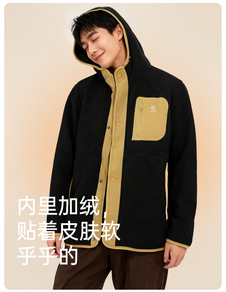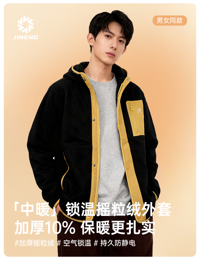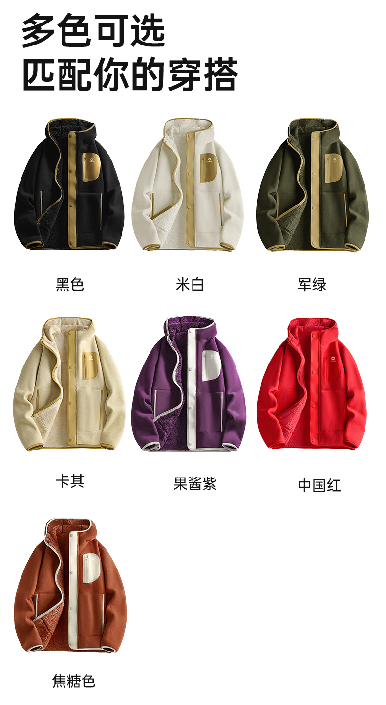 积能 双面绒男女同款秋冬加绒厚款保暖舒适抓绒连帽外套
