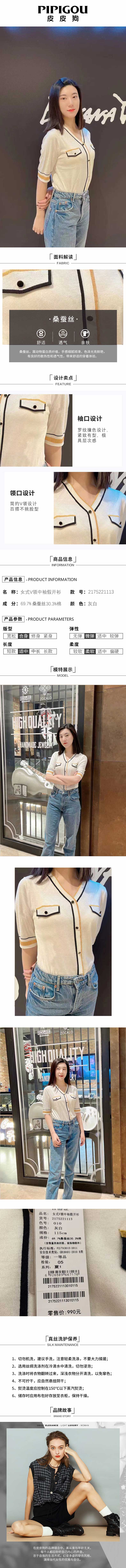皮皮狗女式V领中袖假开衫2175221113