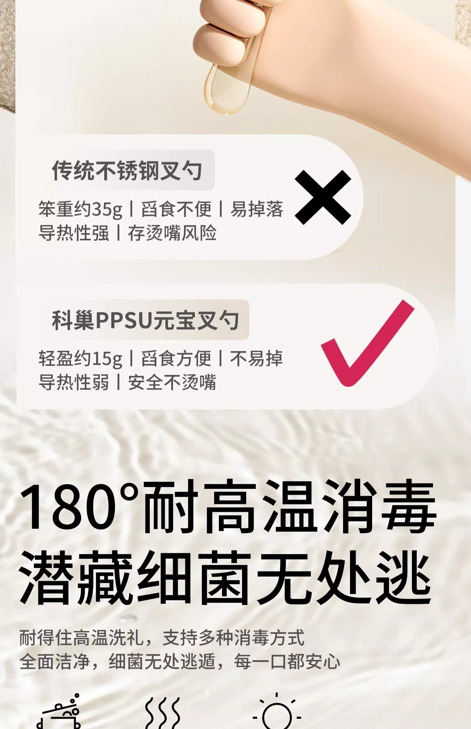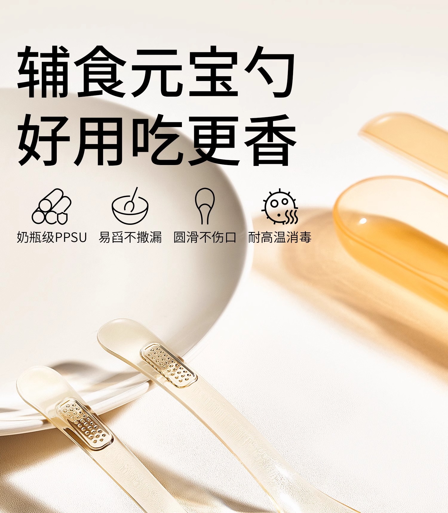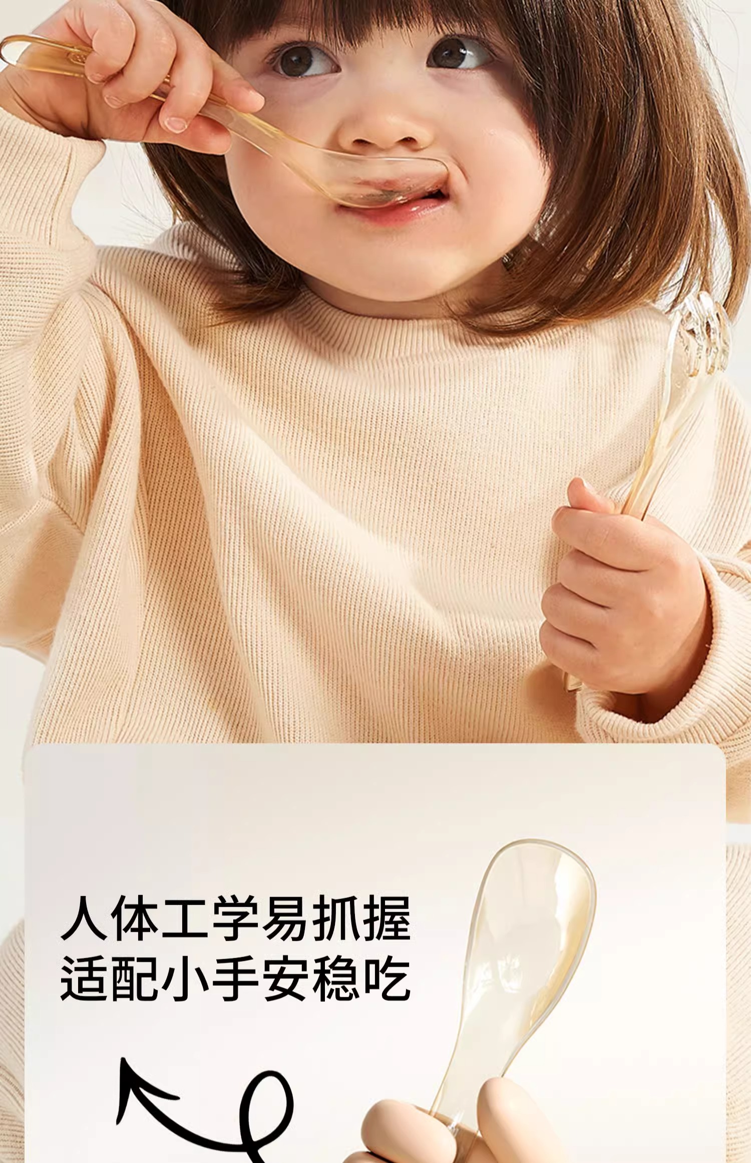 科巢ppsu元宝辅食勺叉自主进食吃饭训练儿童餐具宝宝吃饭专用调羹