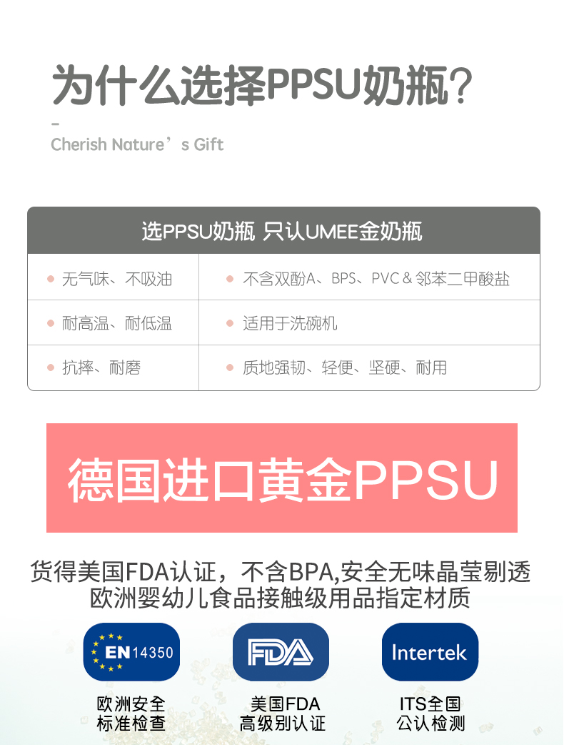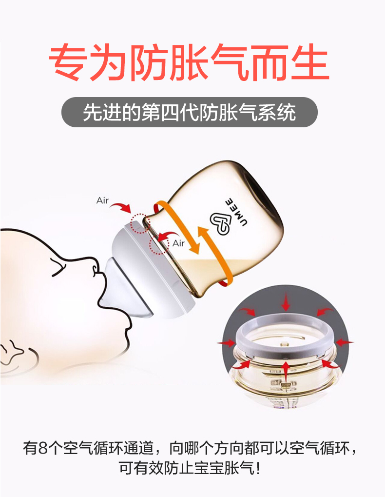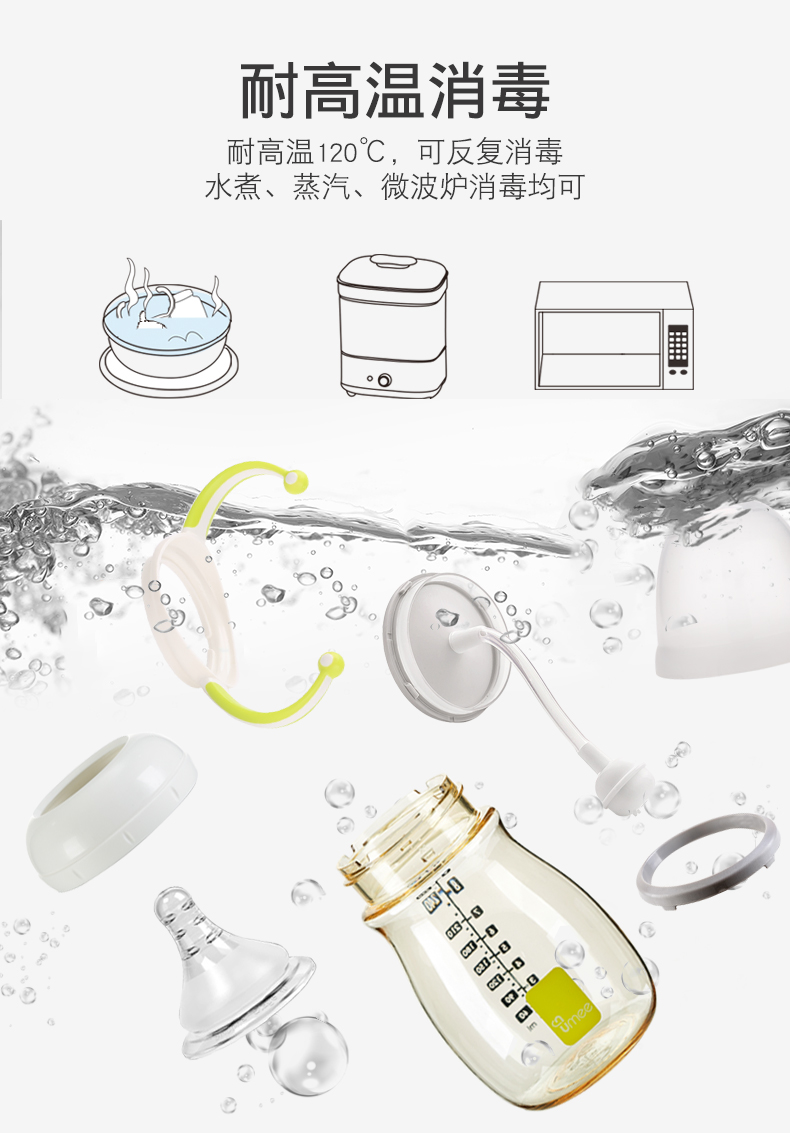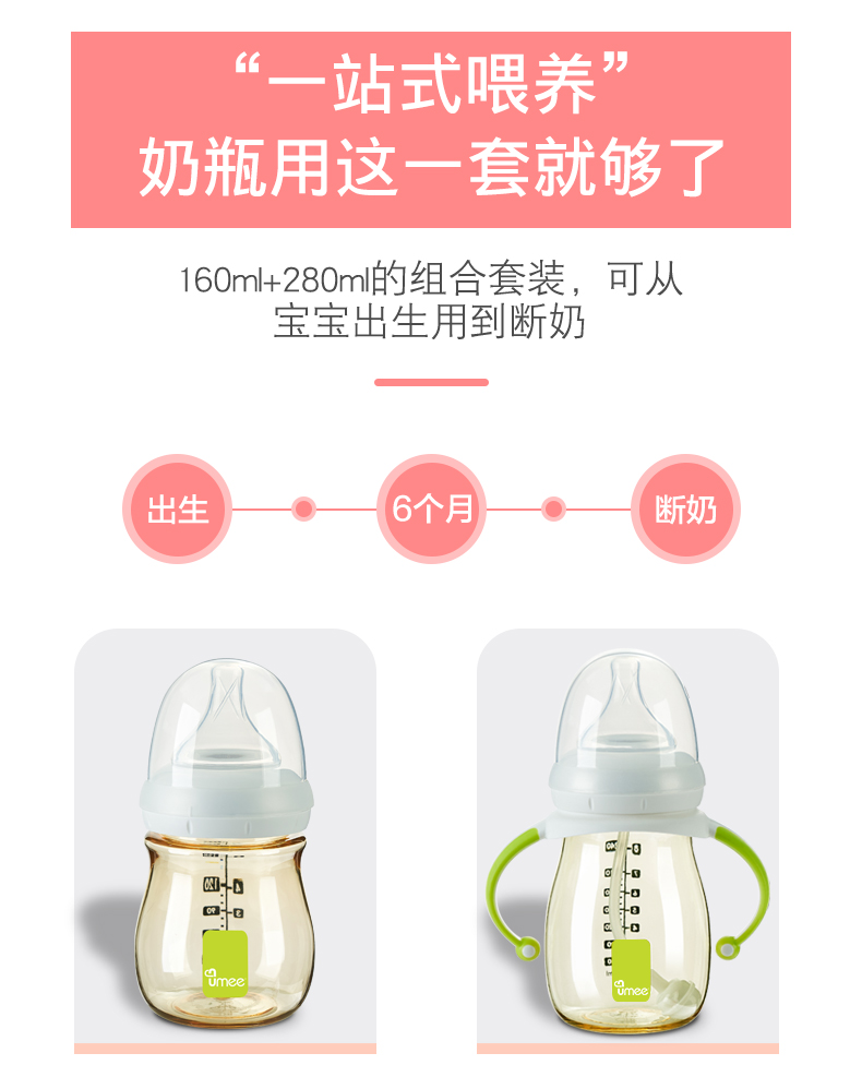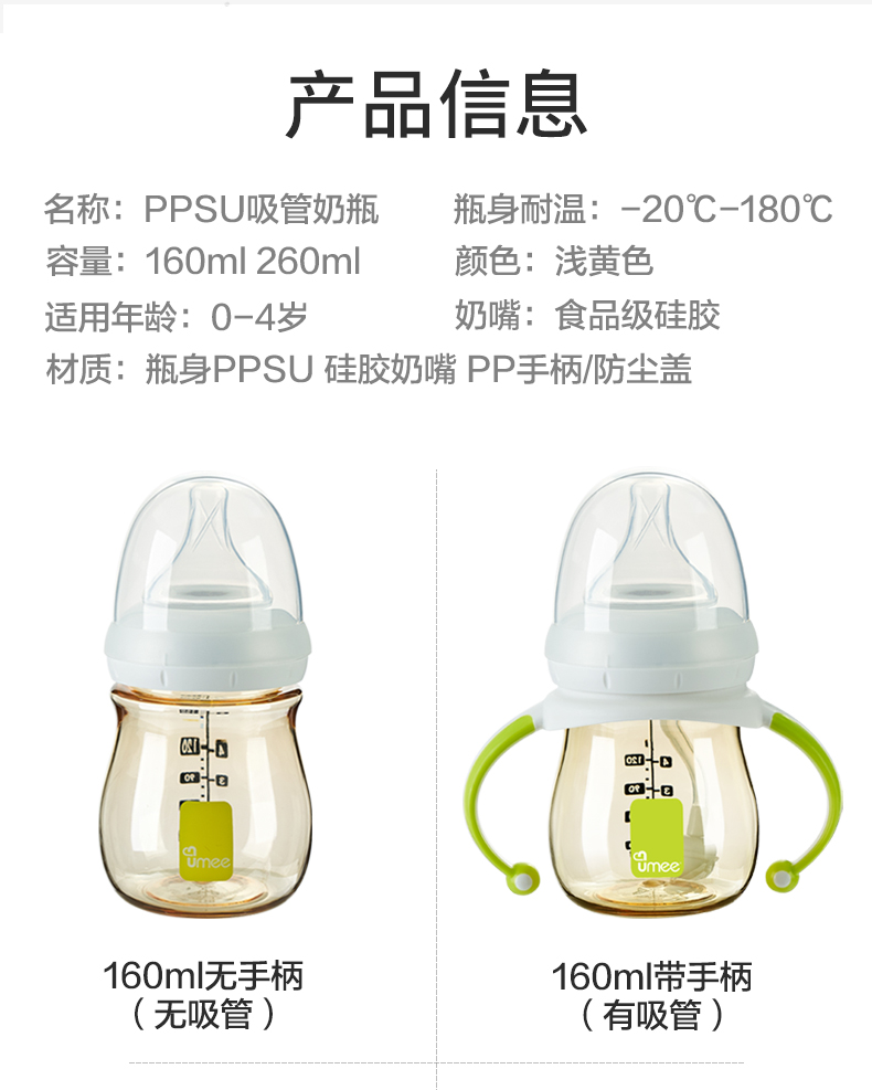 【荷兰UMEE】PPUS奶瓶 宽口径高温防胀气带手柄 160ml/260ml